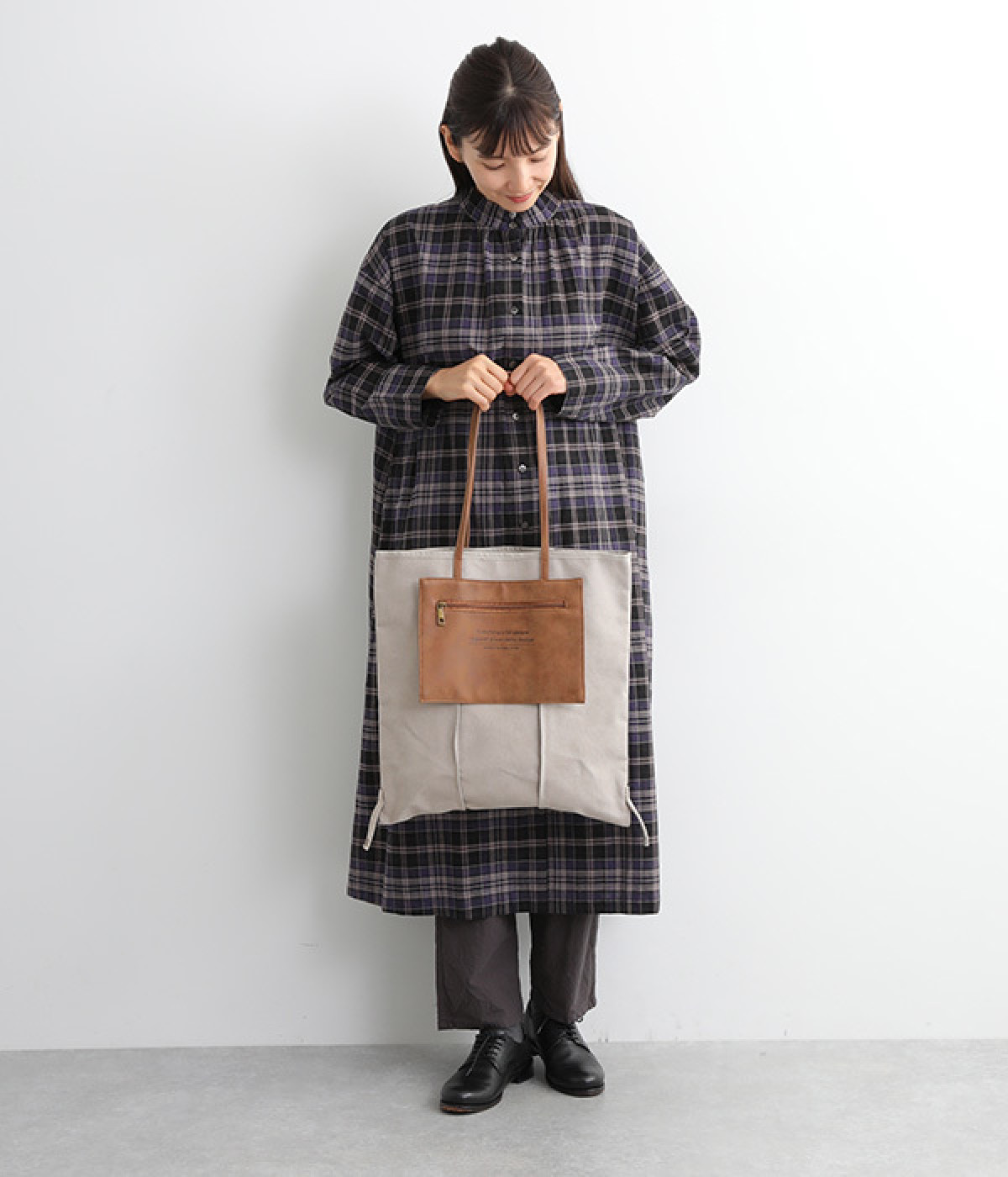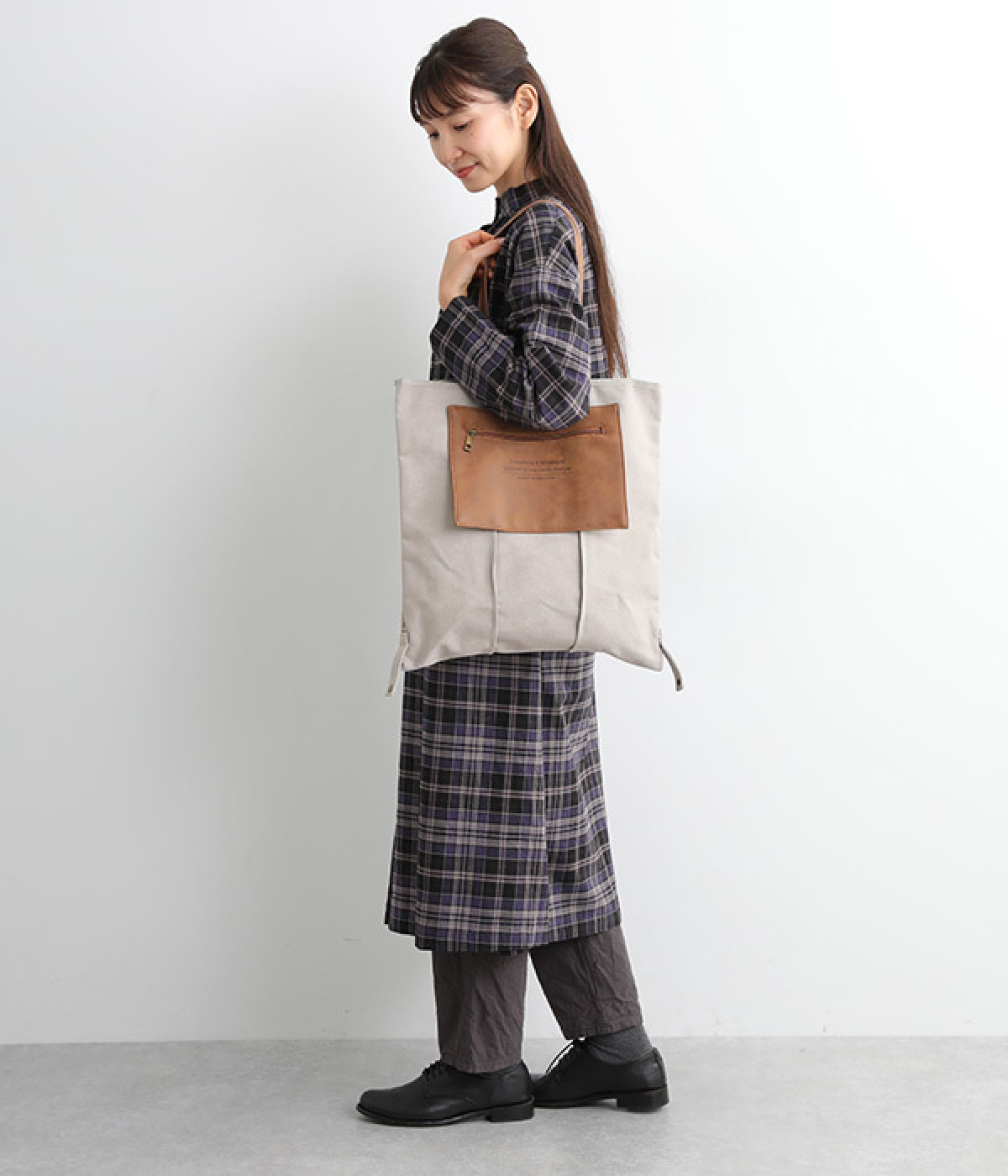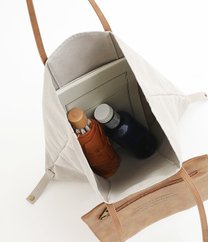 A4サイズのファイルなども収納できるフラットなトート型
