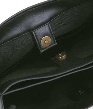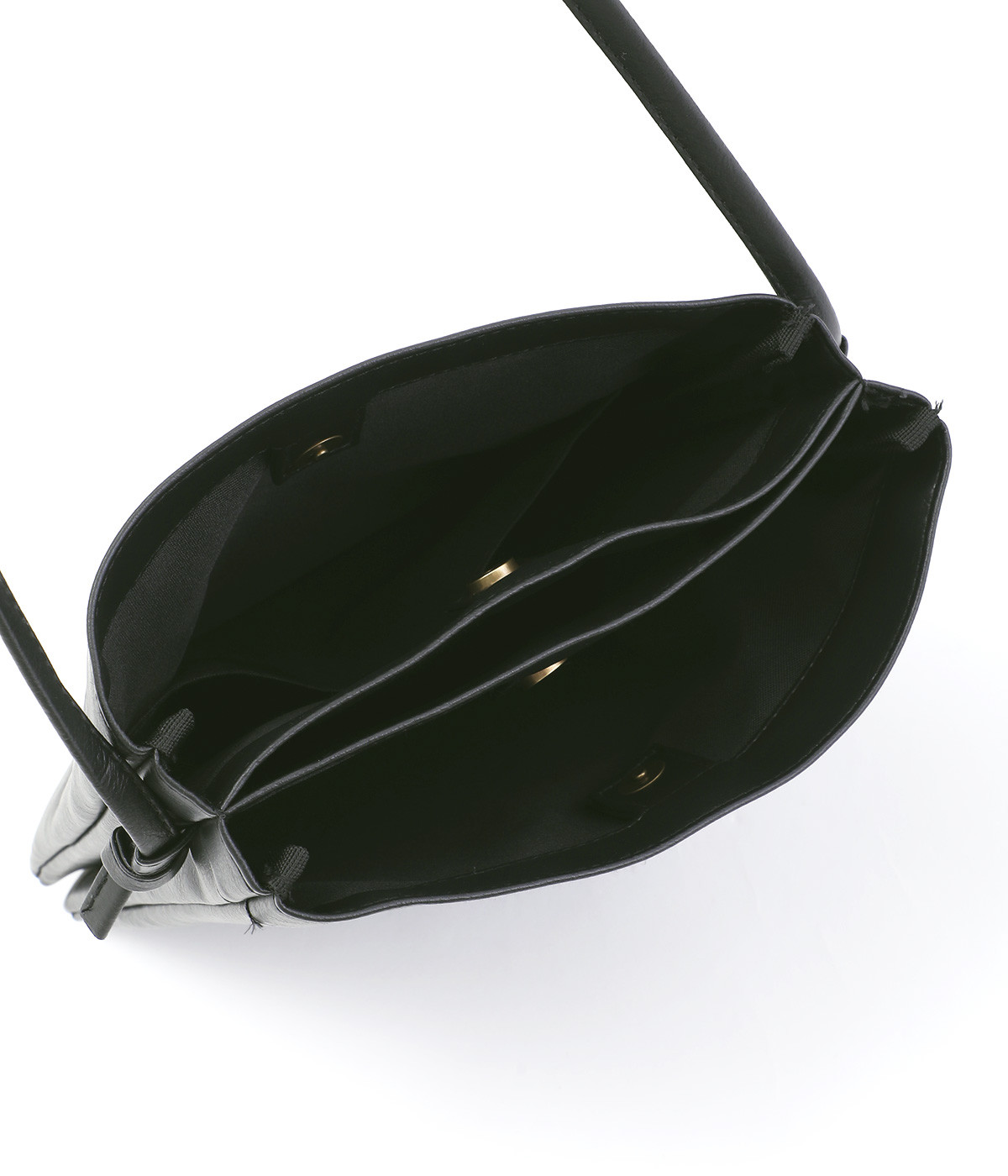 嵩張りにくいフラットタイプのスクエア型ショルダーバッグ。無駄の少ない洗練されたデザインが大人の装いにマッチします。内側は3つに仕切られ、小物をすっきり収納。身軽にお出かけできる頼れるアイテムです。