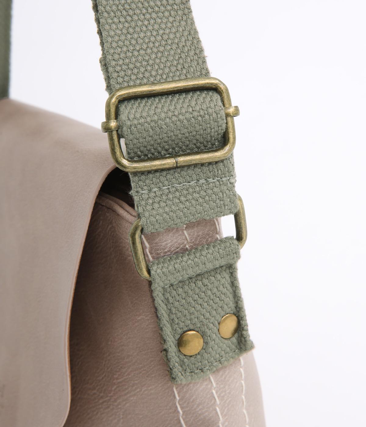 本革さながらの風合いやシボ感、きれいめカラーが魅力的な合成皮革を使用しています。合皮なのでケアしやすく、気負わずデイリー使いしやすいのもグッドポイント。