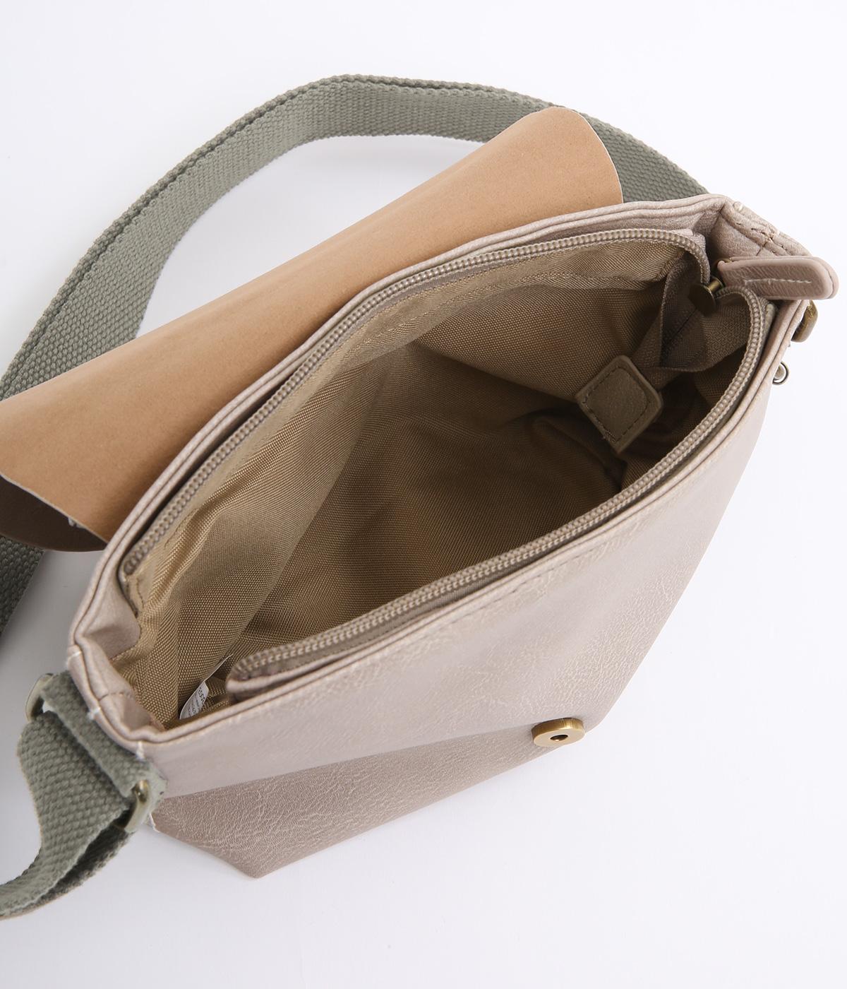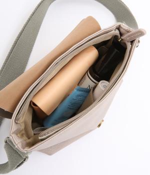 デイリー使いしやすいコンパクトサイズのショルダーバッグです。マチつきで収納力もたかく、ちょっとしたお出掛けの必需品もすっぽり収まります。ミニマル派やサブバッグにもぴったり。ショルダーベルトは太めをセレクトして肩への負担も軽減。