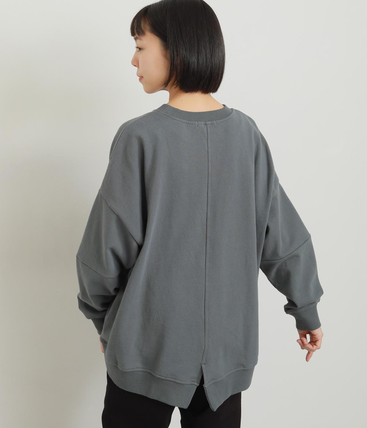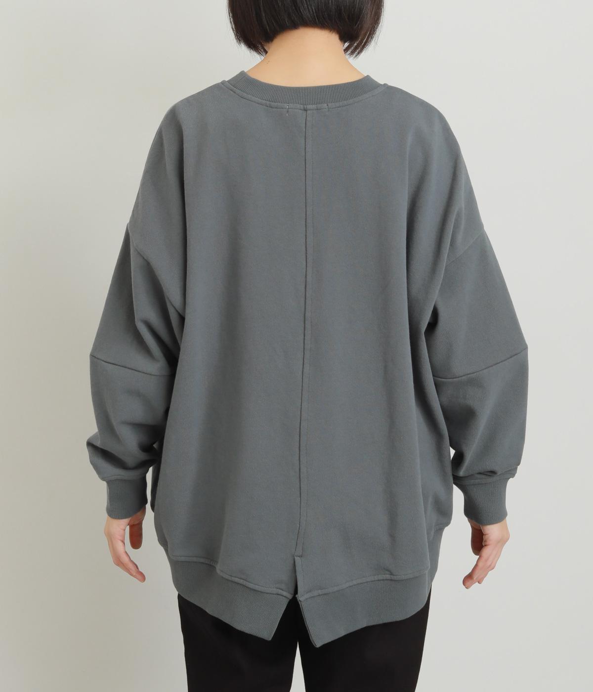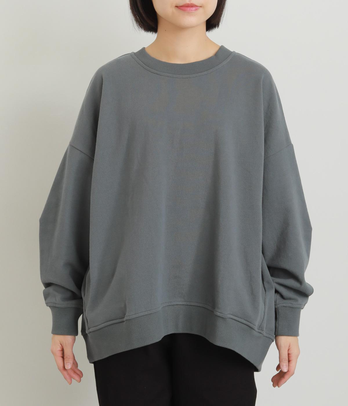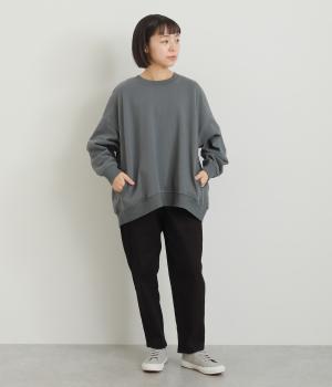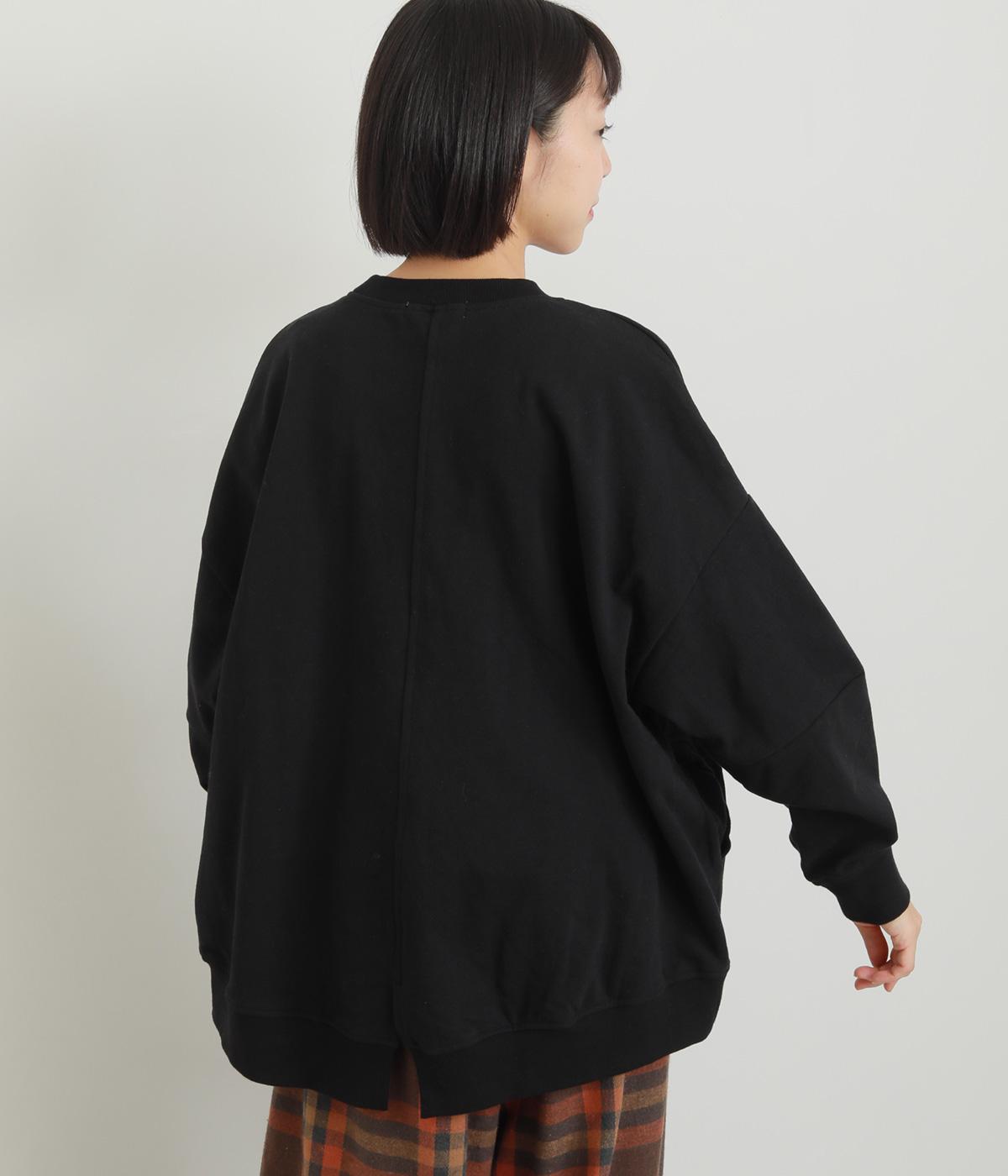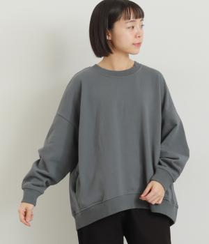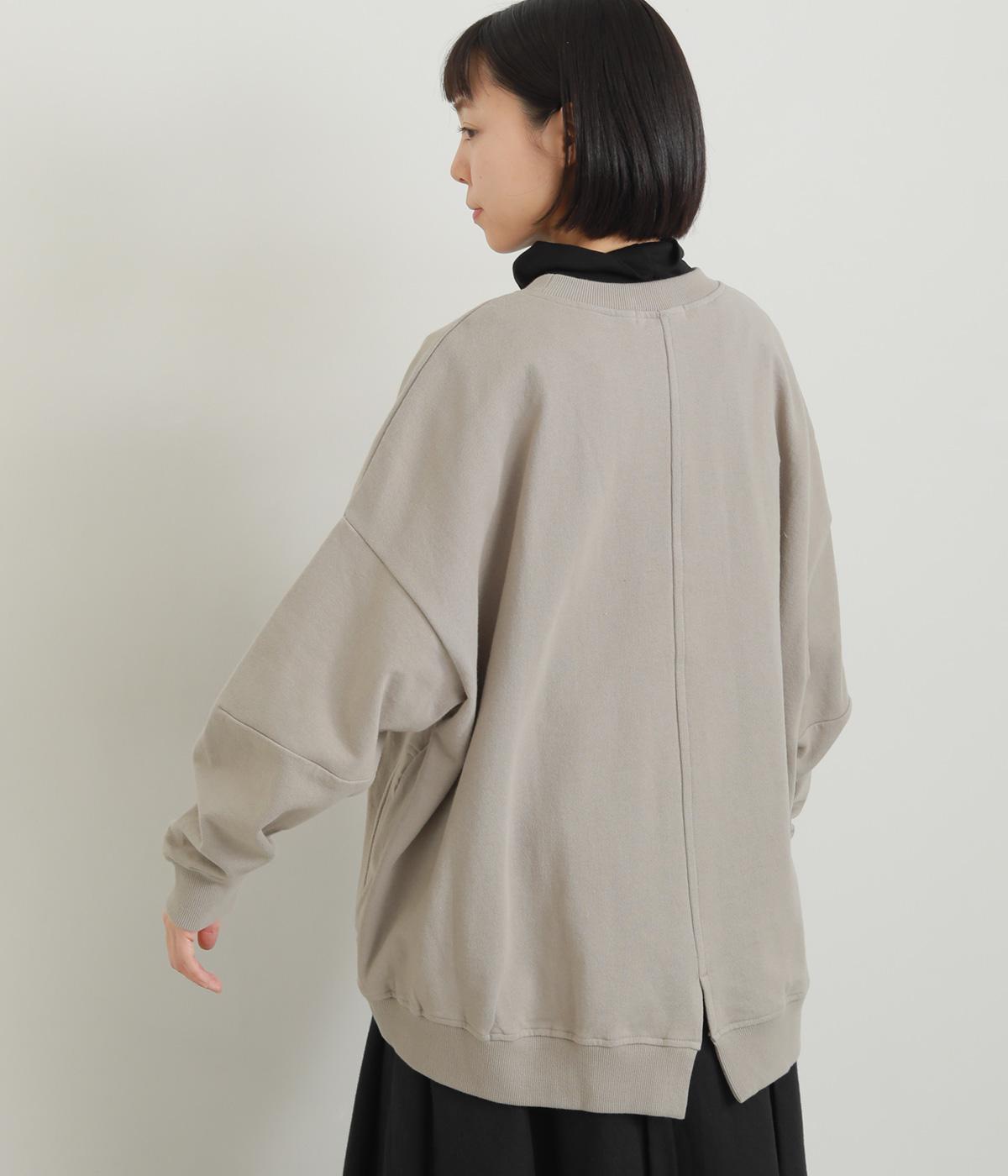 くり抜きタイプのサイドポケットが特徴的で可愛らしさのあるプルオーバー。ドロップショルダーにゆとりのある身幅で着心地はリラクシー。やや長めの後ろ裾はカットを入れてちょうどいい抜け感を持たせました。