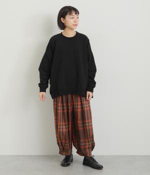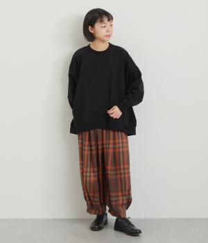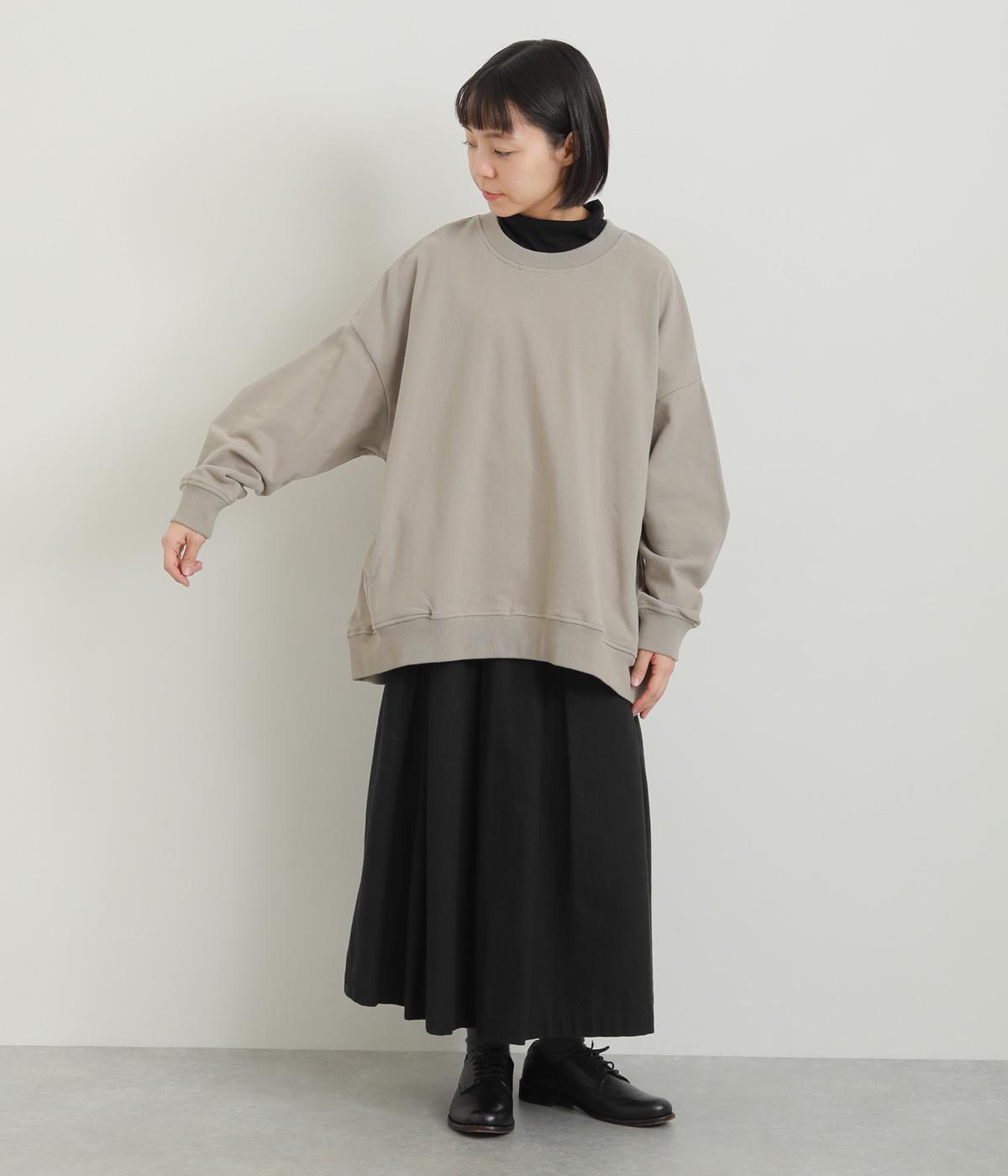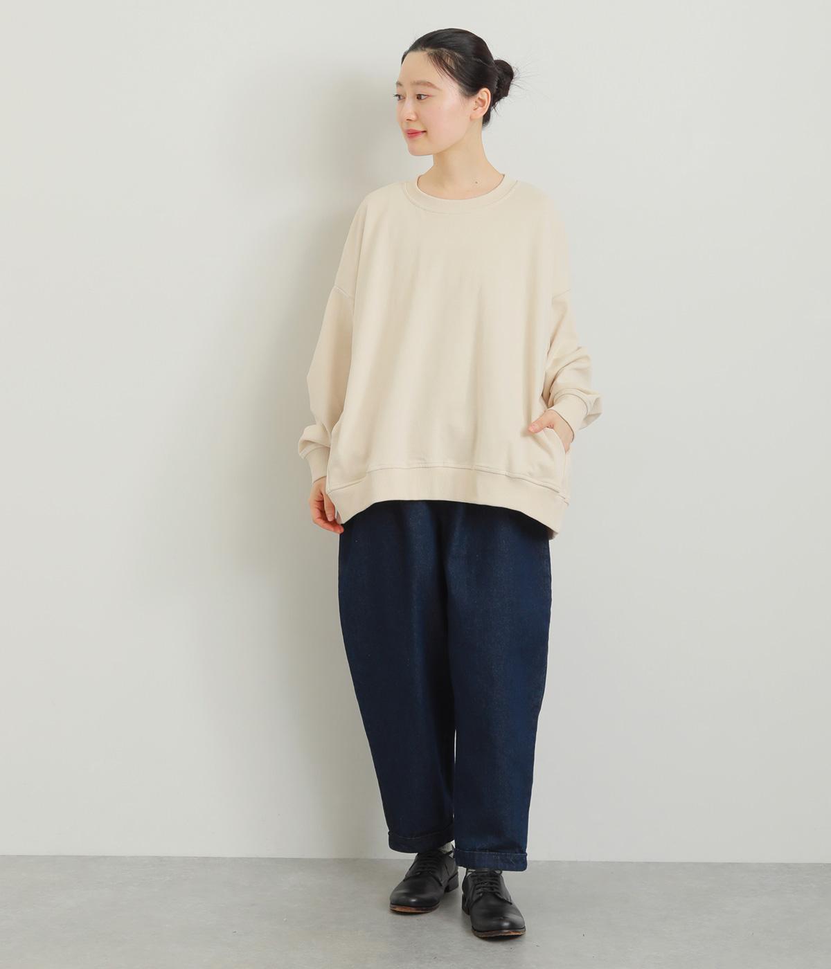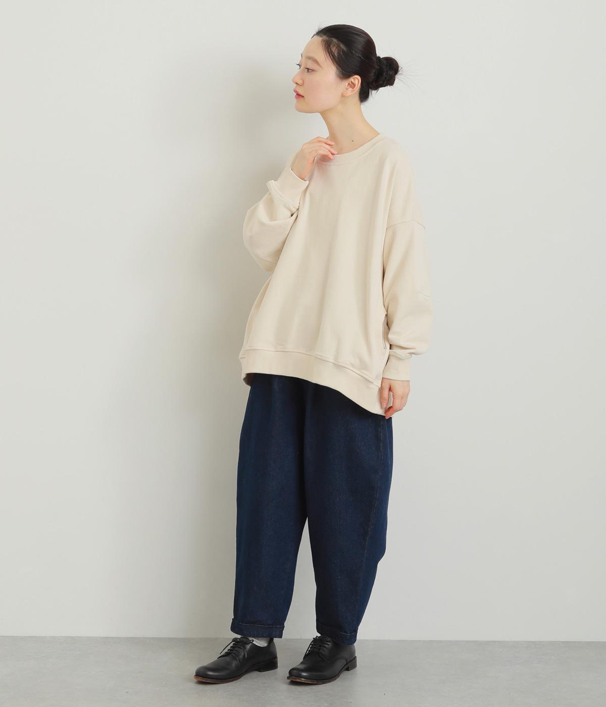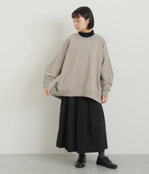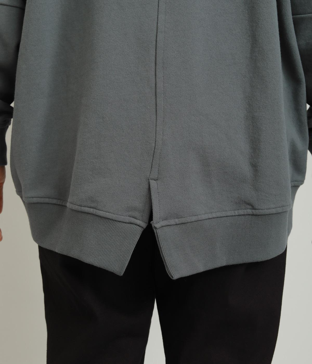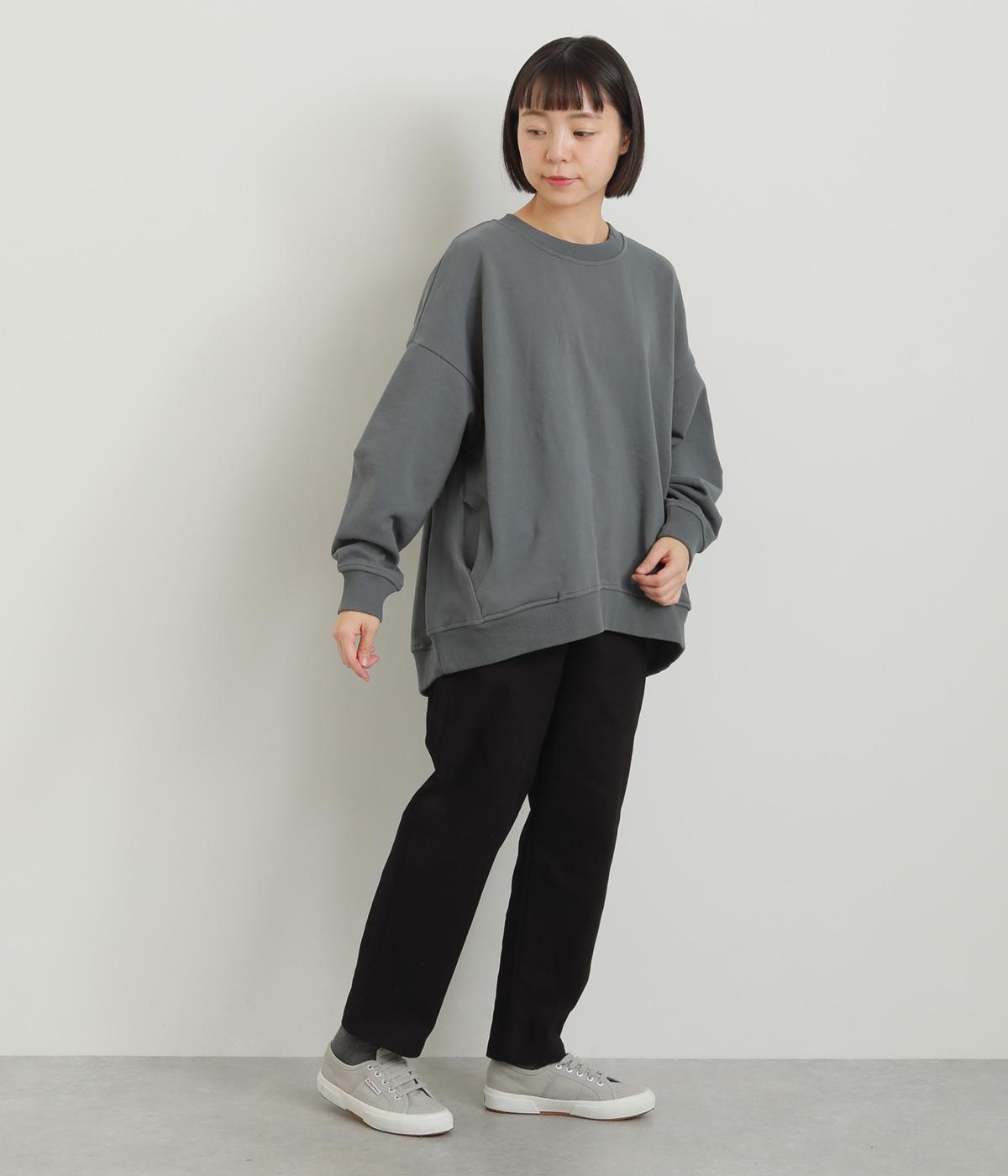 くり抜きタイプのサイドポケットが特徴的で可愛らしさのあるプルオーバー。ドロップショルダーにゆとりのある身幅で着心地はリラクシー。やや長めの後ろ裾はカットを入れてちょうどいい抜け感を持たせました。