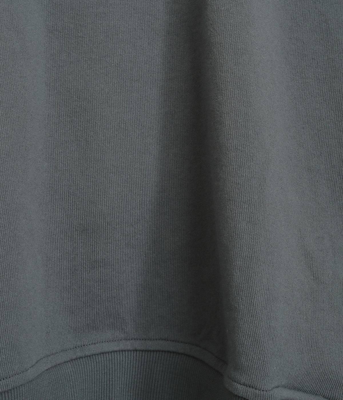 しっかりとした度詰め仕立てながらも、着込んだようにくったりとしたユーズド感が魅力のコットン生地。ミニ裏毛で肌あたりもよく、着用感も抜群です。
