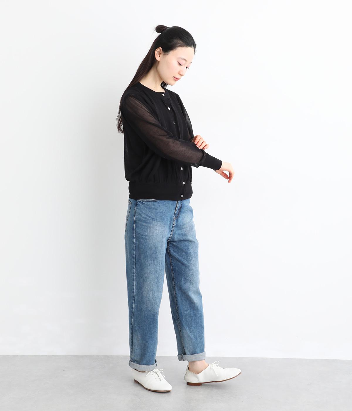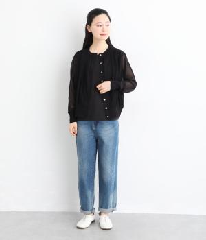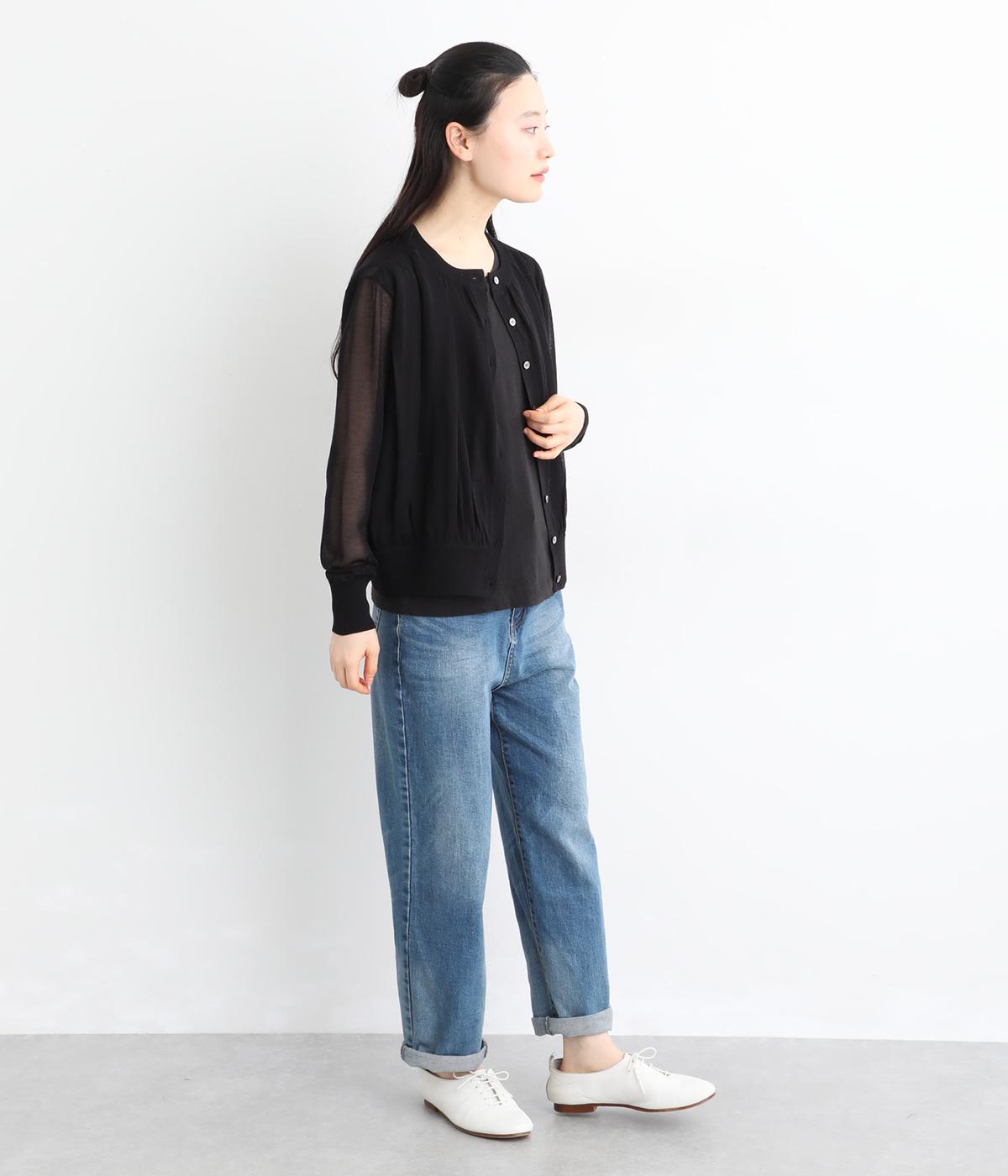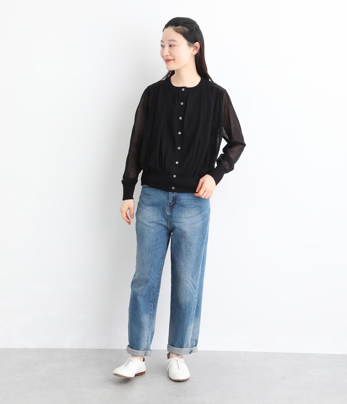 軽やかな透け感が、レイヤードスタイルに奥行きを添えるカーディガンです。切り替え部分と裾にギャザーをあしらい、自然な丸みのあるシルエットに仕上げました。ほどよい丈感で着こなしのバランスが取りやすく、さまざまなコーディネートに活躍する一着です。