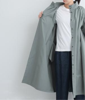 すっきりと立ち上がったスタンドカラーにギャザーをたっぷり寄せた袖がクラシカルな雰囲気を醸します。ロング丈で落ち着いた印象ながら軽めの生地なのでデイリー使いにも最適。後ろは長めのベント入りで足さばきもスムーズです。