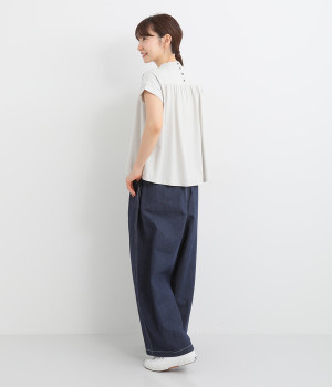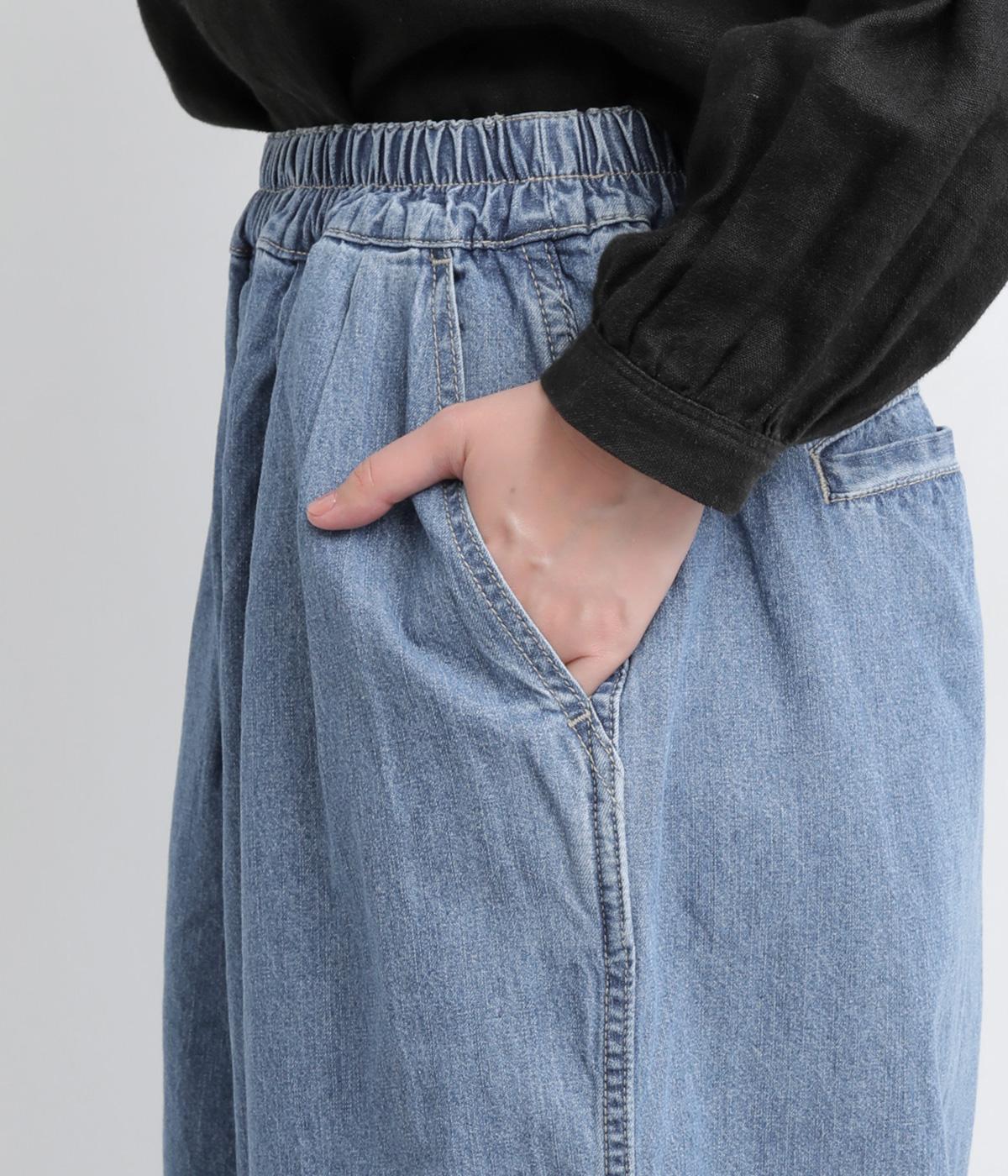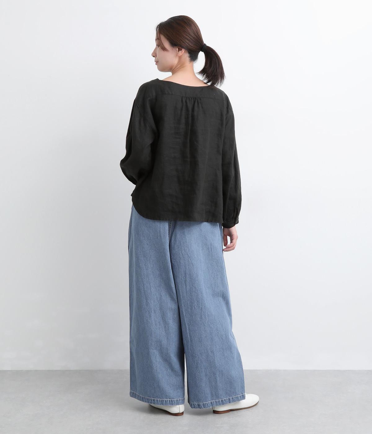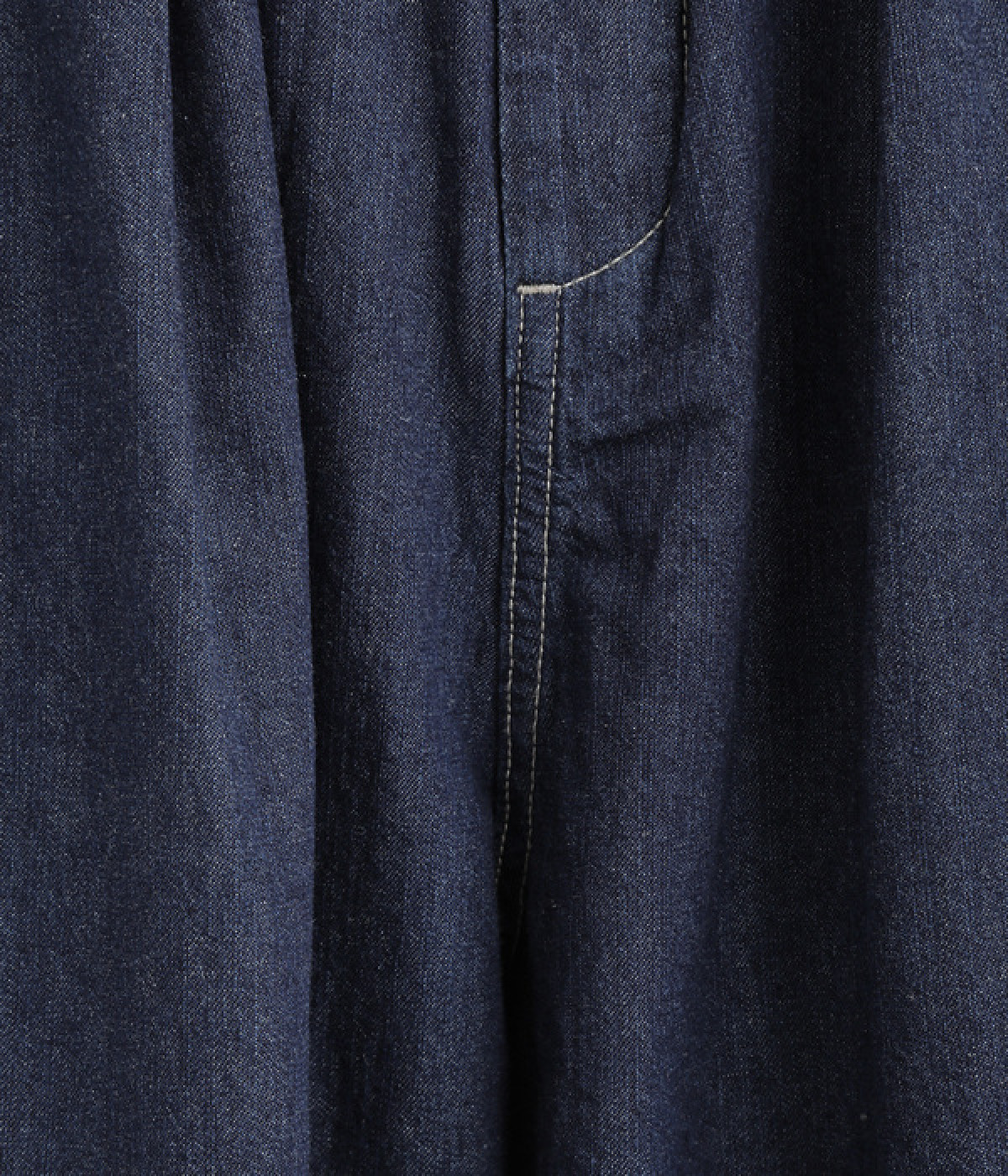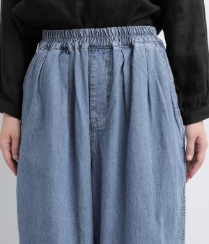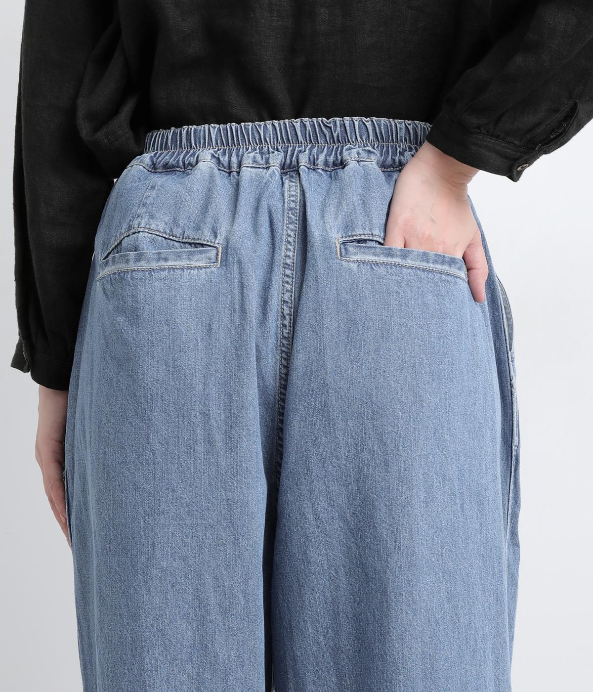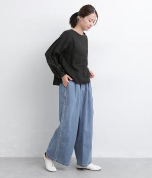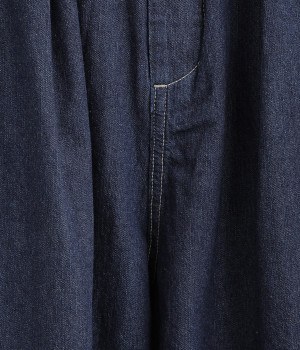 ナチュラルな風合いが心地よいコットンリネンデニムを使用。タフなコシ感を残しながらも着用初期からはきやすく、使い勝手のいい薄めの中厚手生地でロングシーズン活躍します。