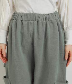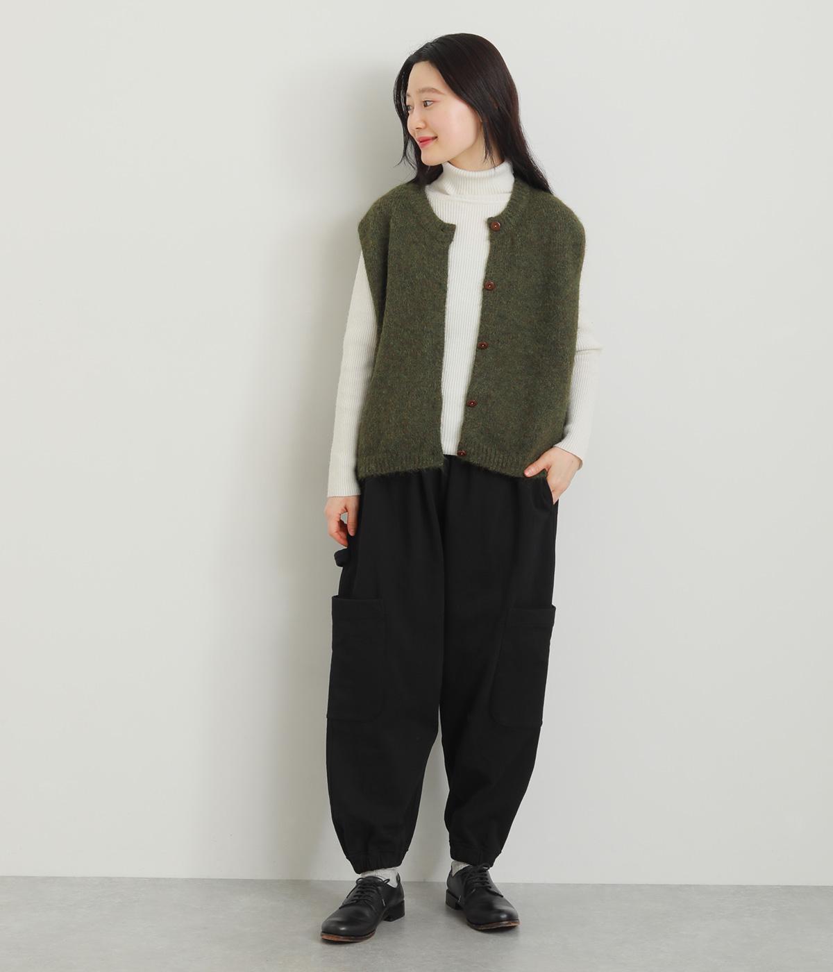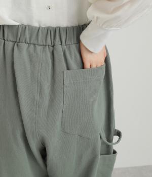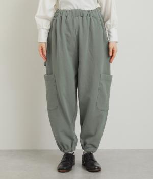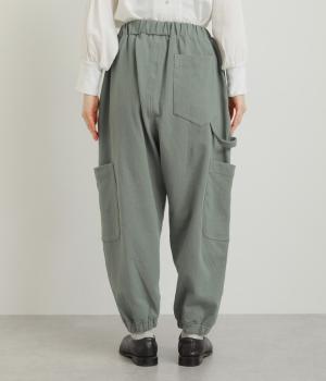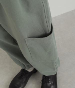 ゆったりとしたシルエットに裾ゴム、下げたサイドポケットが独特のこなれムードを生むペインターパンツ。すっきりとした丈感がルーズすぎずすっきり決まるポイント。ウエストは安定感のある総平ゴムに内紐入りです。