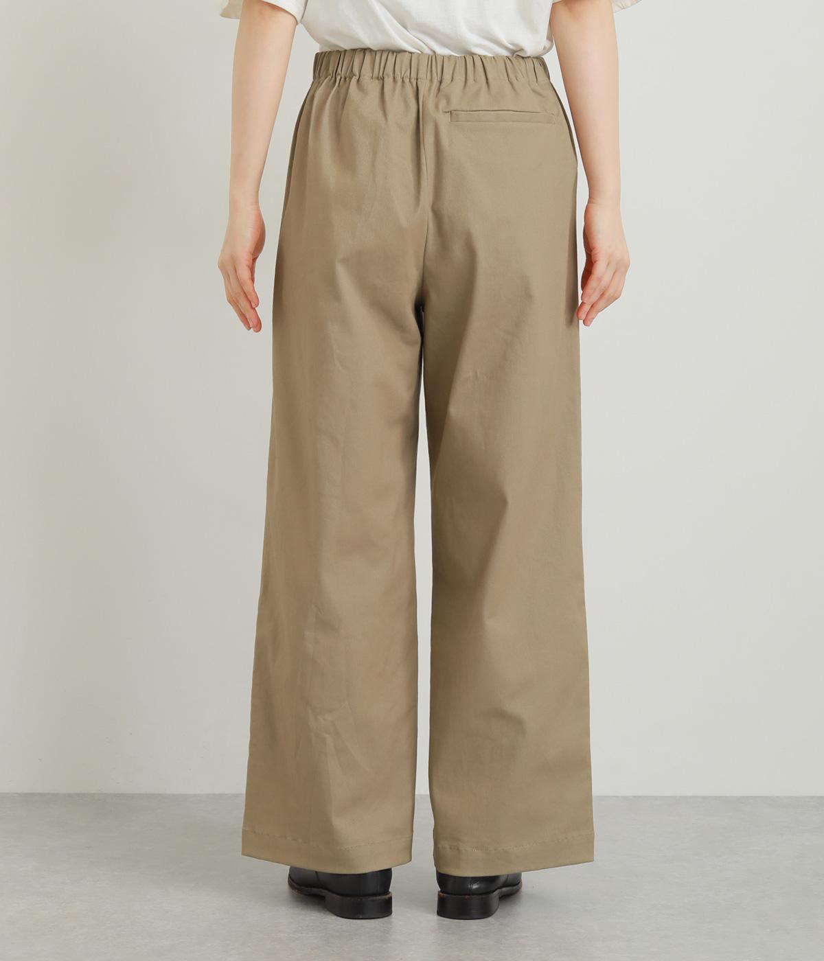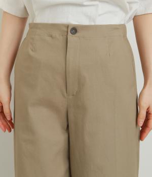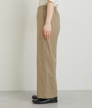 決めすぎず、ルーズすぎず、こなれ感ときちんと見えを両立させたワイドストレートパンツ。生地感も軽くはきやすいので、季節問わずデイリーに活躍します。前ファスナーで脱ぎはきしやすく、後ろウエストゴムでフィット感も◎。