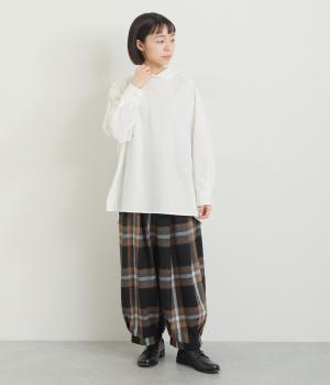 ソフトタッチながらも適度にハリがあり、自然なシワ感のあるコットンタイプライターを使用。さらりとしていて肌離れも良く、ロングシーズン快適に着用できます。