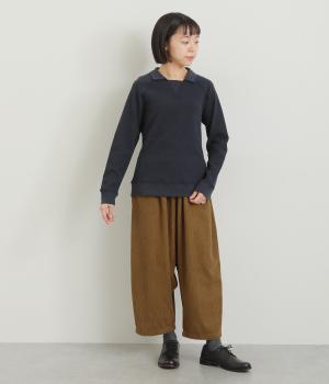 メインにもサブにもなるシンプルなニットプルオーバー。スキッパーカラーとVガゼットを組み合わせて、顔まわりのデザインに特徴を持たせました。きちんと見えと抜け感のバランスが良く、さり気なくお洒落上手な着こなしに。