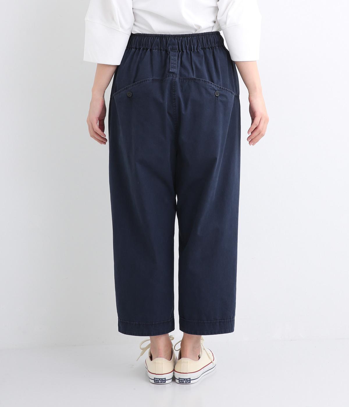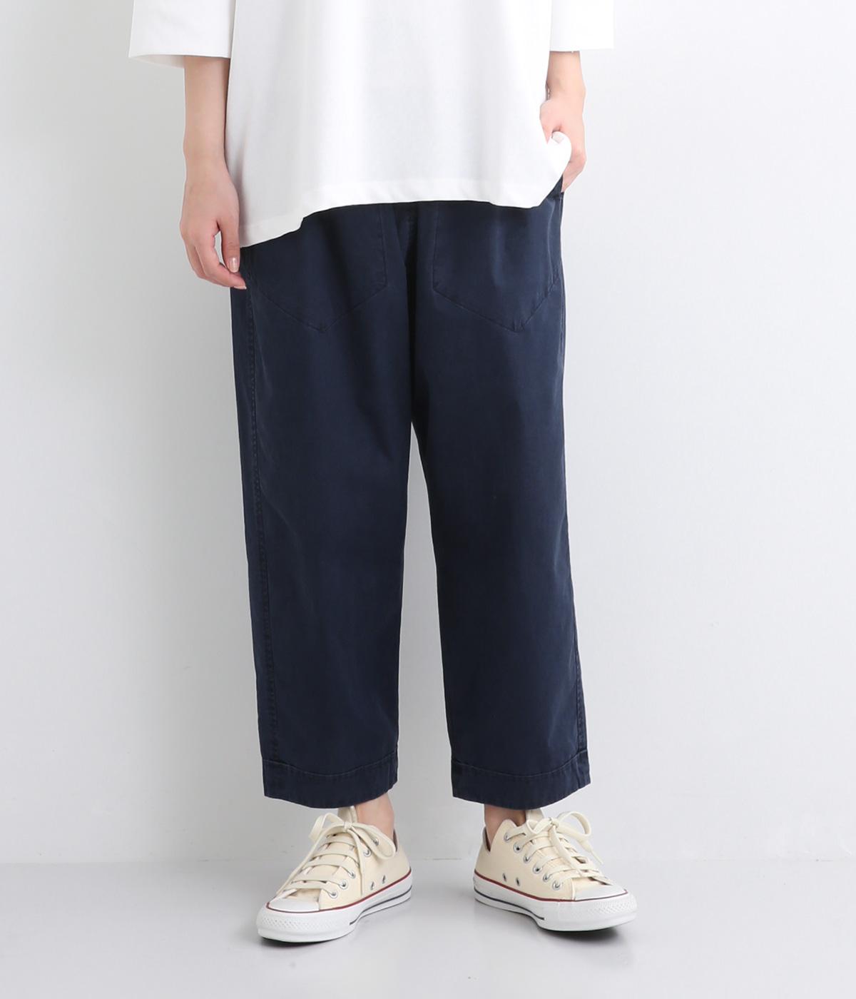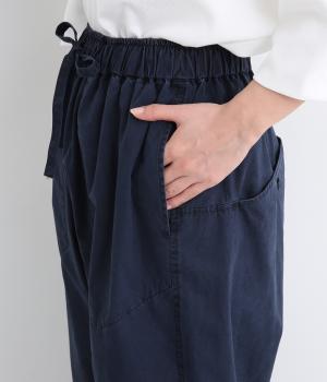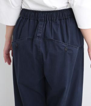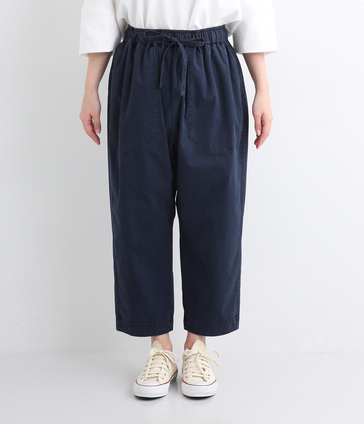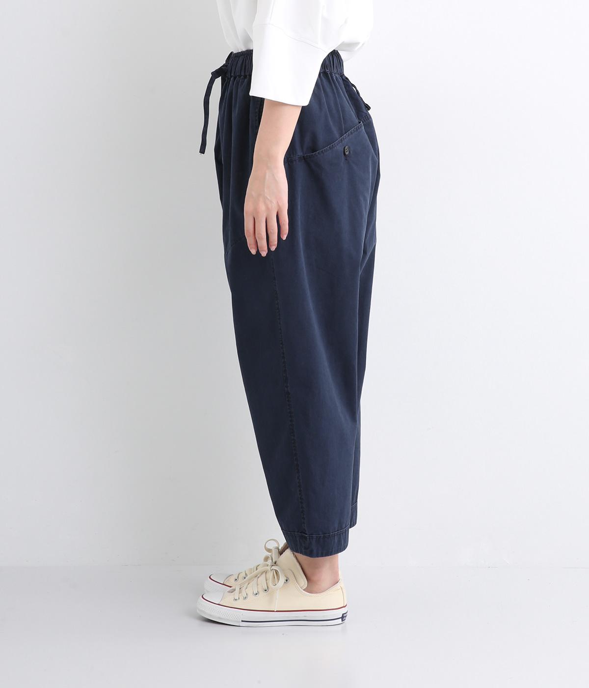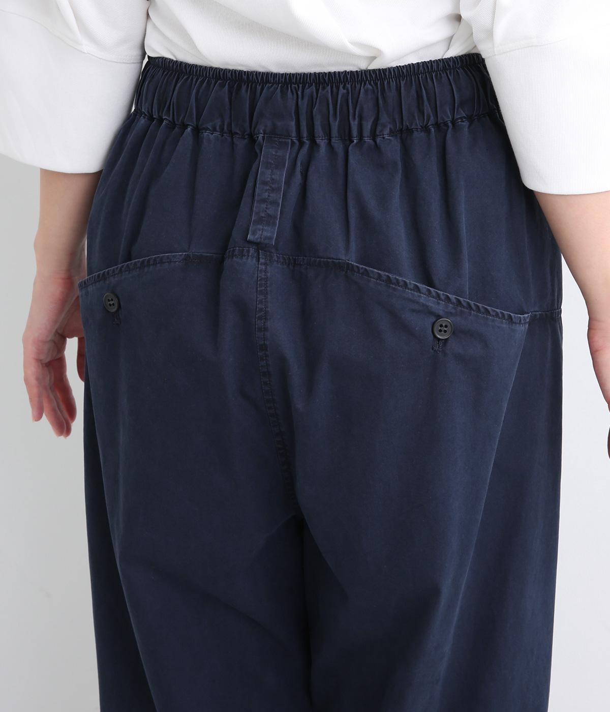 はきこんだようなヴィンテージ感とゆとりあるサイズが魅力のイージーパンツ。ワイドテーパードでボリューミーなのにすっきり見えます。ウエストゴムやサイドとヒップ部分に大きめのポケットつきで、デイリーに活躍する1本です。