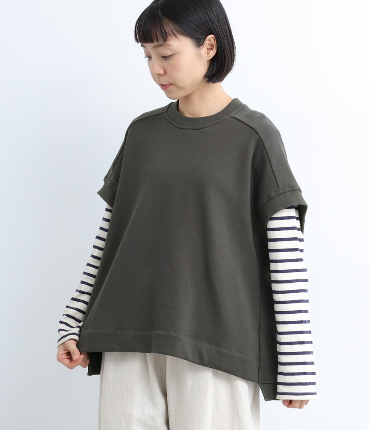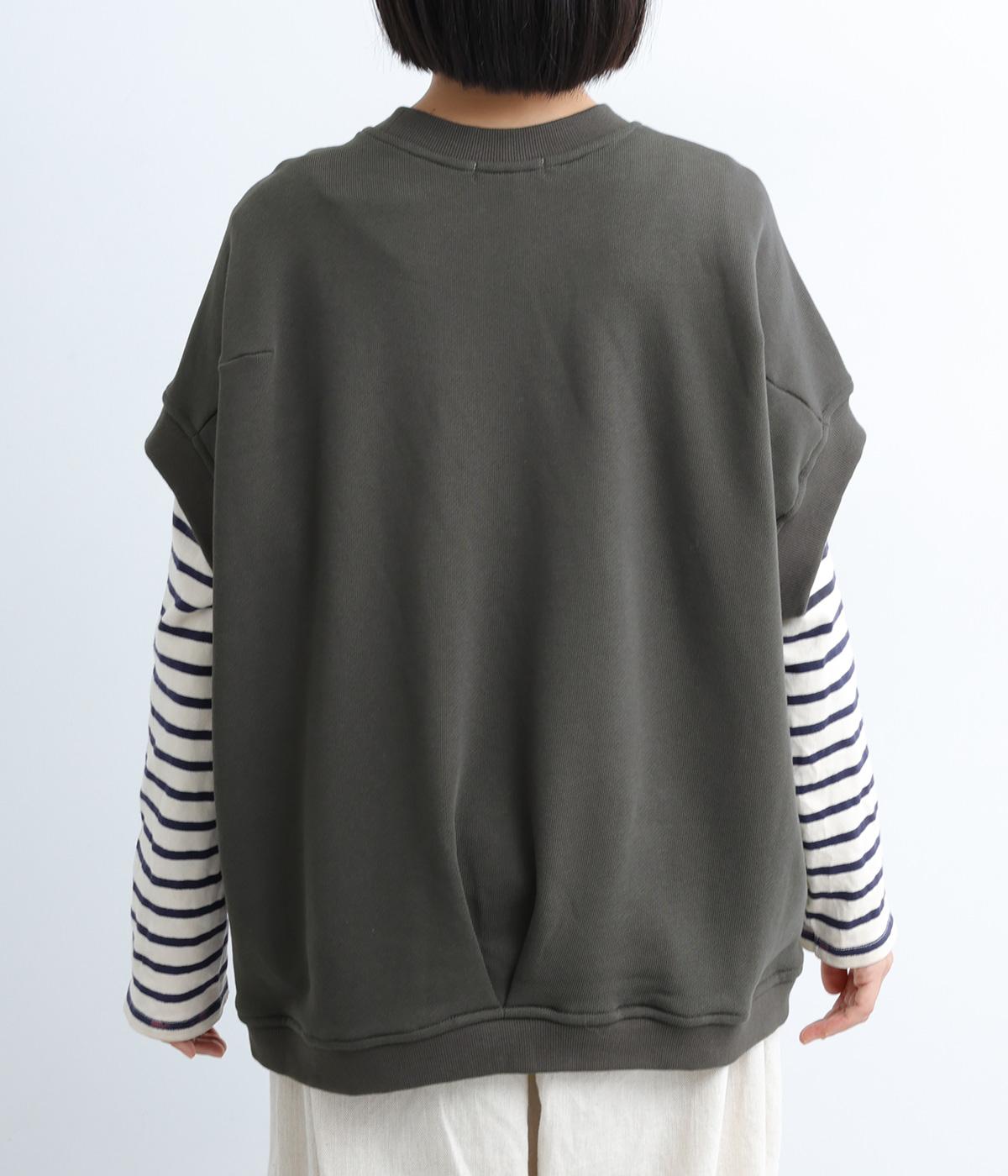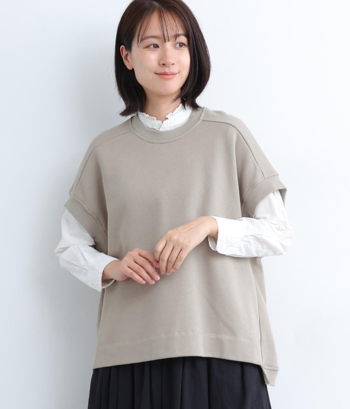 襟ぐり・袖ぐり・裾のワイドリブが特徴のワイドシルエットのベストです。裾に前後差を持たせ、背面に入れたタックが自然な落ち感をつくり、女性らしさを演出します。カジュアルでリラックス感がありながら、大人っぽい着こなしにも◎。