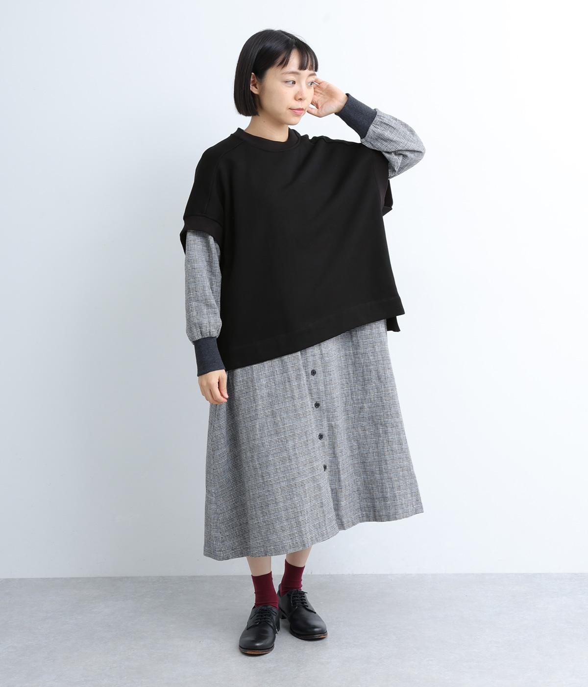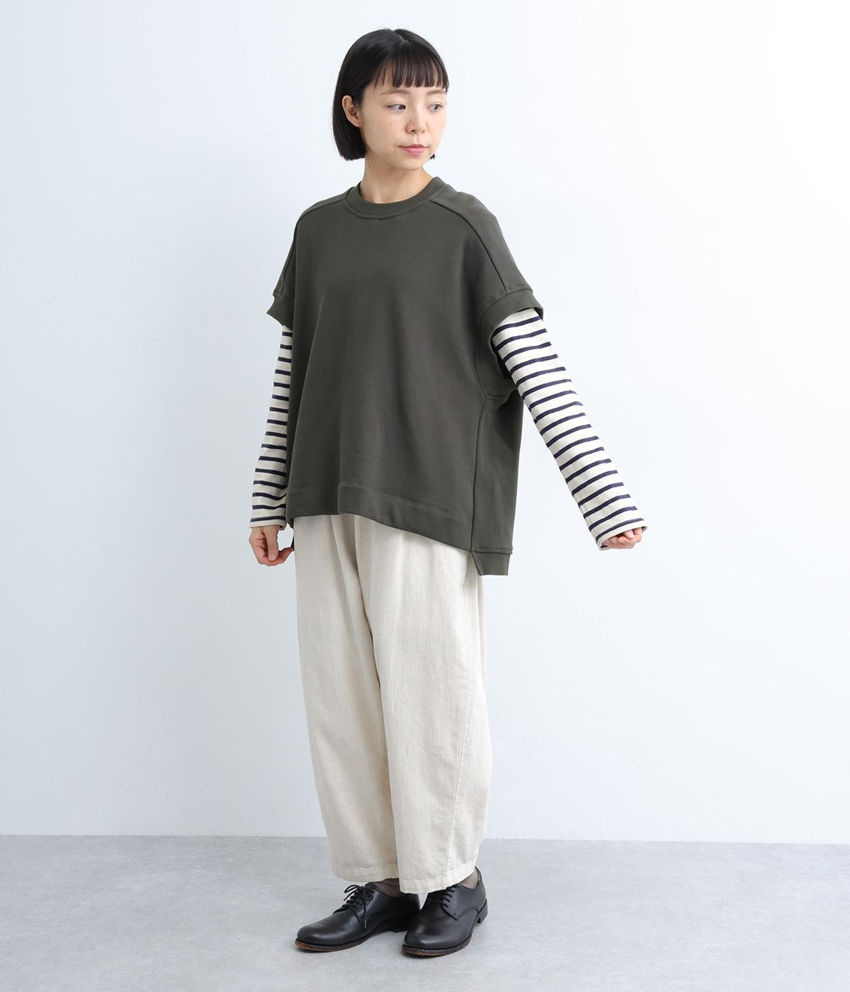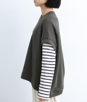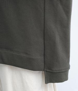 ほどよい厚みでふんわり感のある生地を使用しました。心地よい肌ざわりとハリのある質感が特徴で、デイリーに取り入れやすい素材感です。