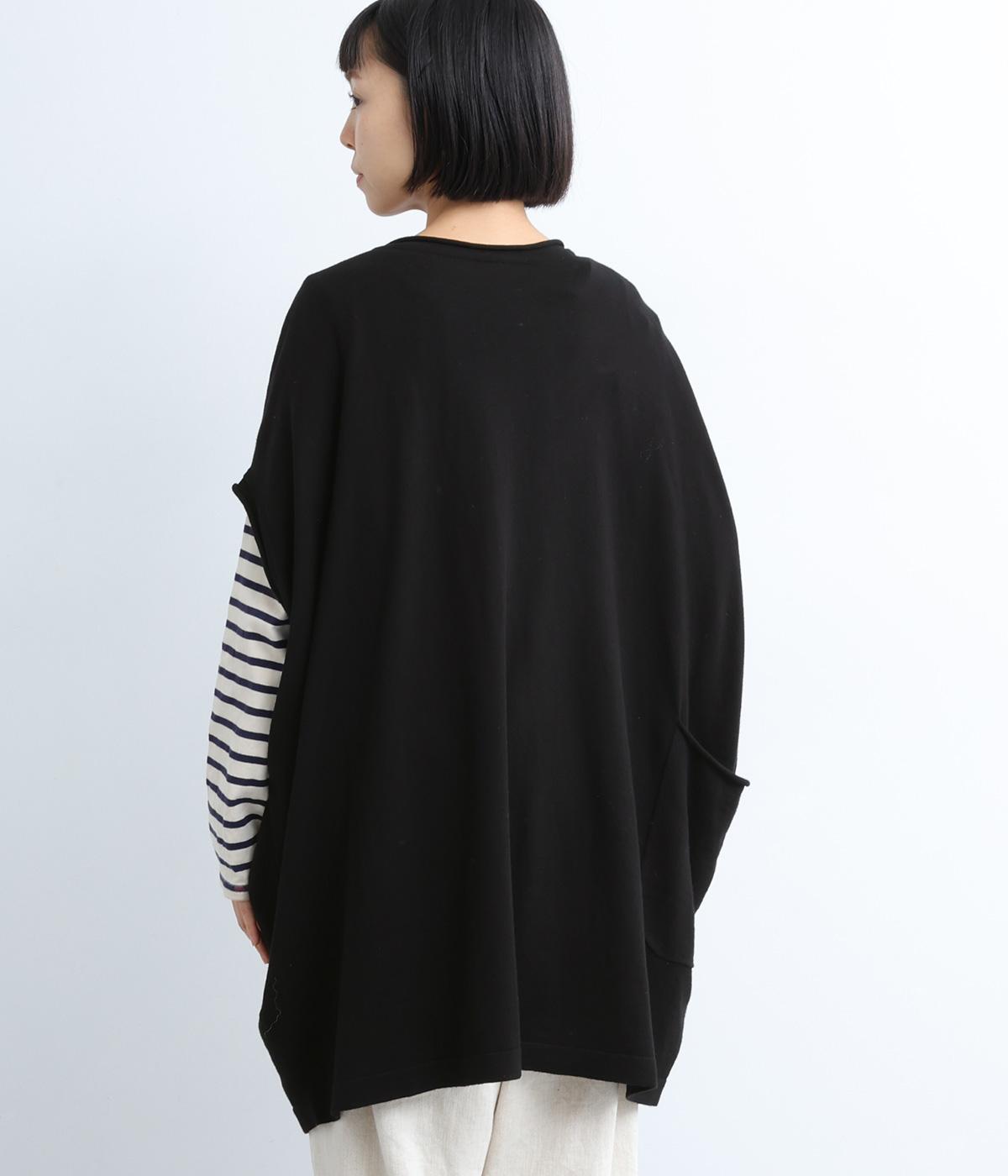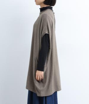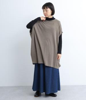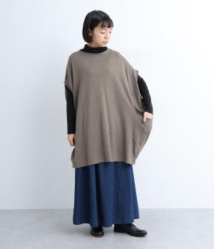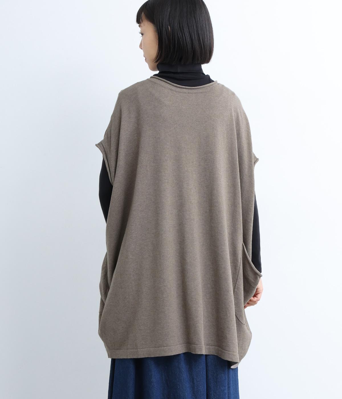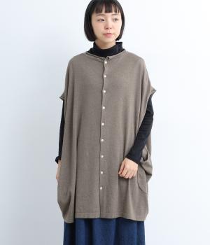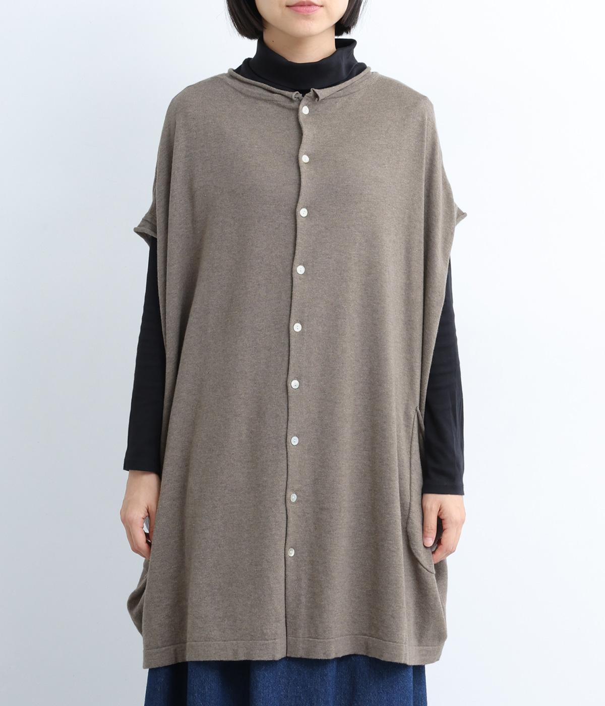前開きボタンとプルオーバーの2wayで着られるベストです。たっぷりの身幅がかわいらしいシルエットをつくり、体のラインを拾わずリラックスした着心地です。ルーズな肩のラインは二の腕カバーにも◎。