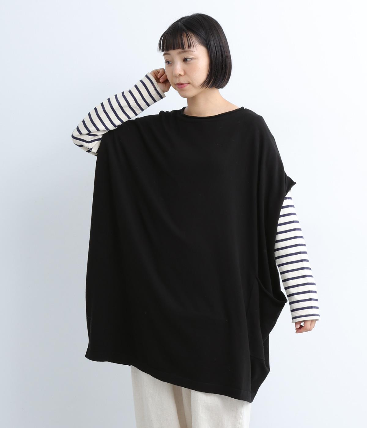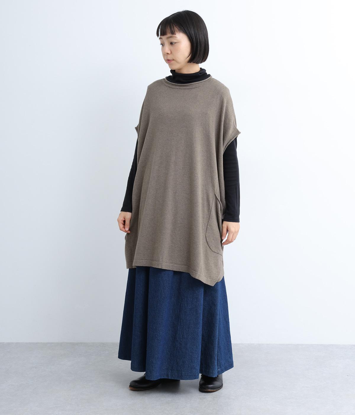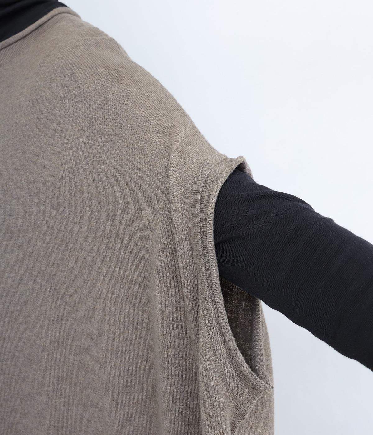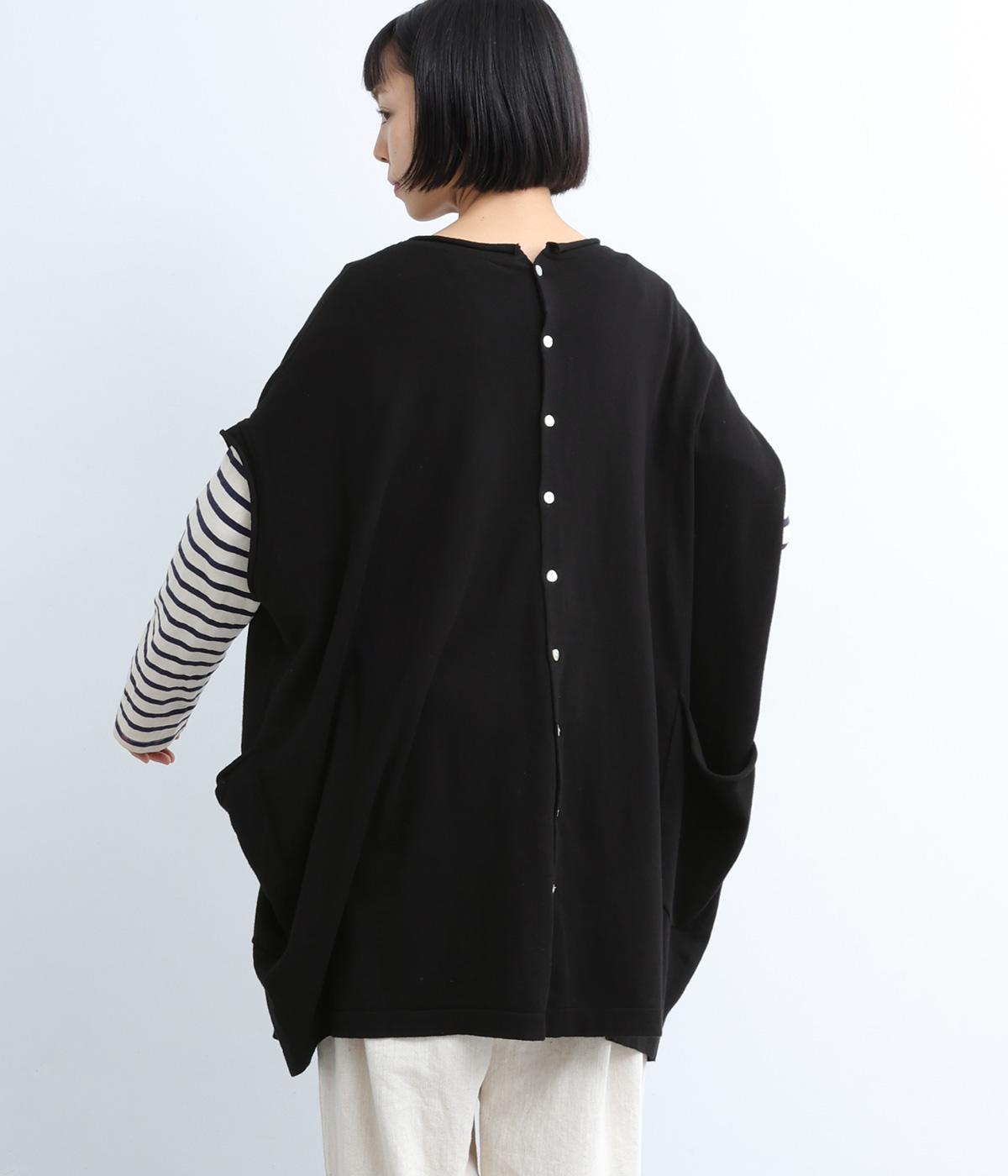 前開きボタンとプルオーバーの2wayで着られるベストです。たっぷりの身幅がかわいらしいシルエットをつくり、体のラインを拾わずリラックスした着心地です。ルーズな肩のラインは二の腕カバーにも◎。