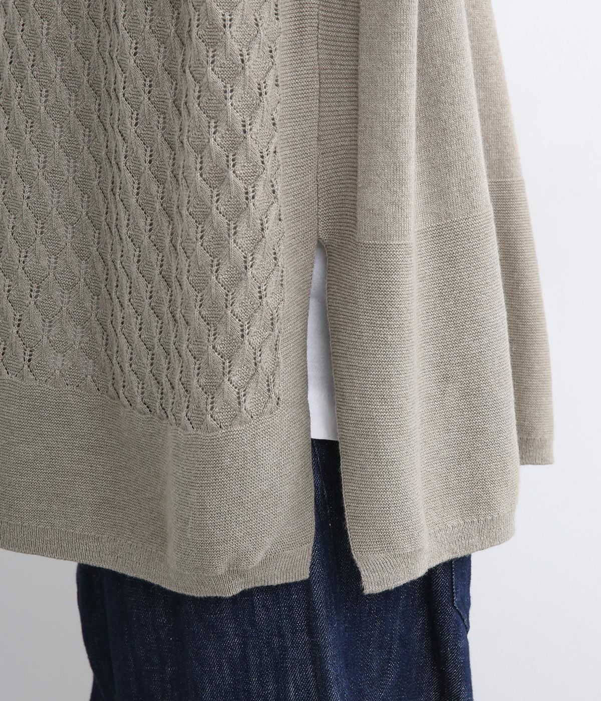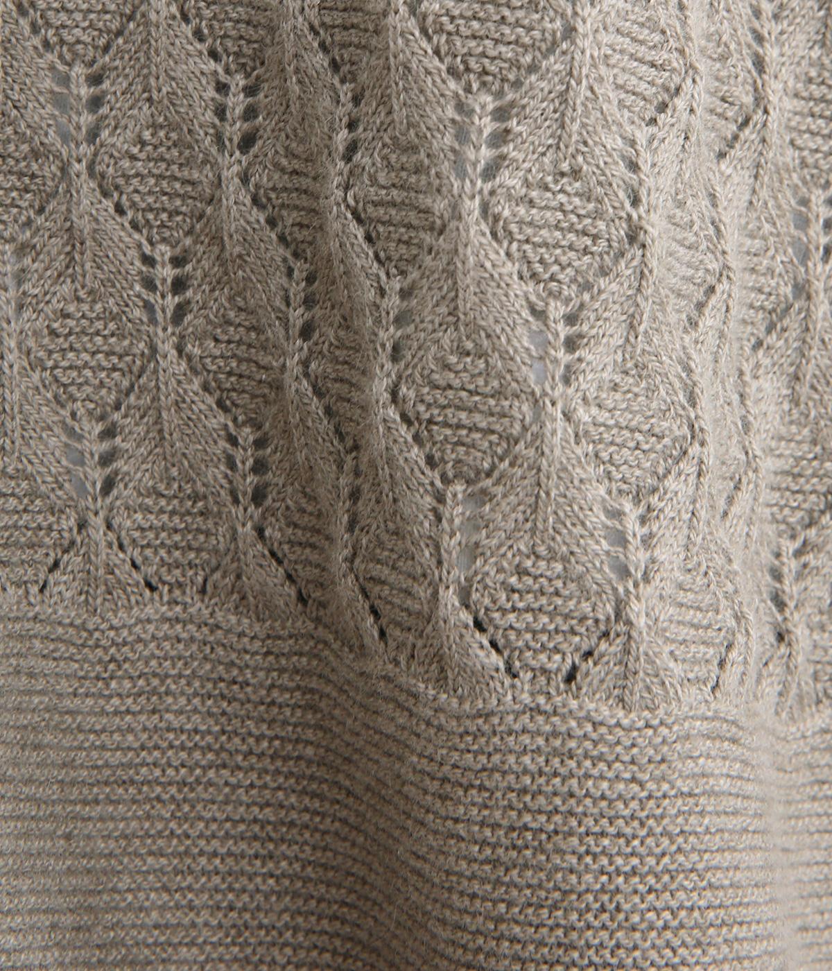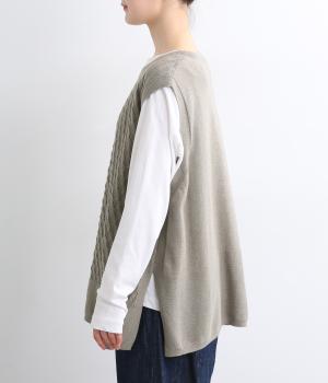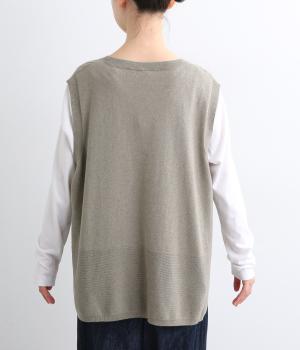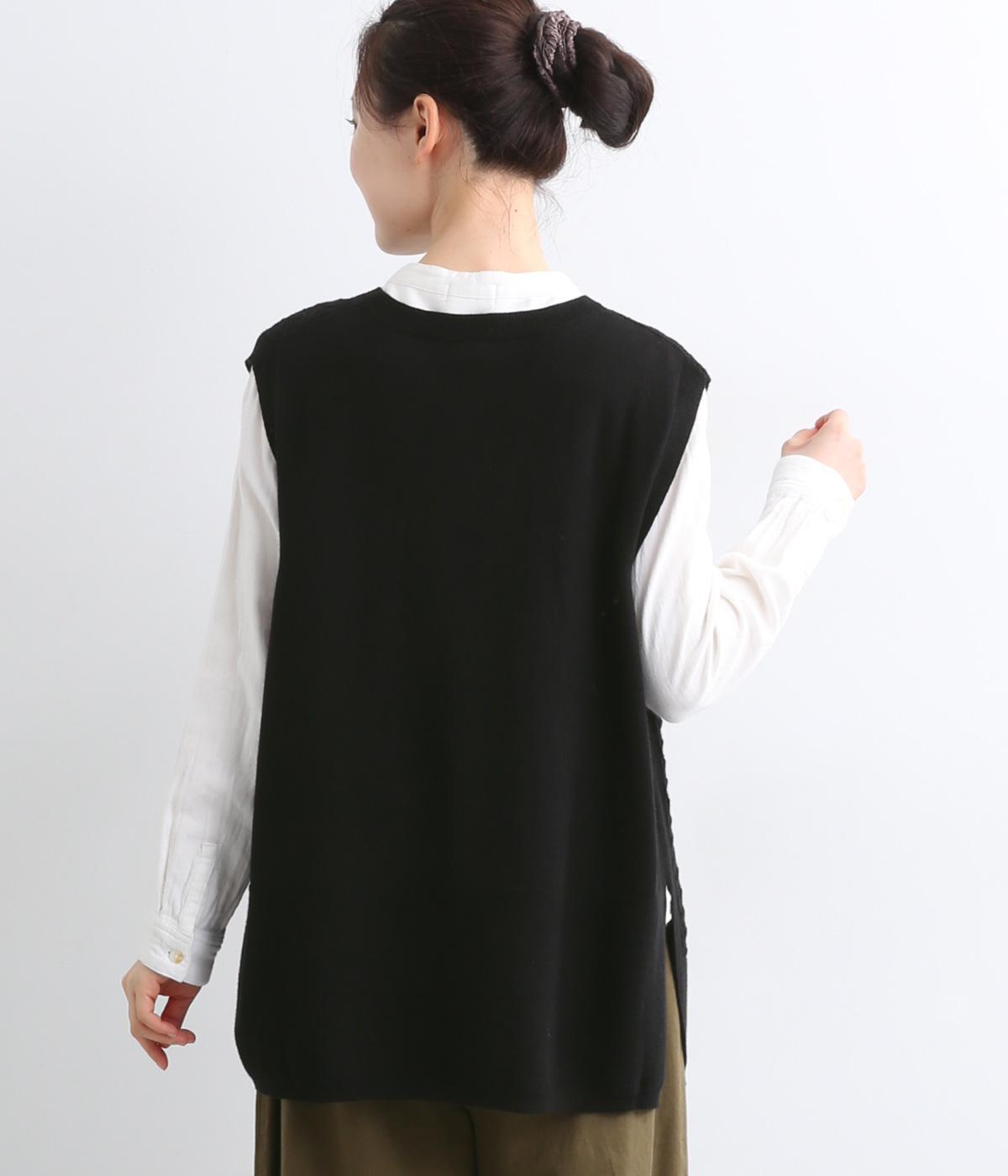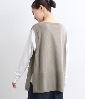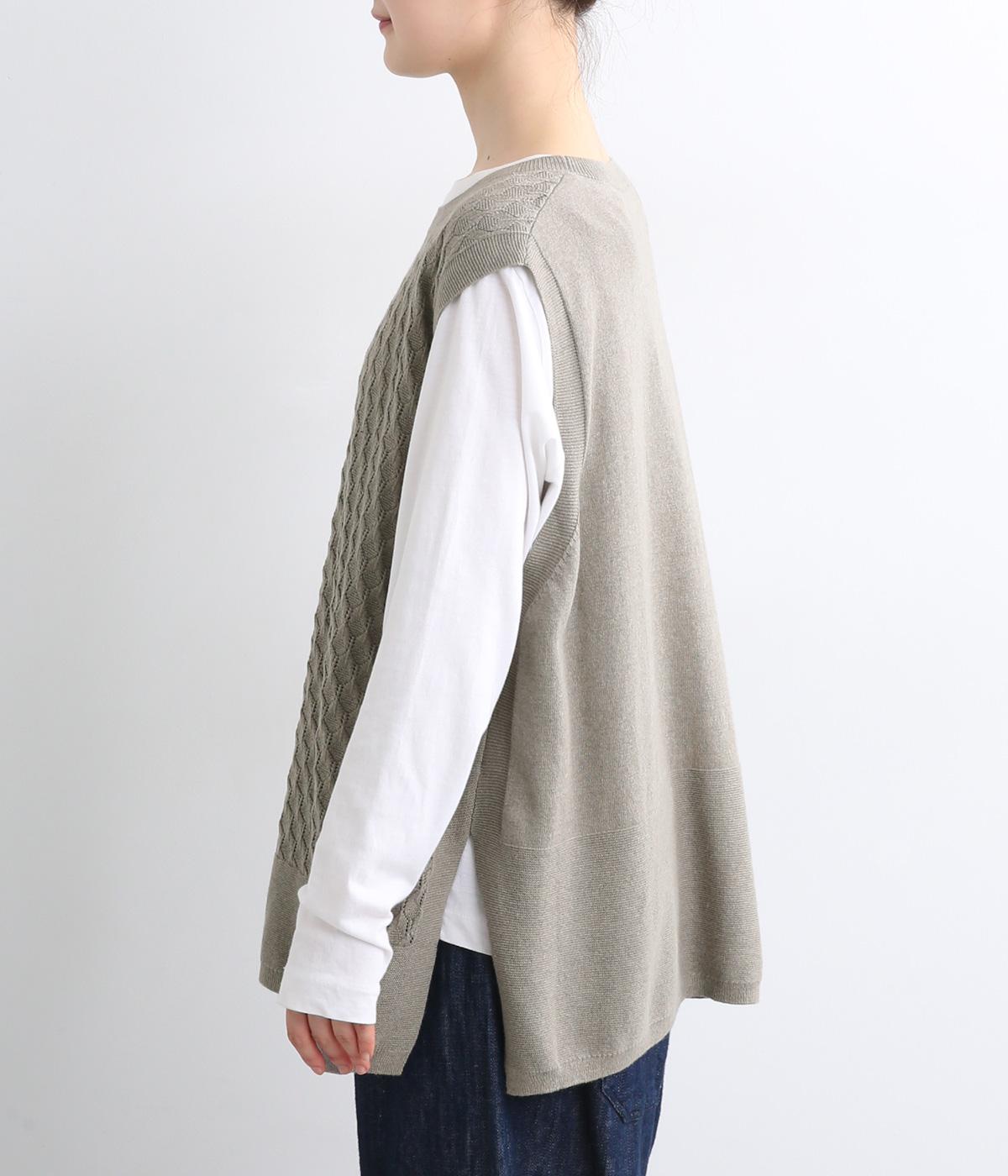 立体感のある透かし編みをフロントにあしらったニットベスト。ゆとりのあるシルエットで、アームも広く取られているのでさまざまなトップスに重ねやすいです。ヒップが隠れる丈感でさりげなく体型カバーも叶います。