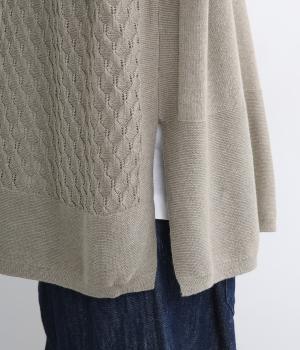 やわらかくなめらかな肌ざわりと温かさを持ち合わせた、12G天竺のコットンカシミヤを使用。ふっくらとしつつも薄手なので、季節の変わり目のレイヤードに最適です。