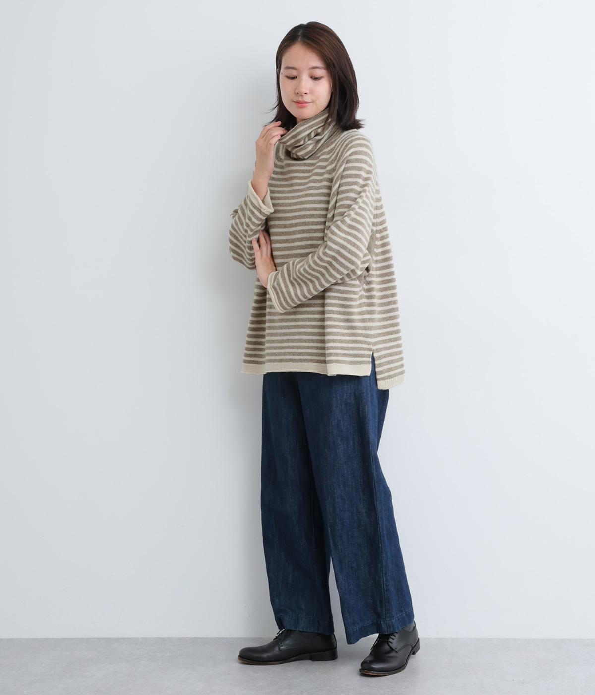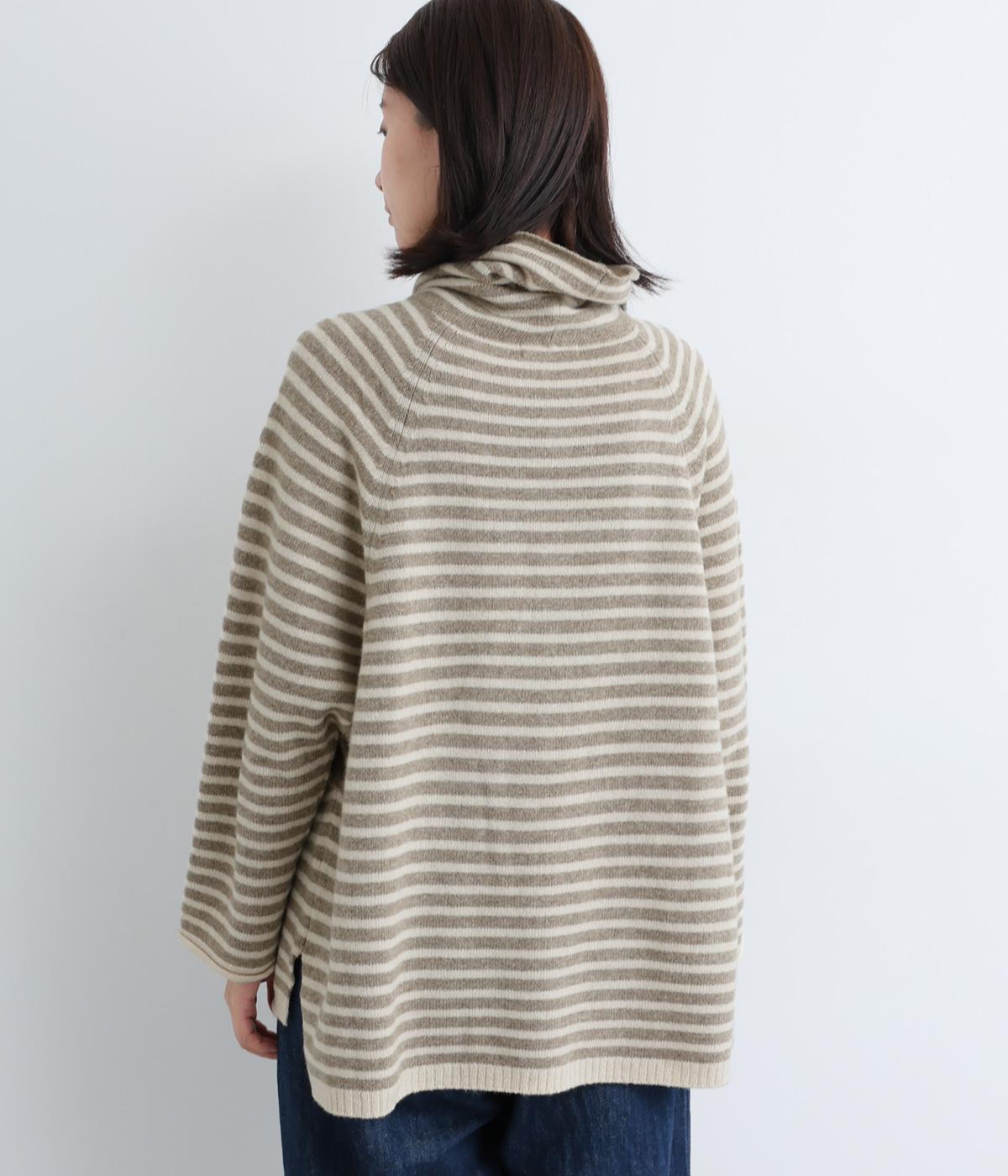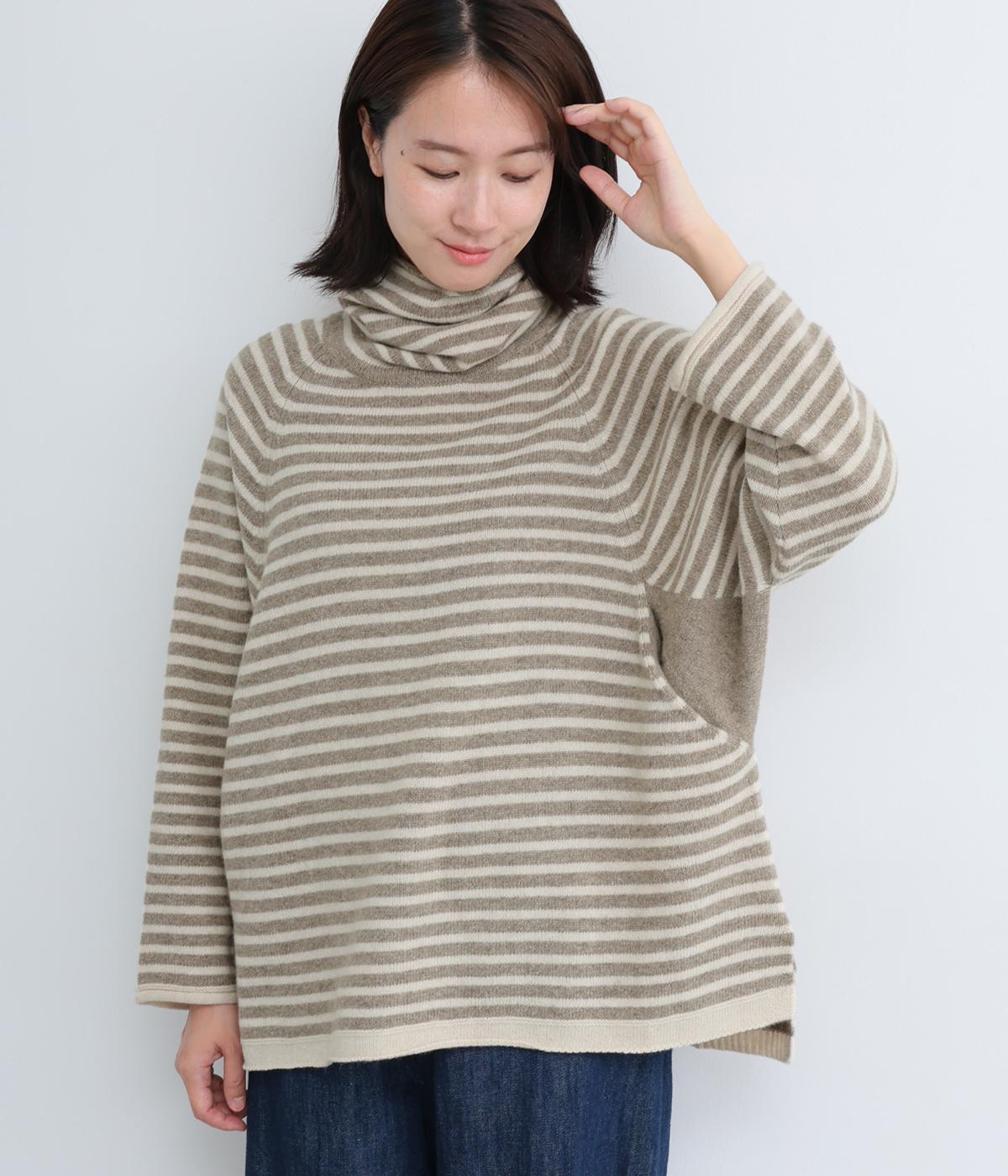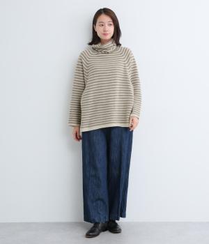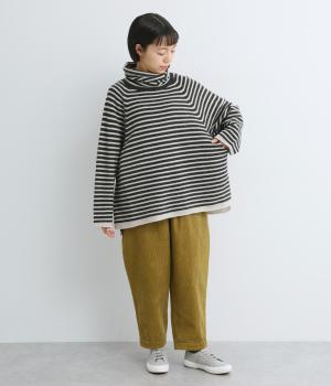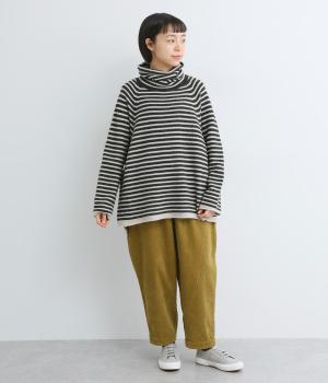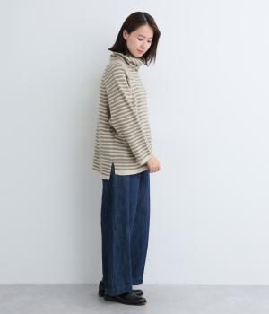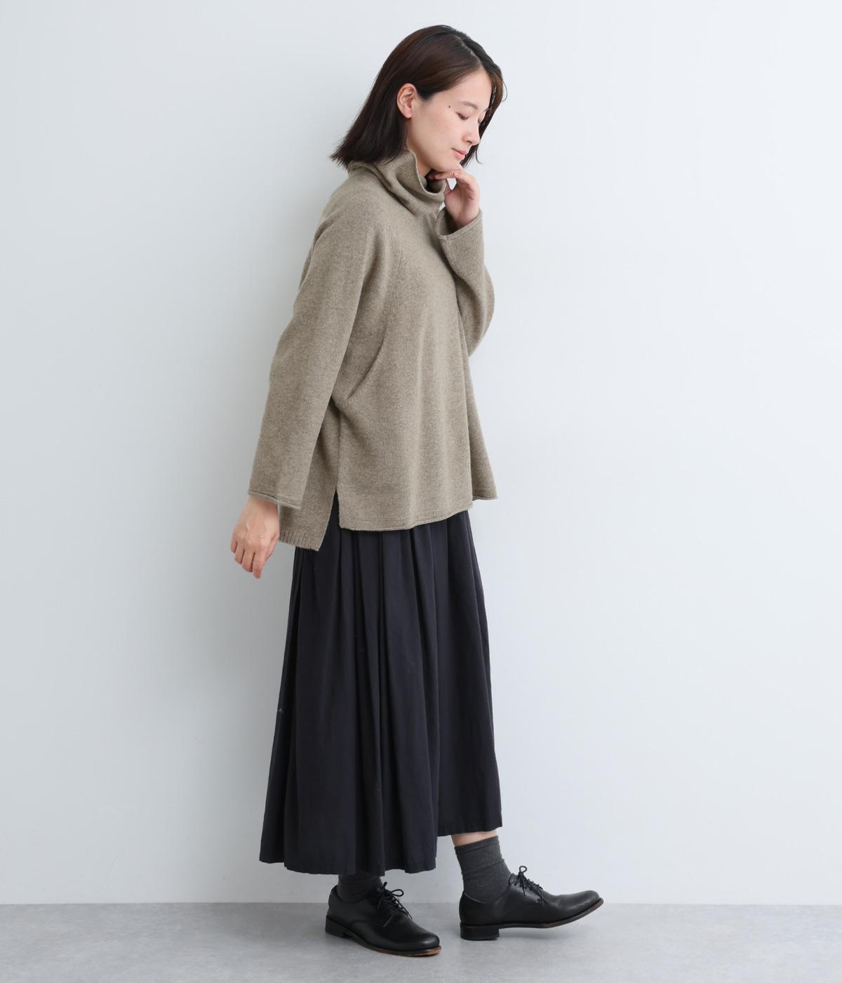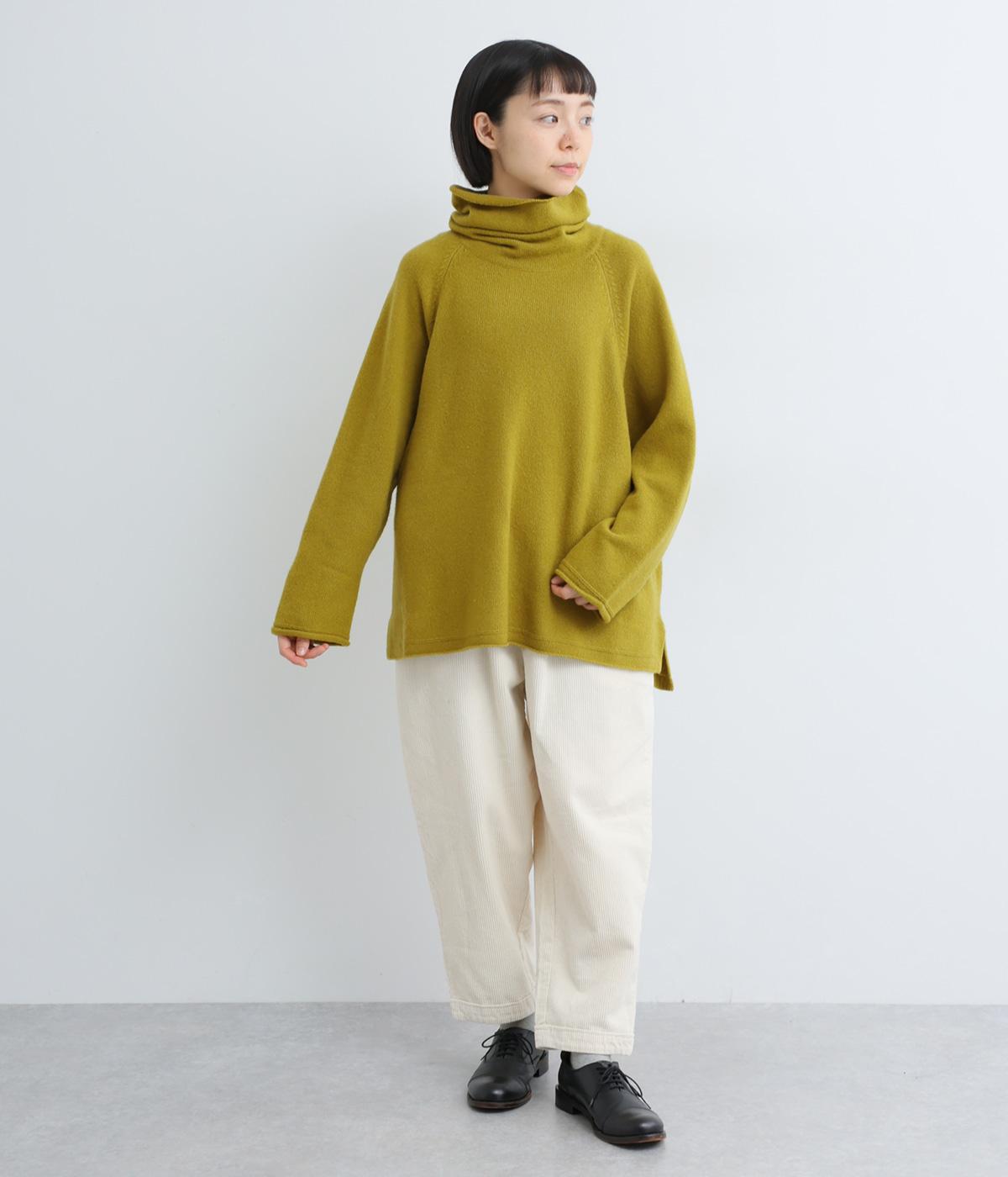 くしゅっとたるむハイネックが顔まわりにボリュームをもたせ、シンプルながらも着こなしのポイントになる一枚。ゆったりとしたラグラン袖につながるサイドポケットもユニークなポイント。スリット入りでボトム合わせもすっきりまとまります。