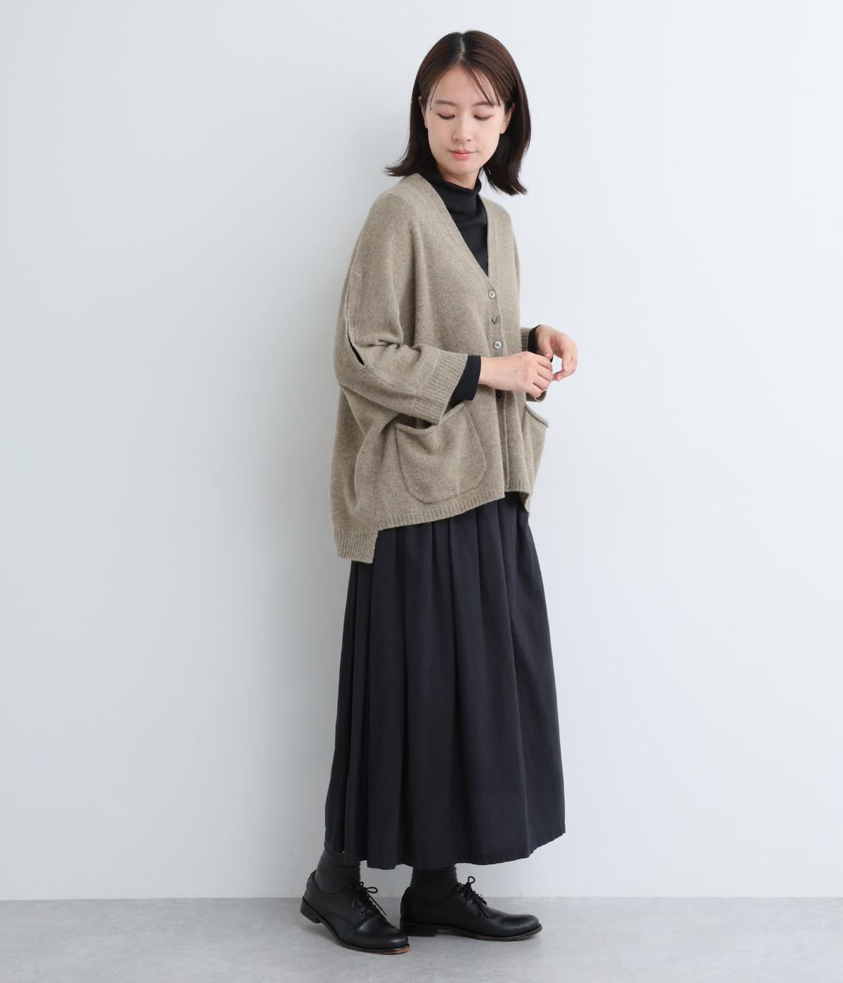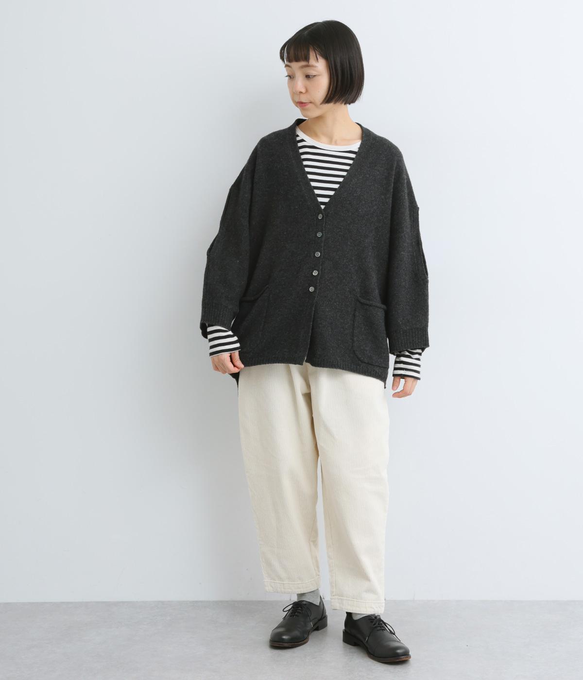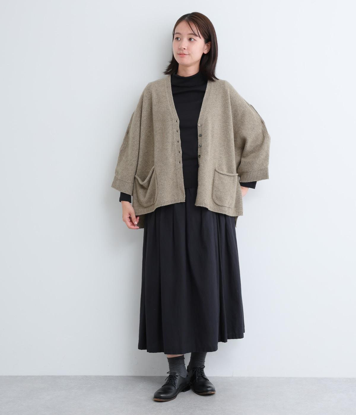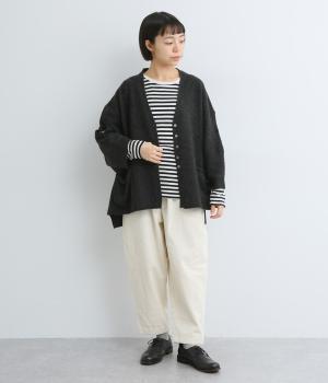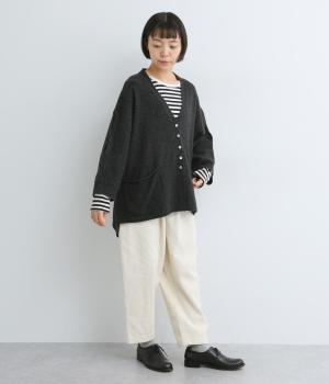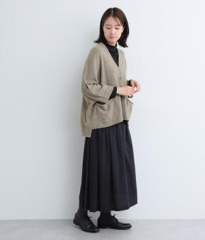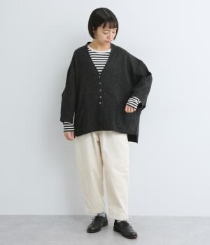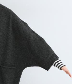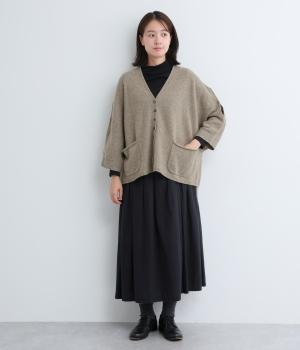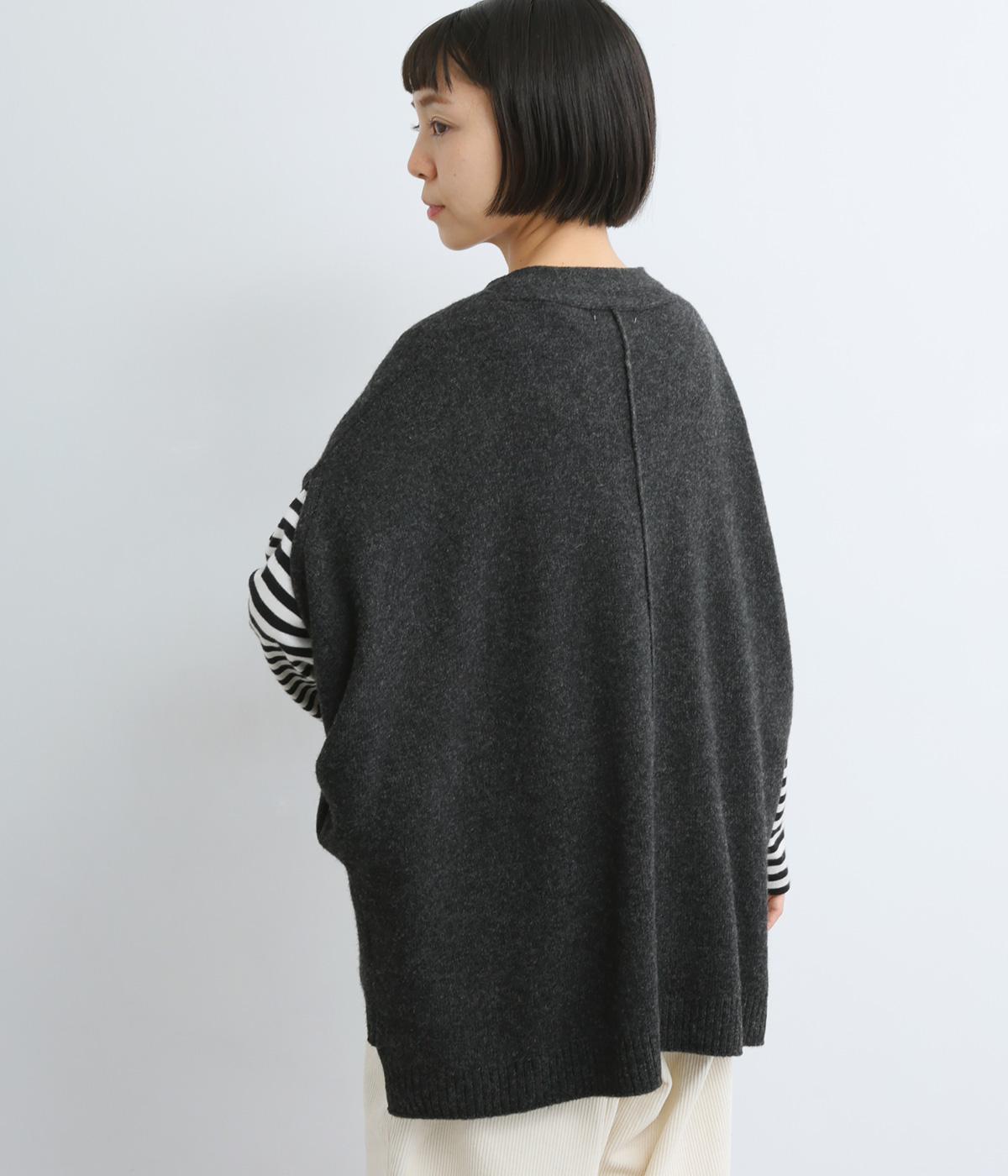ゆったりとしたVネックのカーディガンは、ベーシックなドルマンスリーブとしても、袖の中央のホールから腕を出してベスト感覚でも着こなせる2way仕様。ユニークなデザインが他にはなく、一枚持っているとさまざまなスタイリングたたのしめます。
