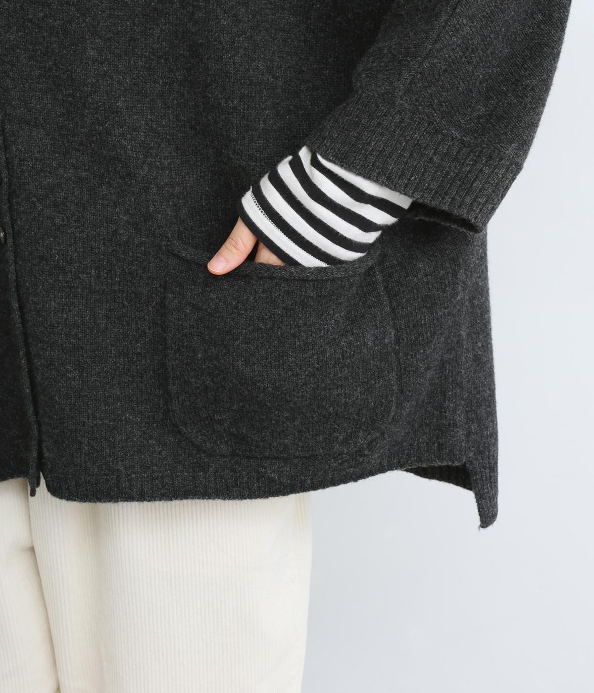 ウールをベースにリサイクルナイロンをまぜてあたたかみと軽やかな仕上がりを両立。やわらかで伸びも良く、肉厚すぎないので着心地も快適です。