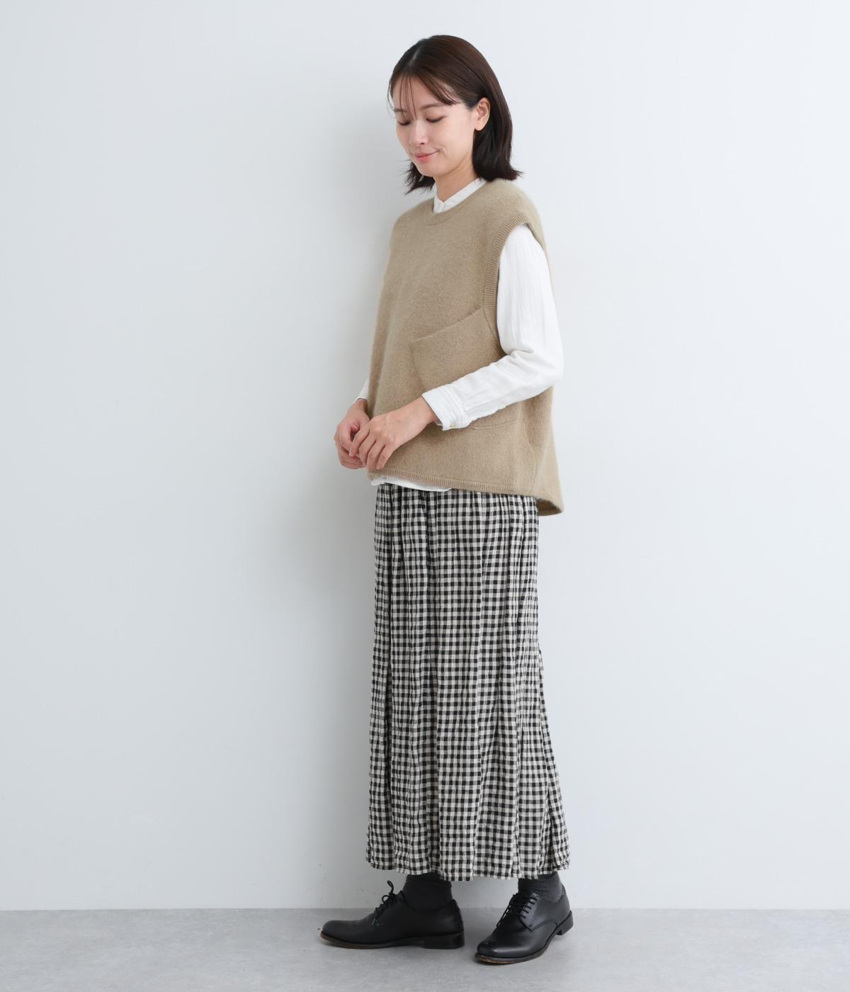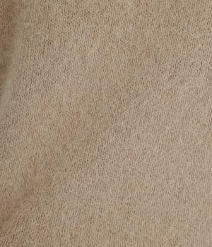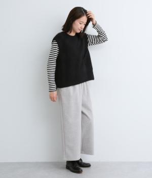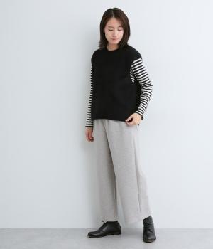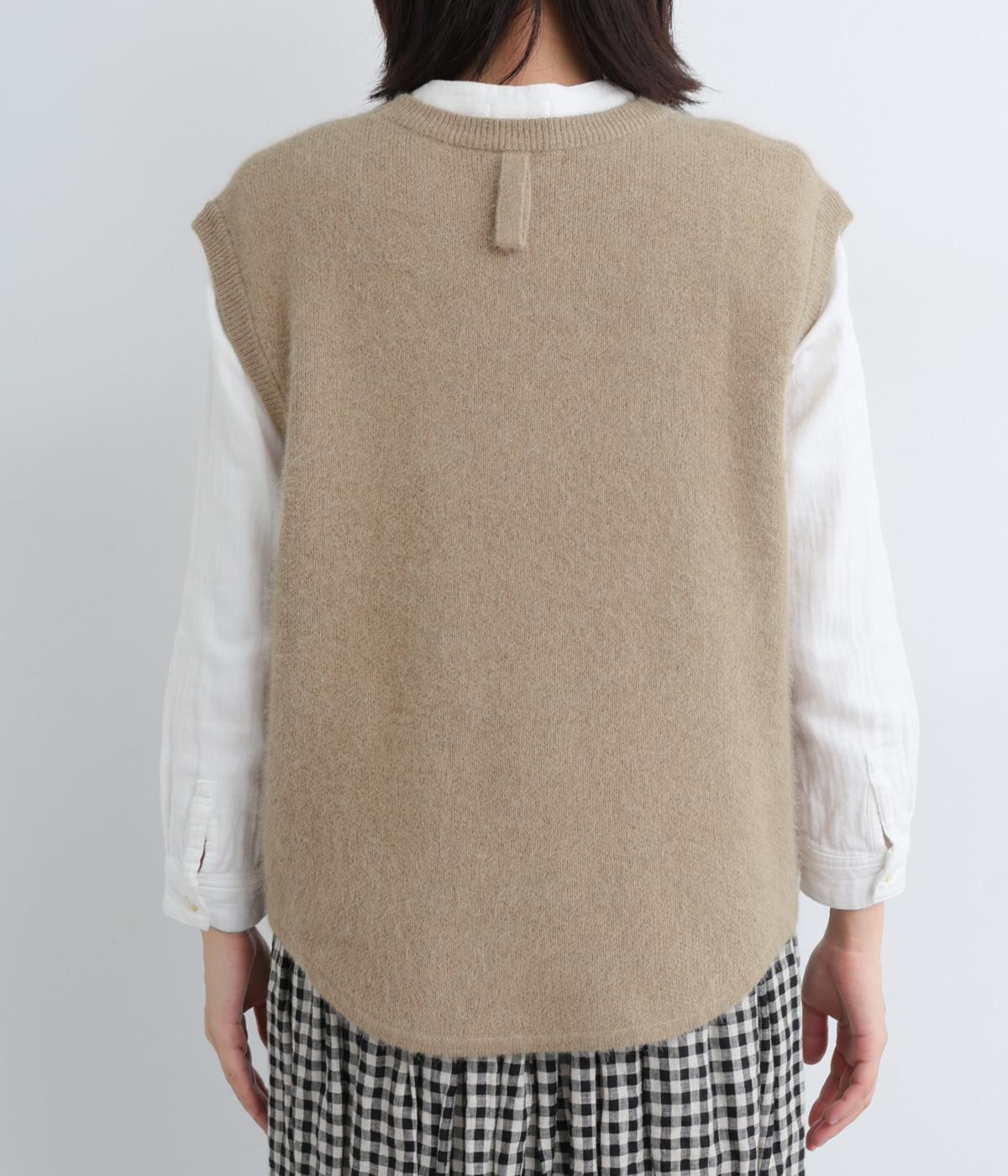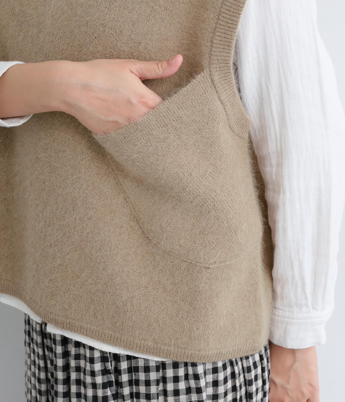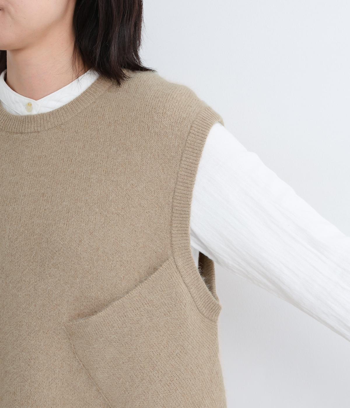フォックスと羊毛をまぜた、ふわりとしたあたたかな表情が魅力のウールニットを使用。ナイロンやレーヨンもまぜているので、やわらかく自然な落ち感があります。