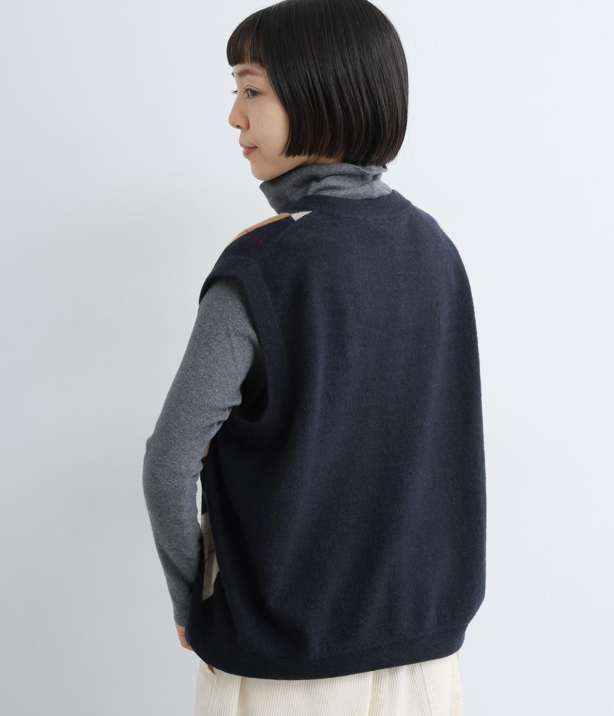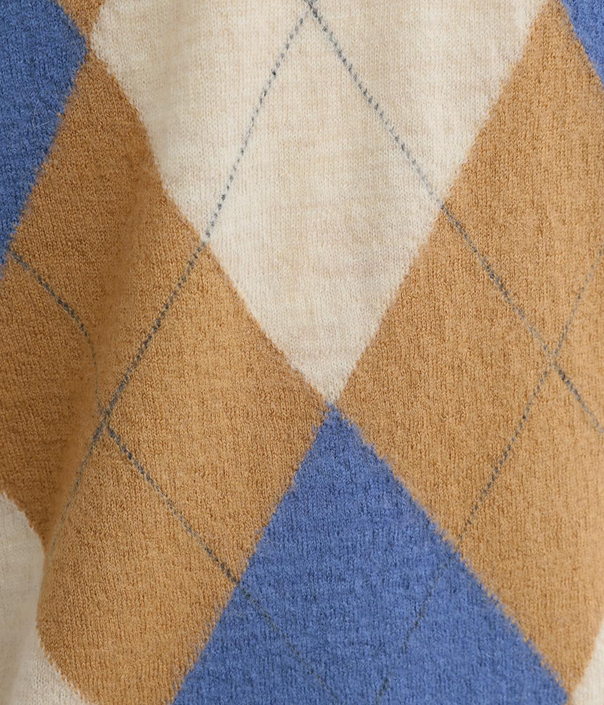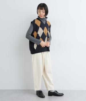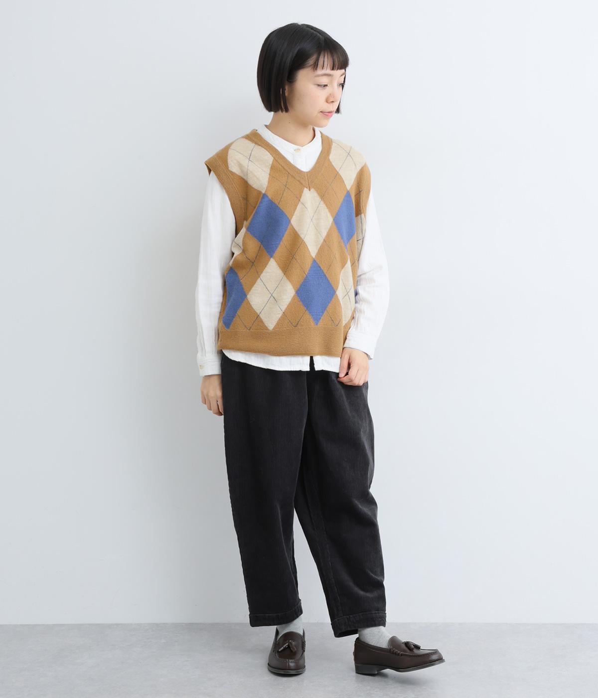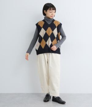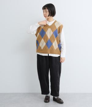 いつものスタイリングにプラウっするだけでトラッドファッションをたのしめる、アーガイル柄ニットベスト。肉厚すぎず、ゆとりのあるサイズ感でレイヤードしやすく仕上がっています。Vネックの抜け感もちょうどよく、襟つきトップスとも好相性です。