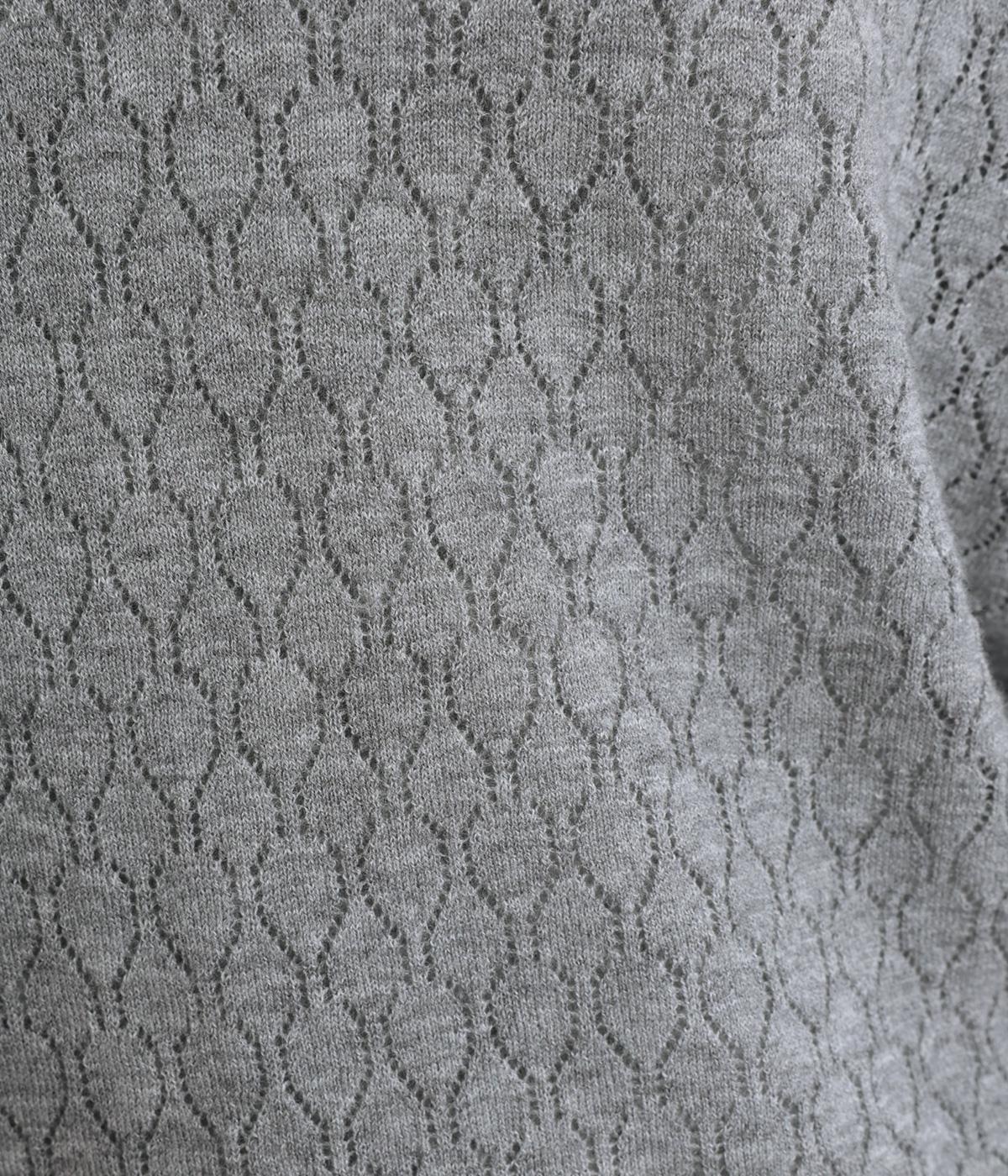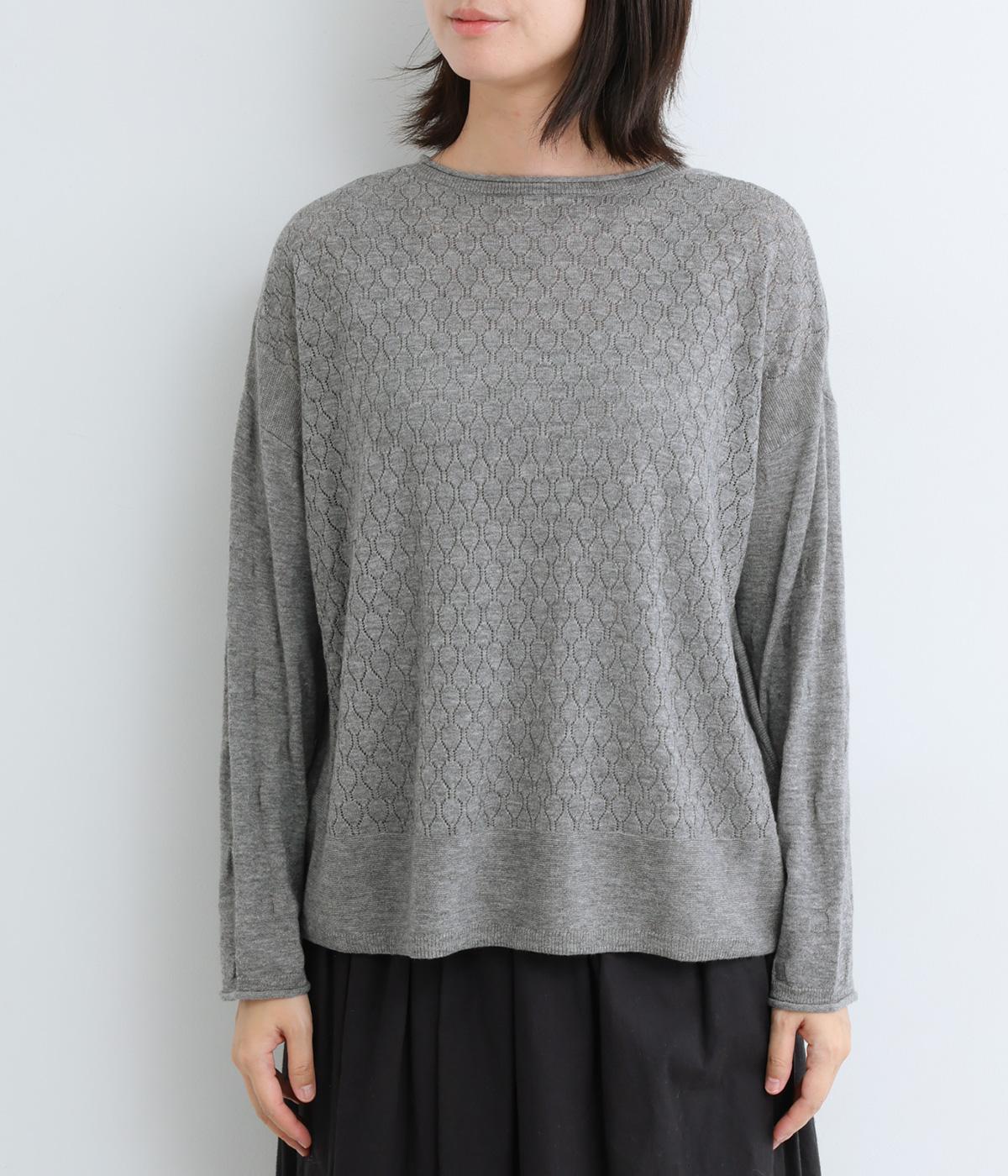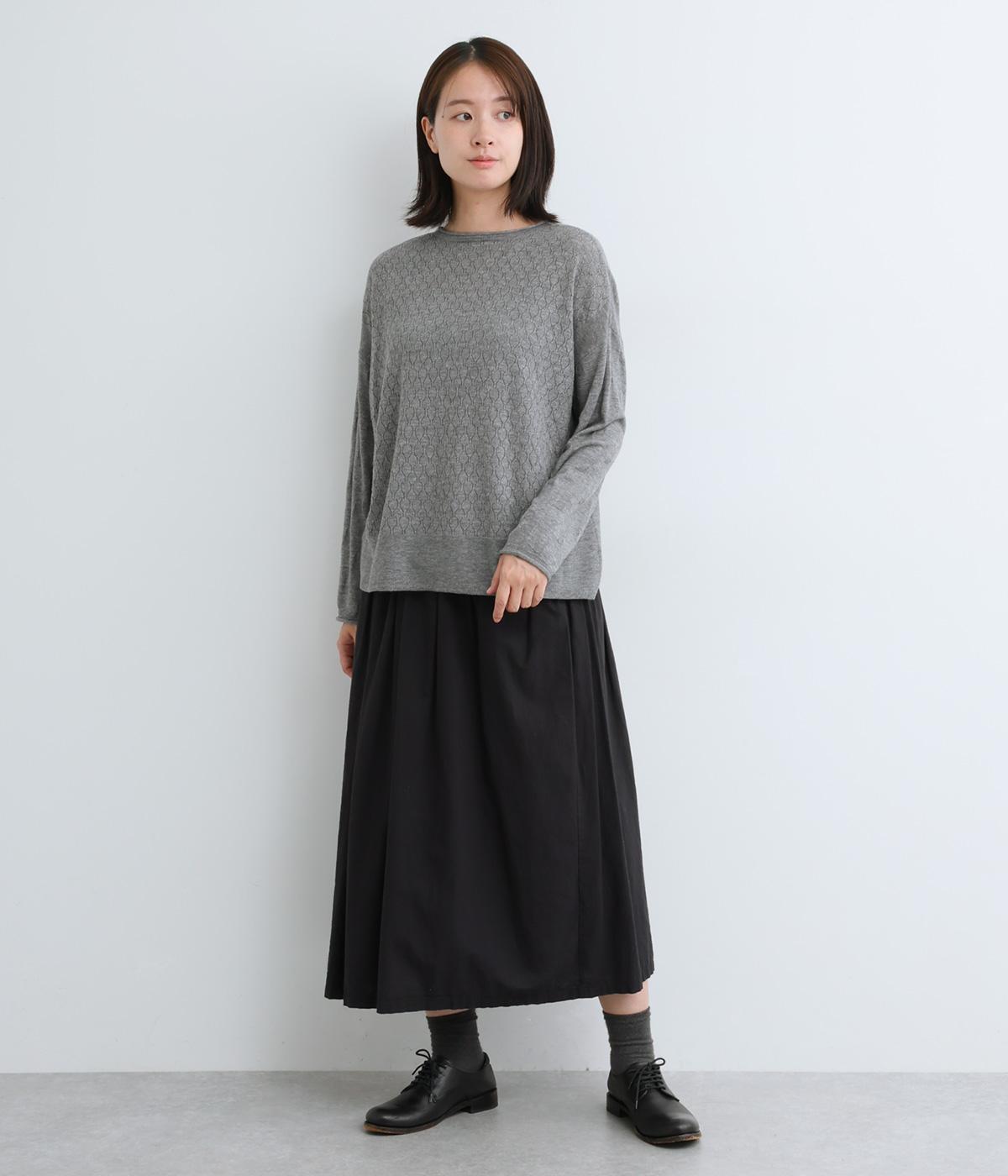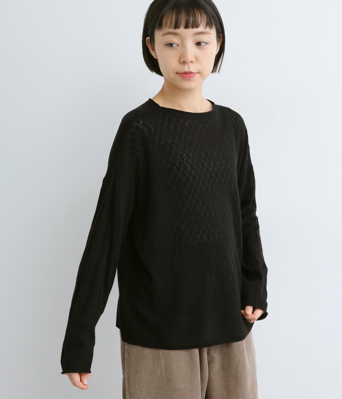 無地感覚で着やすいさり気ないドットジャカードとスカシ柄、どちらをメインにしてもたのしめる前後2wayのプルオーバーです。落ち感のあるやわらかな素材に適度なサイジングでスタイリングしやすい仕上がり。落ち着いた配色でデイリーに着まわせます。