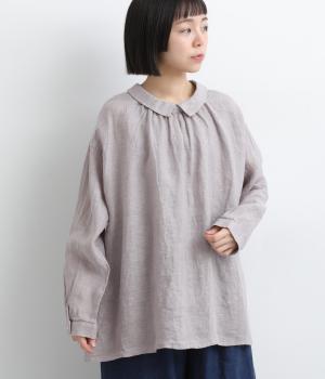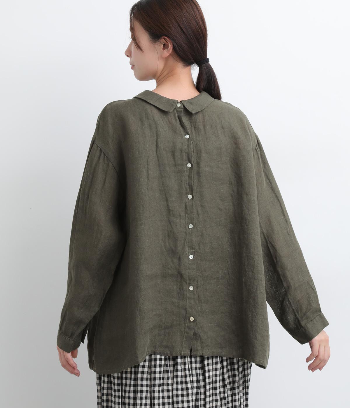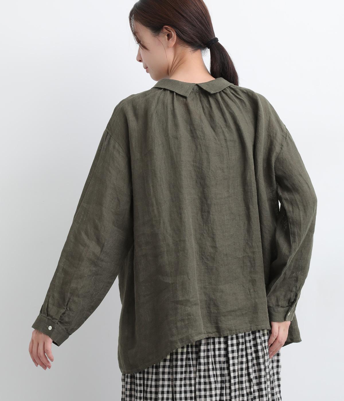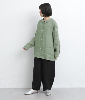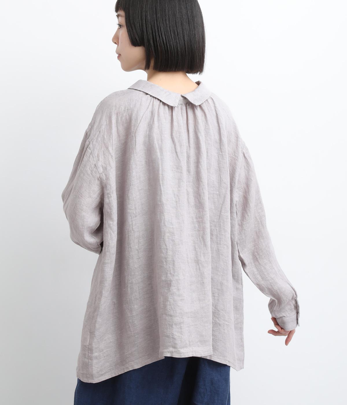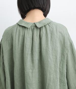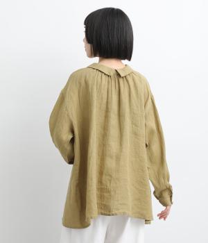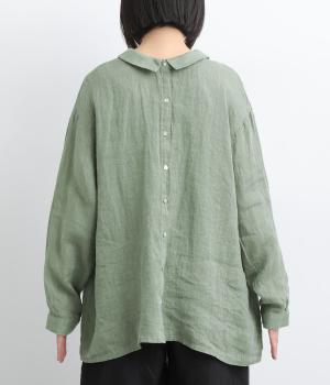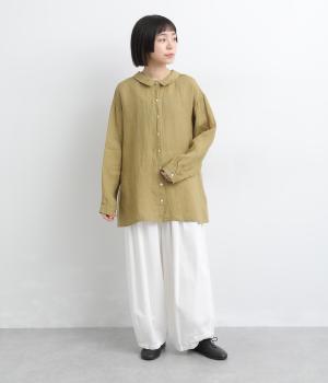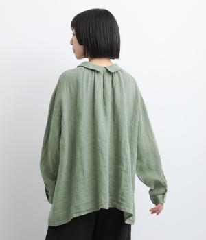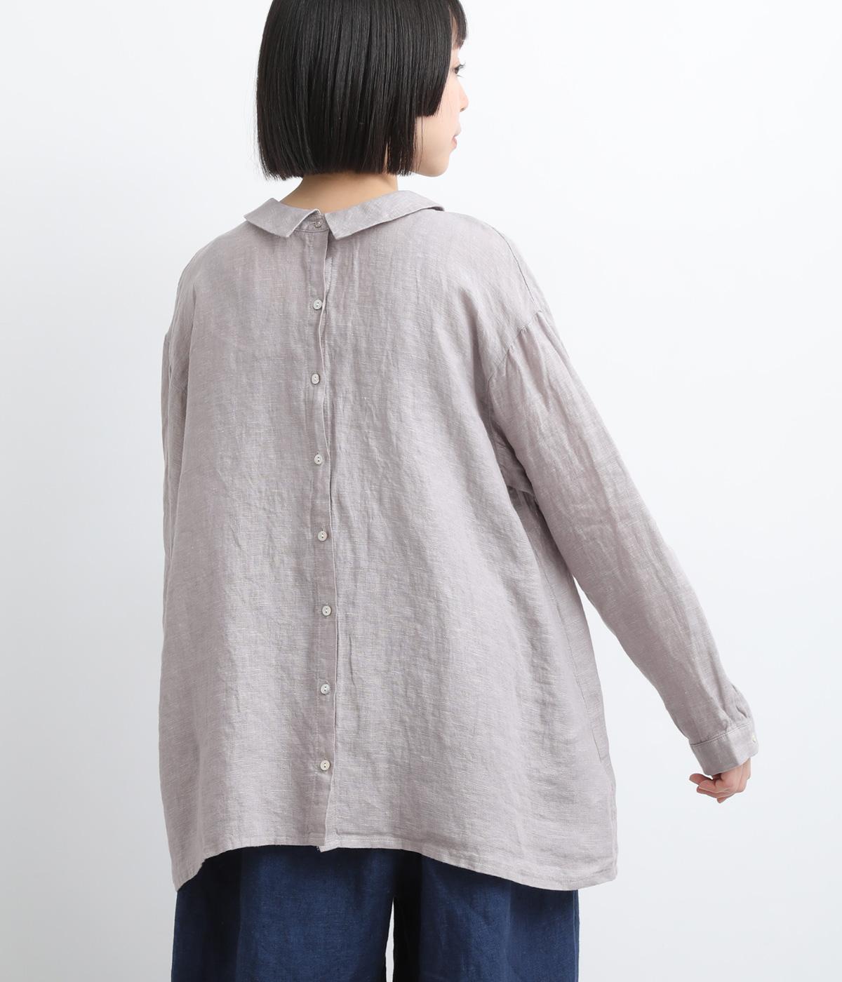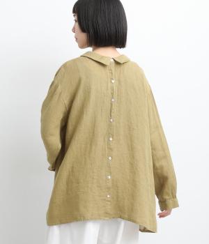 ゆったりとしたオーバーサイズが独特のこなれ感を生む襟つきブラウス。前後どちらでもたのしめる2way仕様で、羽織りにしたりと着こなしの幅も広がります。袖口は細めのカフスで適度にすっきりと。