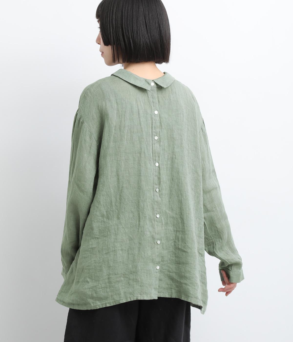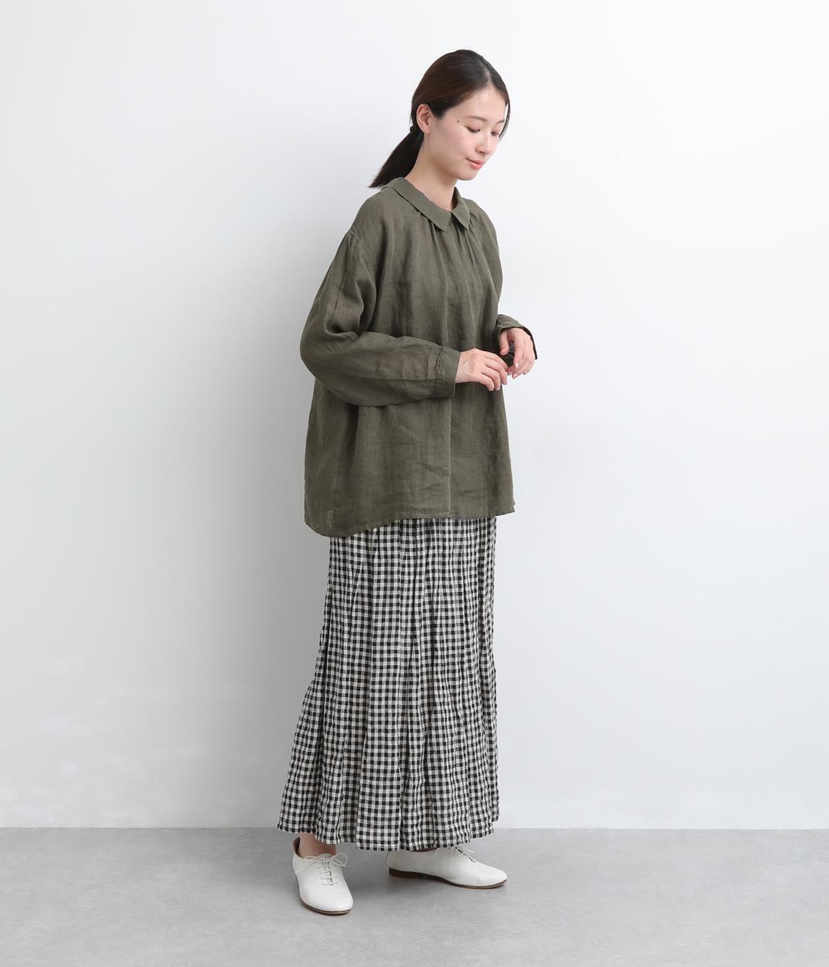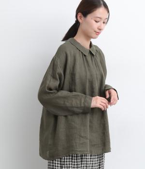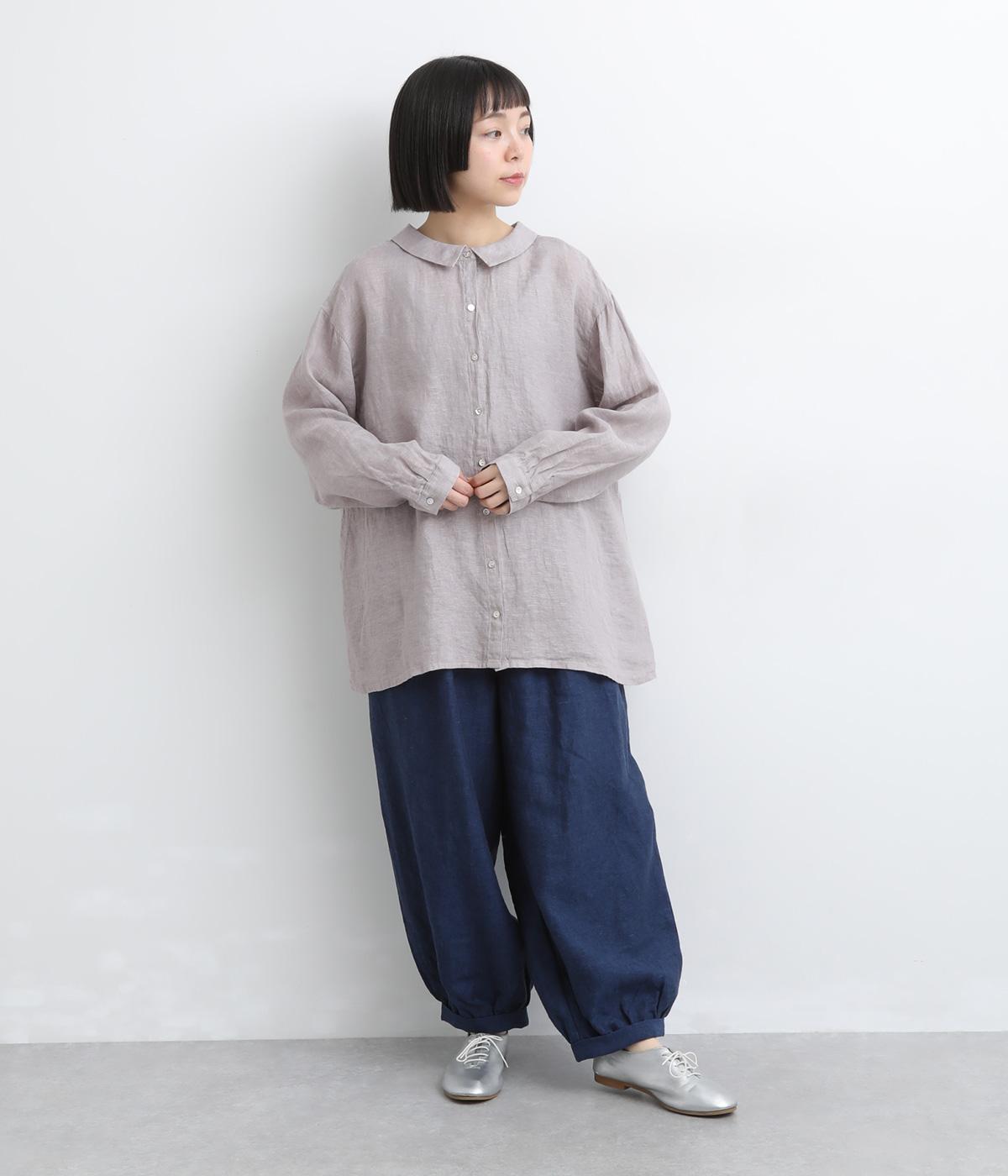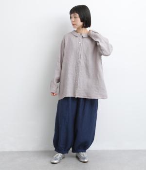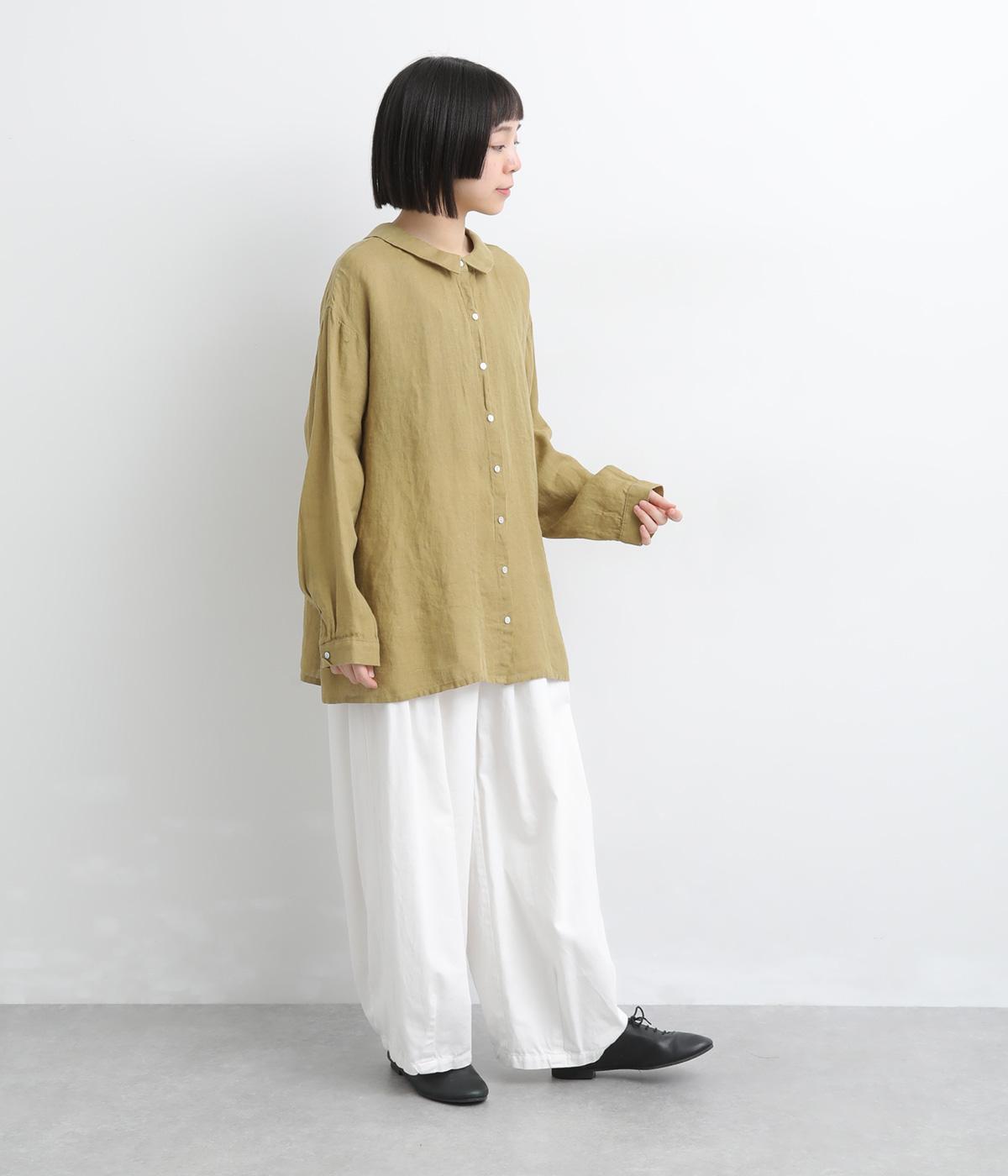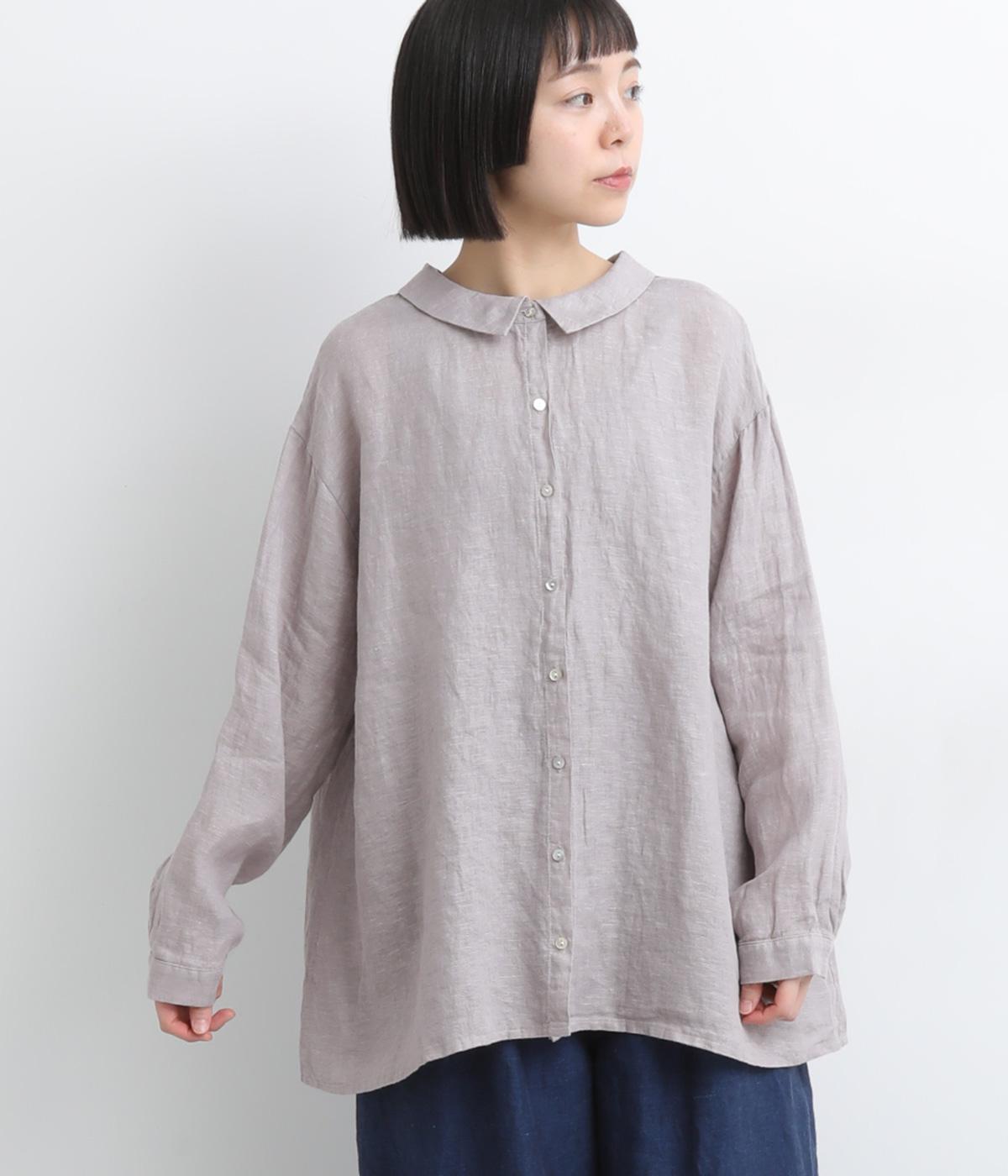 ゆったりとしたオーバーサイズが独特のこなれ感を生む襟つきブラウス。前後どちらでもたのしめる2way仕様で、羽織りにしたりと着こなしの幅も広がります。袖口は細めのカフスで適度にすっきりと。