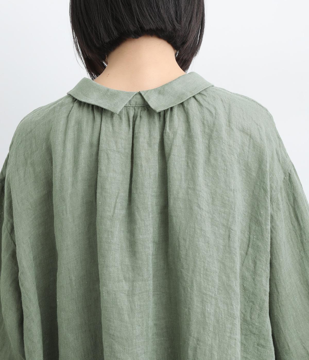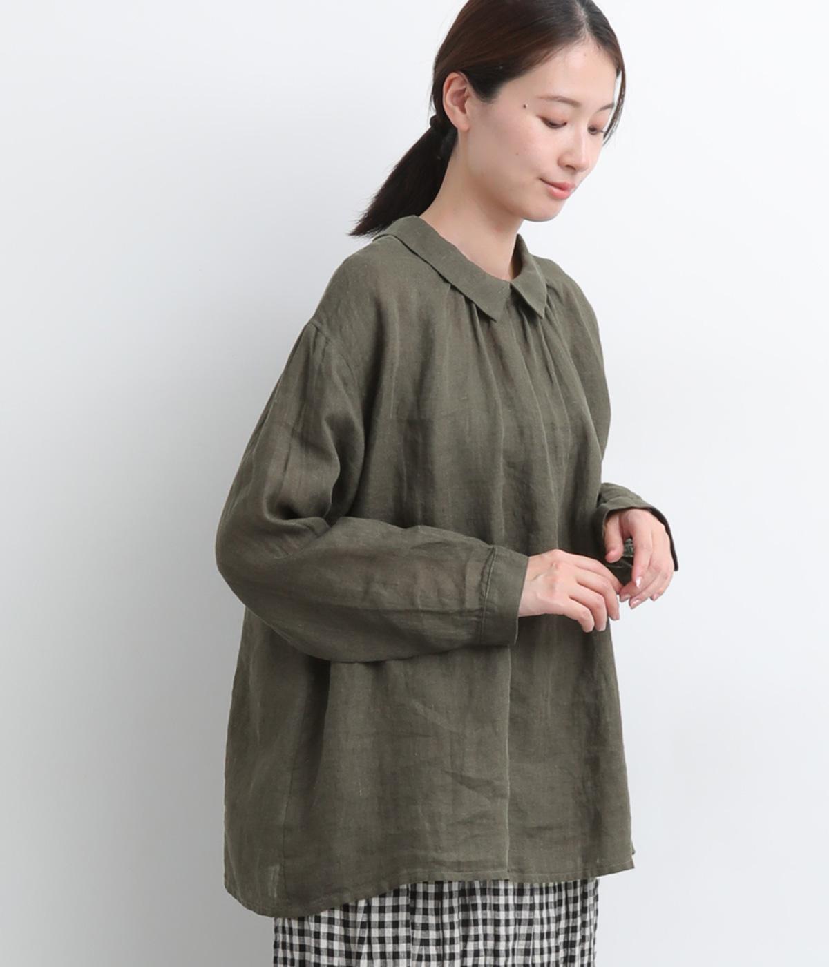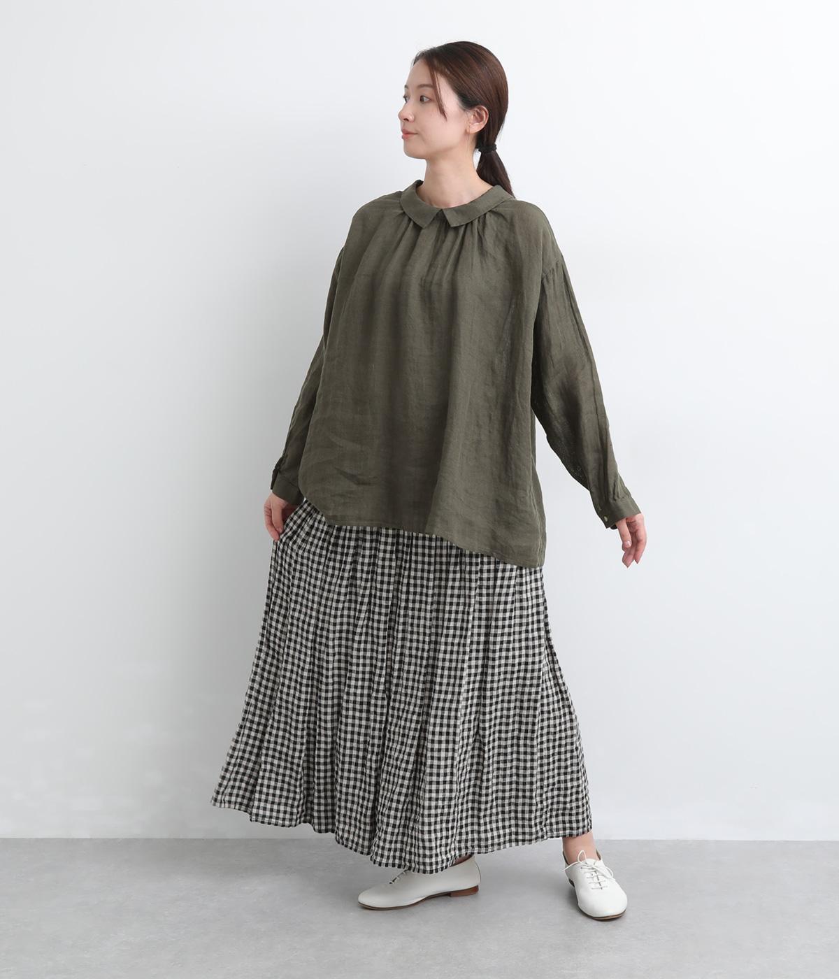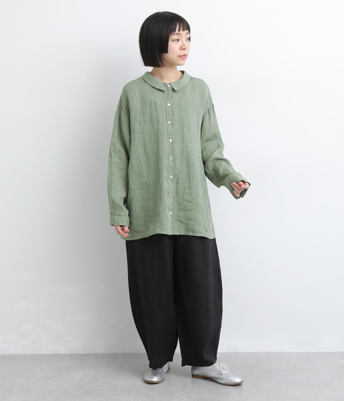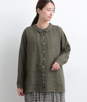 ゆったりとしたオーバーサイズが独特のこなれ感を生む襟つきブラウス。前後どちらでもたのしめる2way仕様で、羽織りにしたりと着こなしの幅も広がります。袖口は細めのカフスで適度にすっきりと。