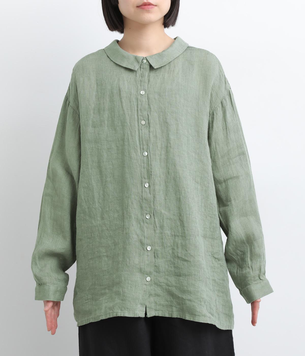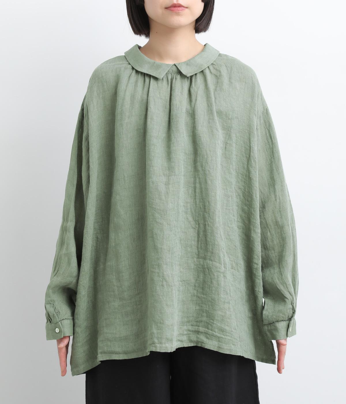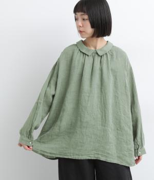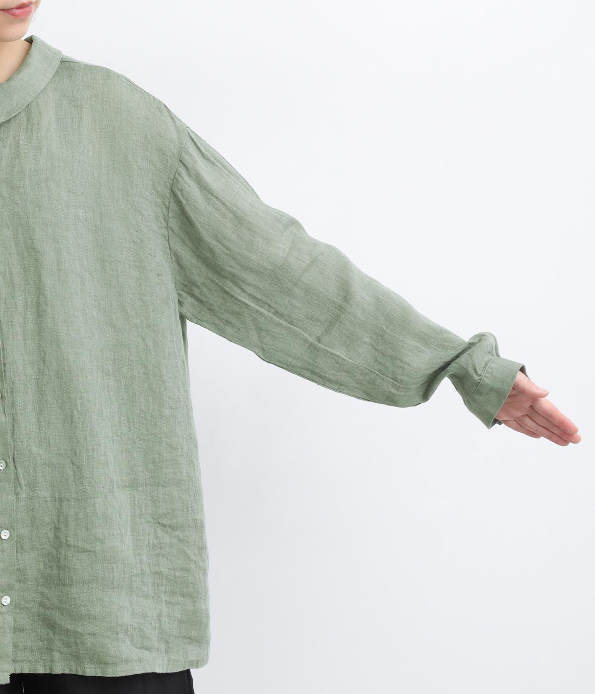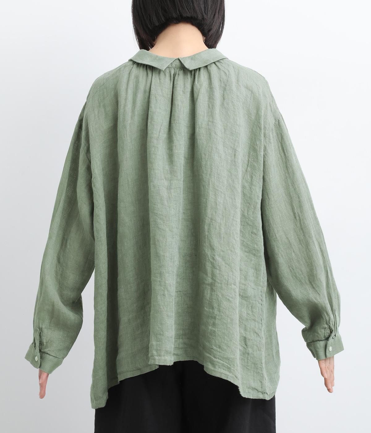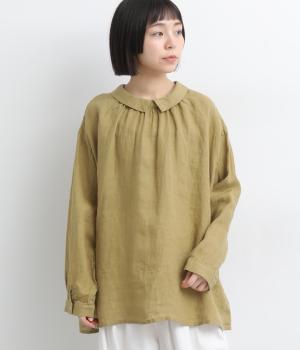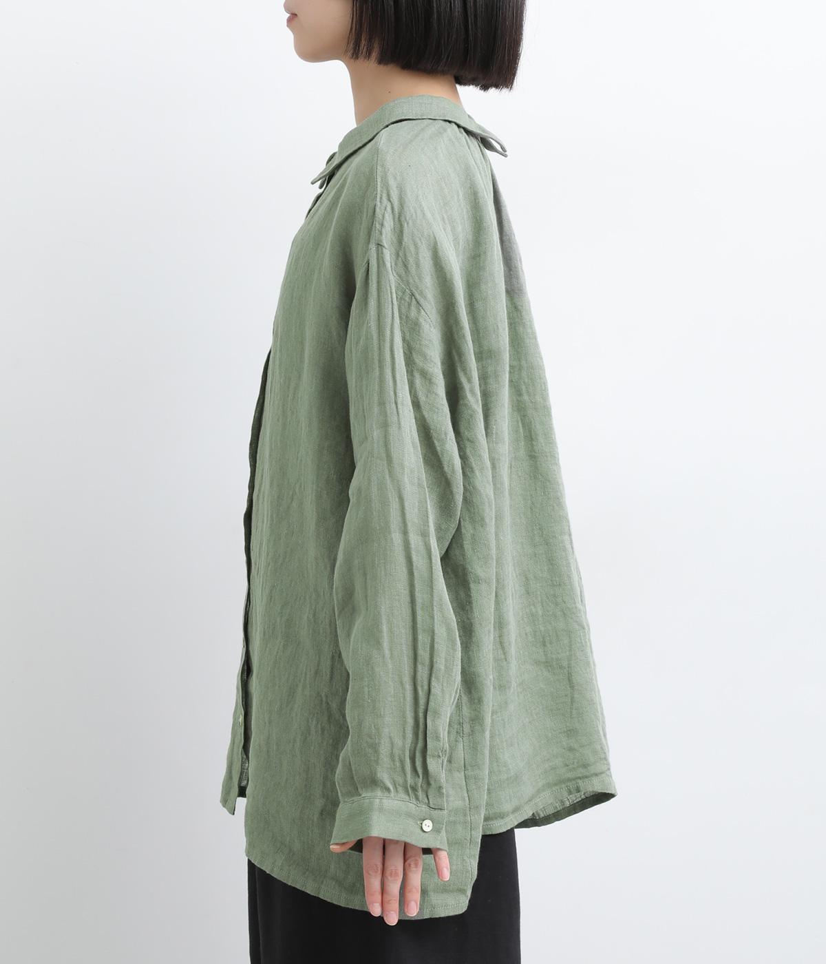 ゆったりとしたオーバーサイズが独特のこなれ感を生む襟つきブラウス。前後どちらでもたのしめる2way仕様で、羽織りにしたりと着こなしの幅も広がります。袖口は細めのカフスで適度にすっきりと。