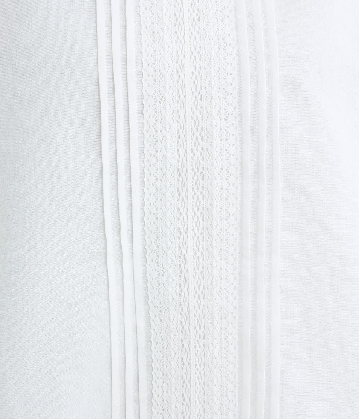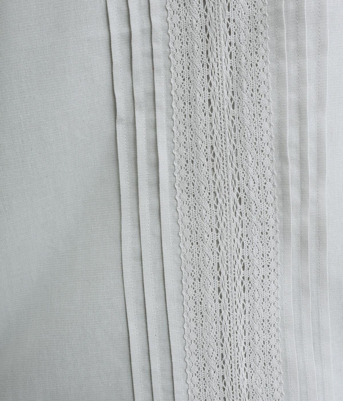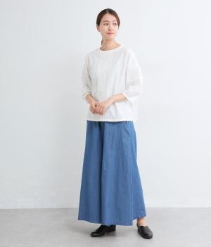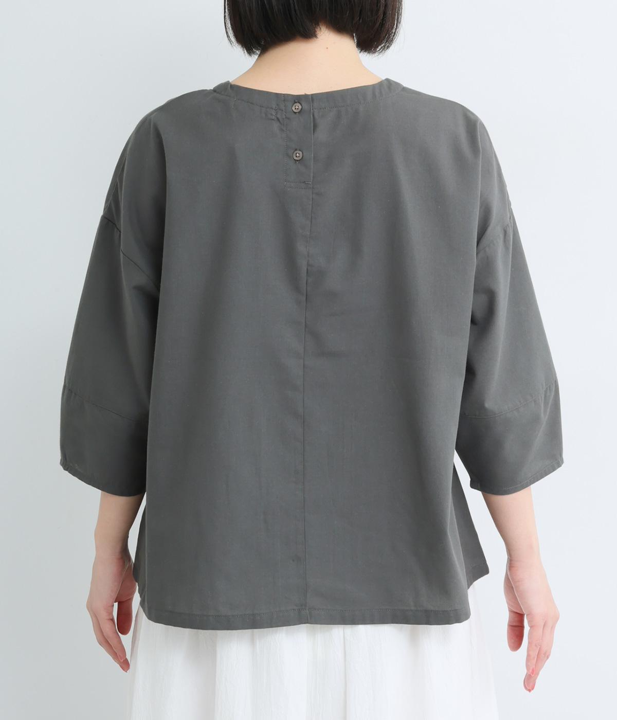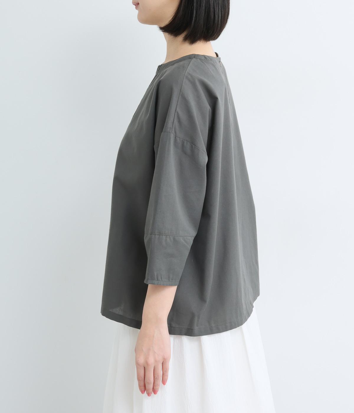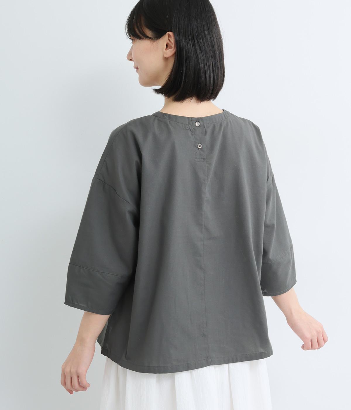 センターのピンタックや切り替えを入れたランタン袖が女性らしさを添える一枚。体のラインを拾いにくいゆったりめのボックスシルエットで着こなしやすく、パンツにもスカートにも合わせやすくなっています。