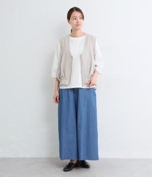 クリーンな印象ながらほのかに起毛したあたたかみのあるコットン混紡を使用。地合いがしっかりしていて丈夫で摩擦に強い平織り生地で、通気性がいいので心地よく着用できます。