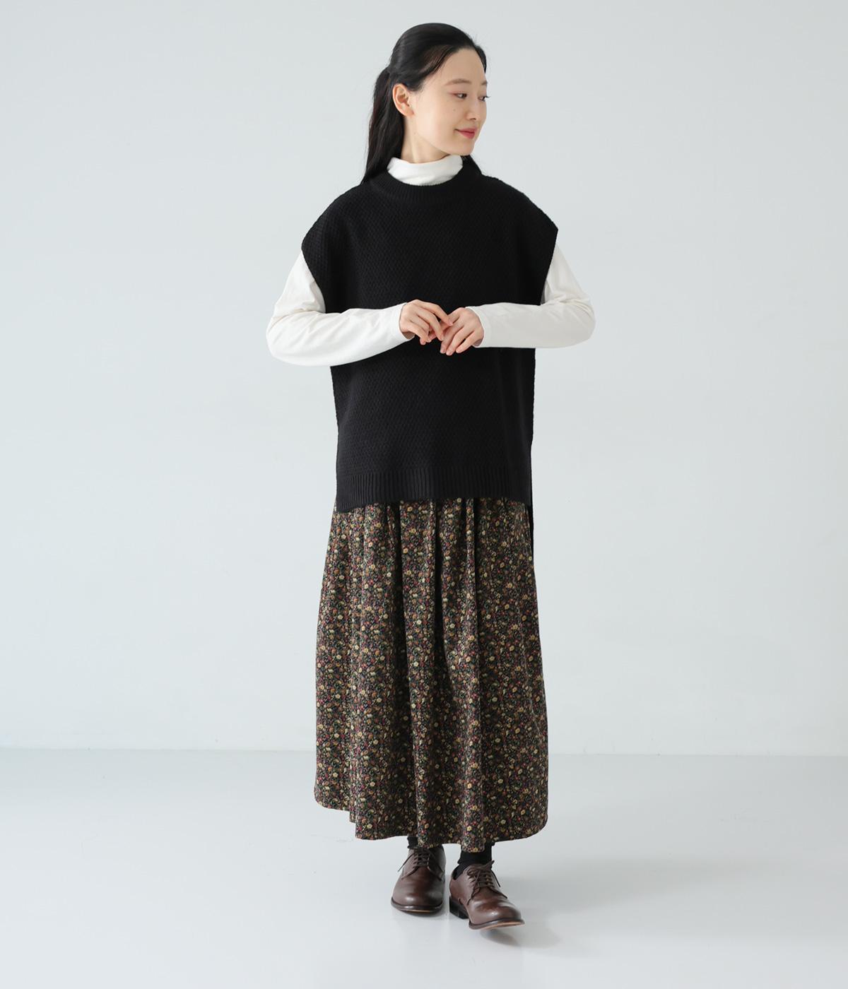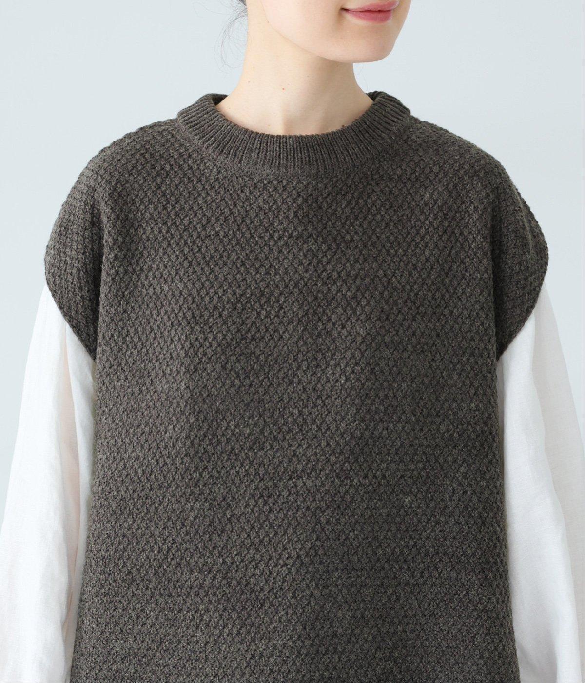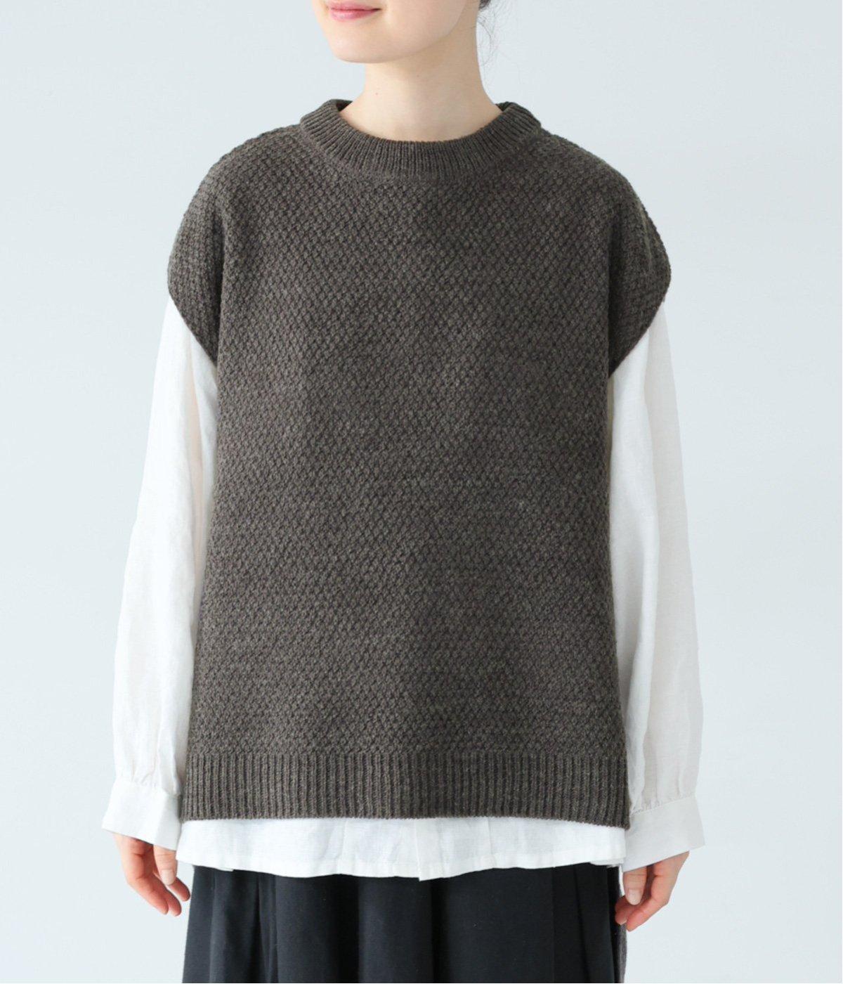 ふっくらとした編み地が体を包み込む、素朴であたたかなベスト。シャツやワンピースの上から重ねるだけで、季節のムードがぐっと高まるアイテムです。