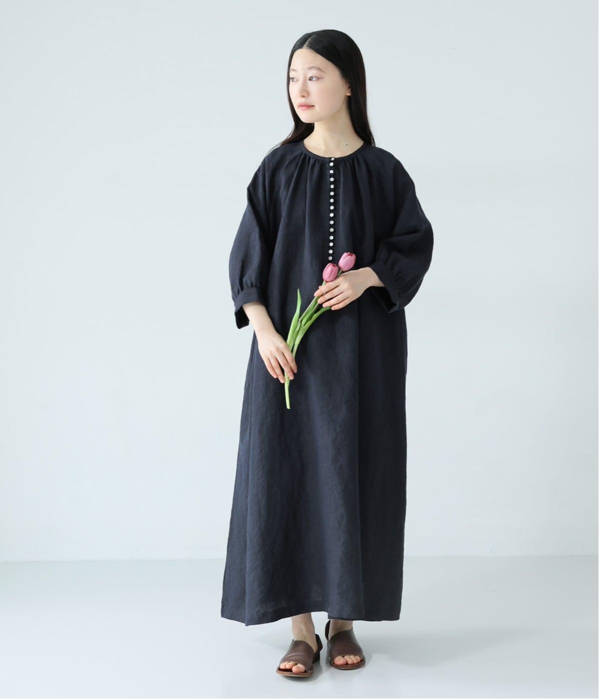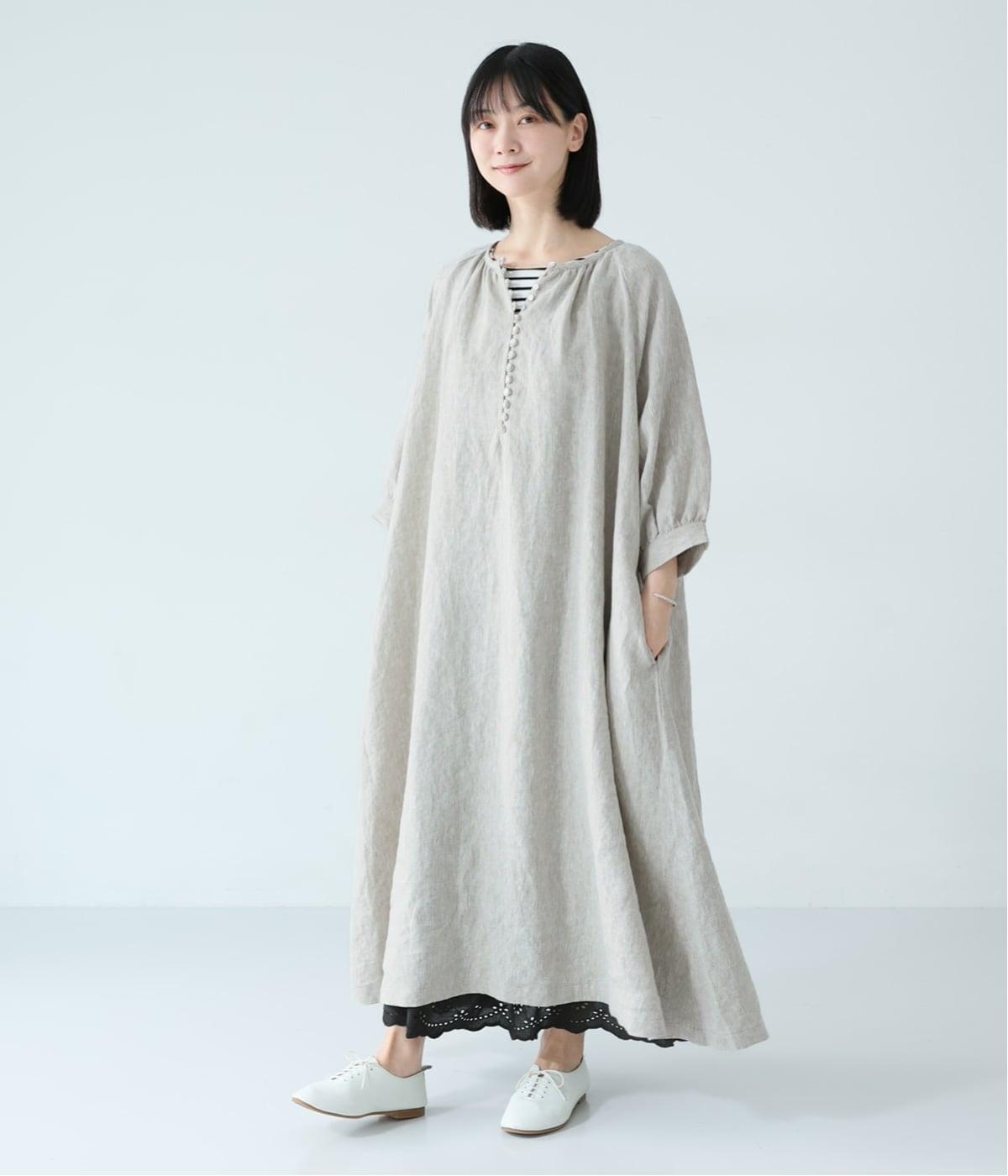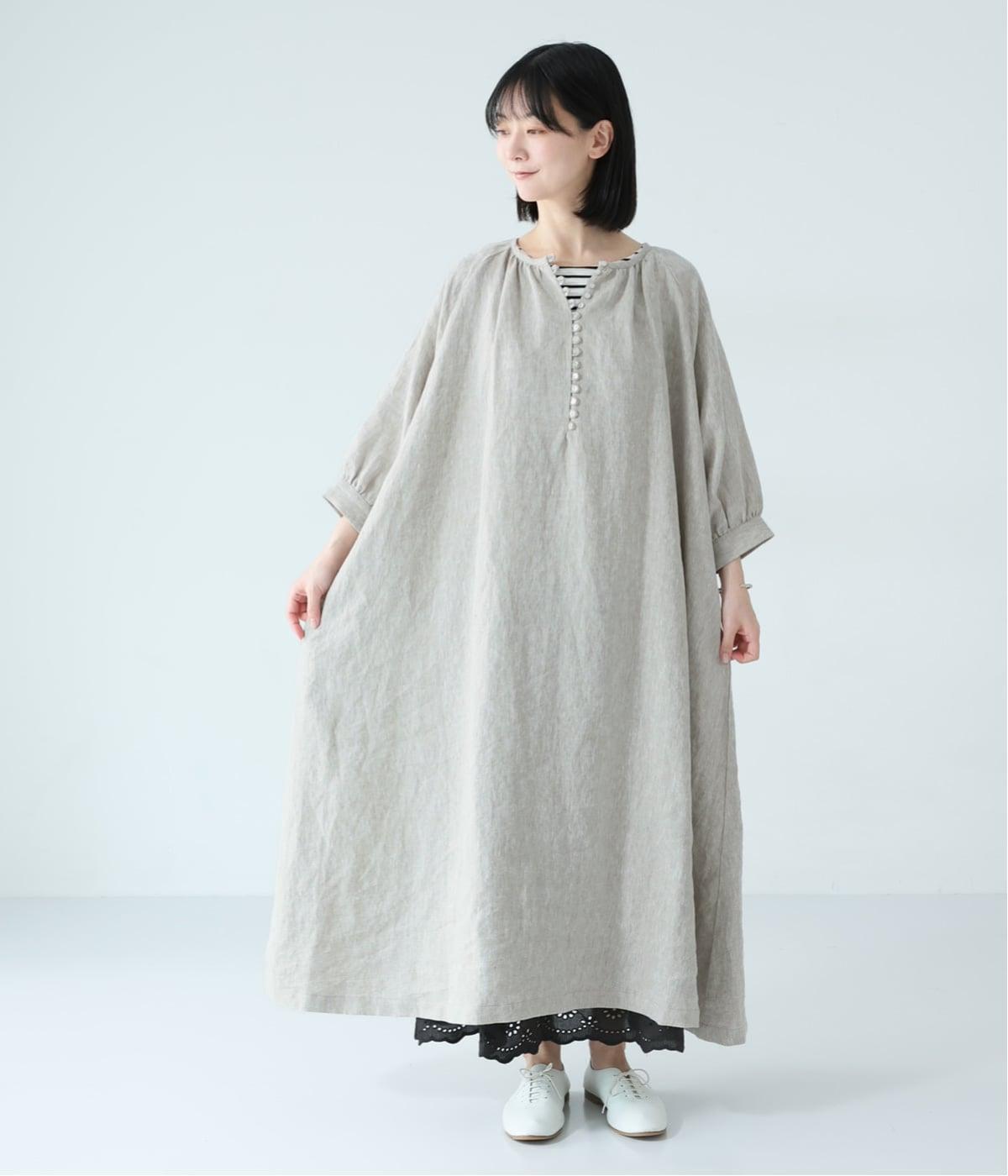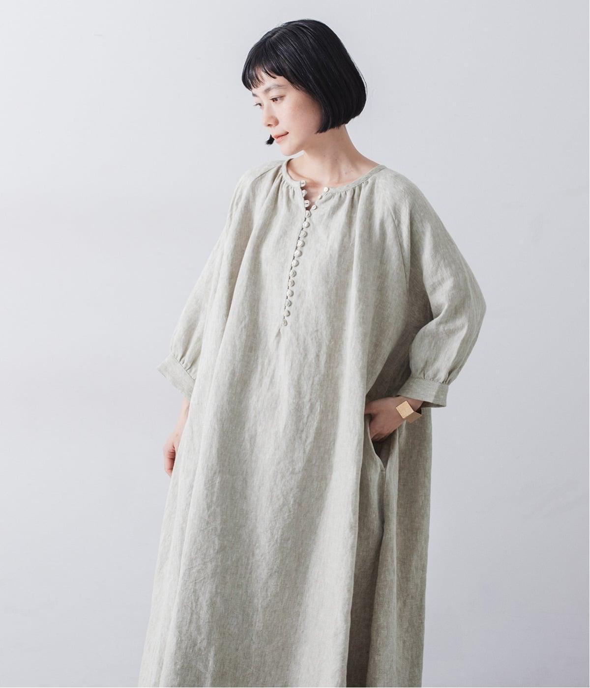 涼やかな着心地のリネンで仕立てた、多ボタンデザインが目を引くワンピース。生地を贅沢に使ったゆとりのあるシルエットで、肩の力を抜いた、自然体の着こなしが楽しめます。