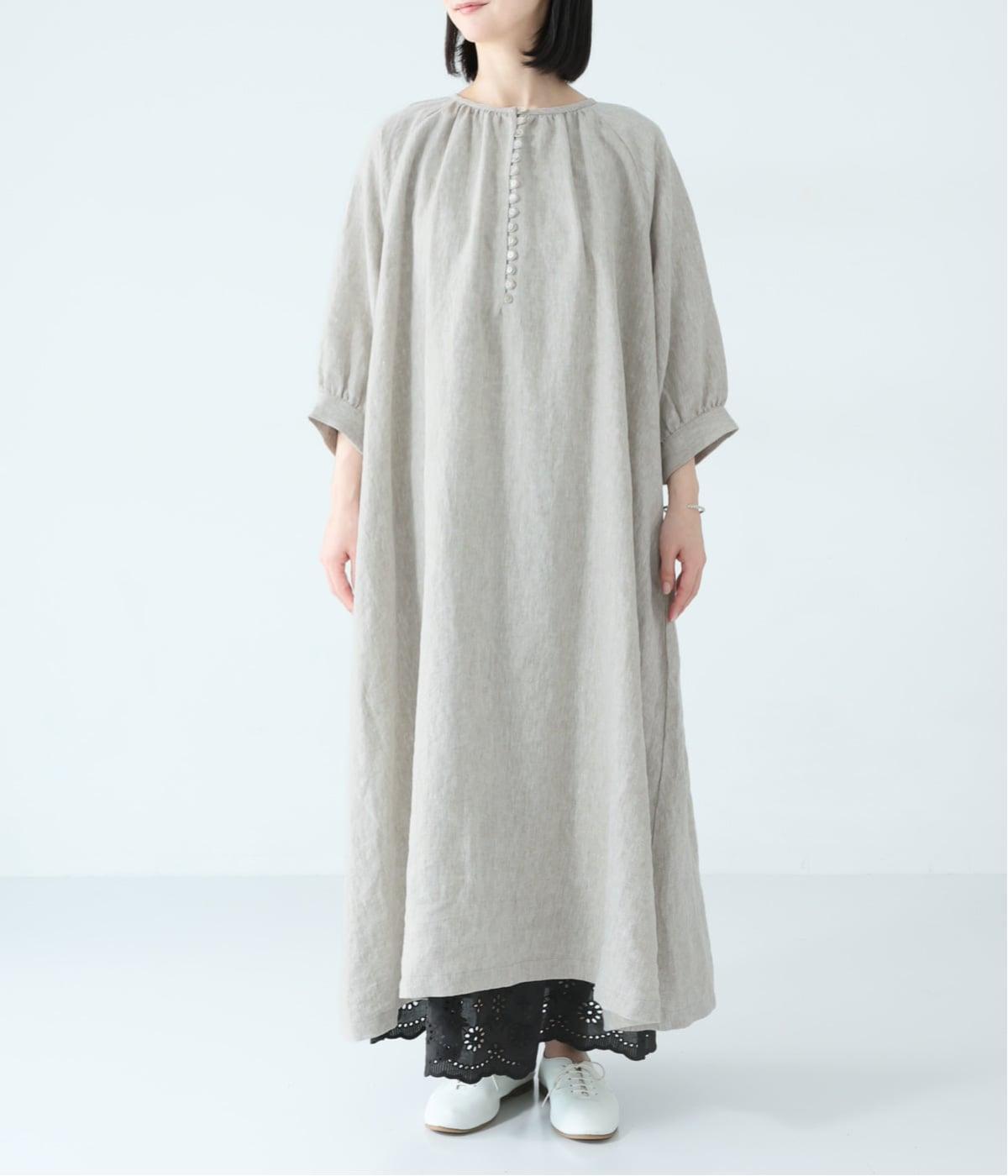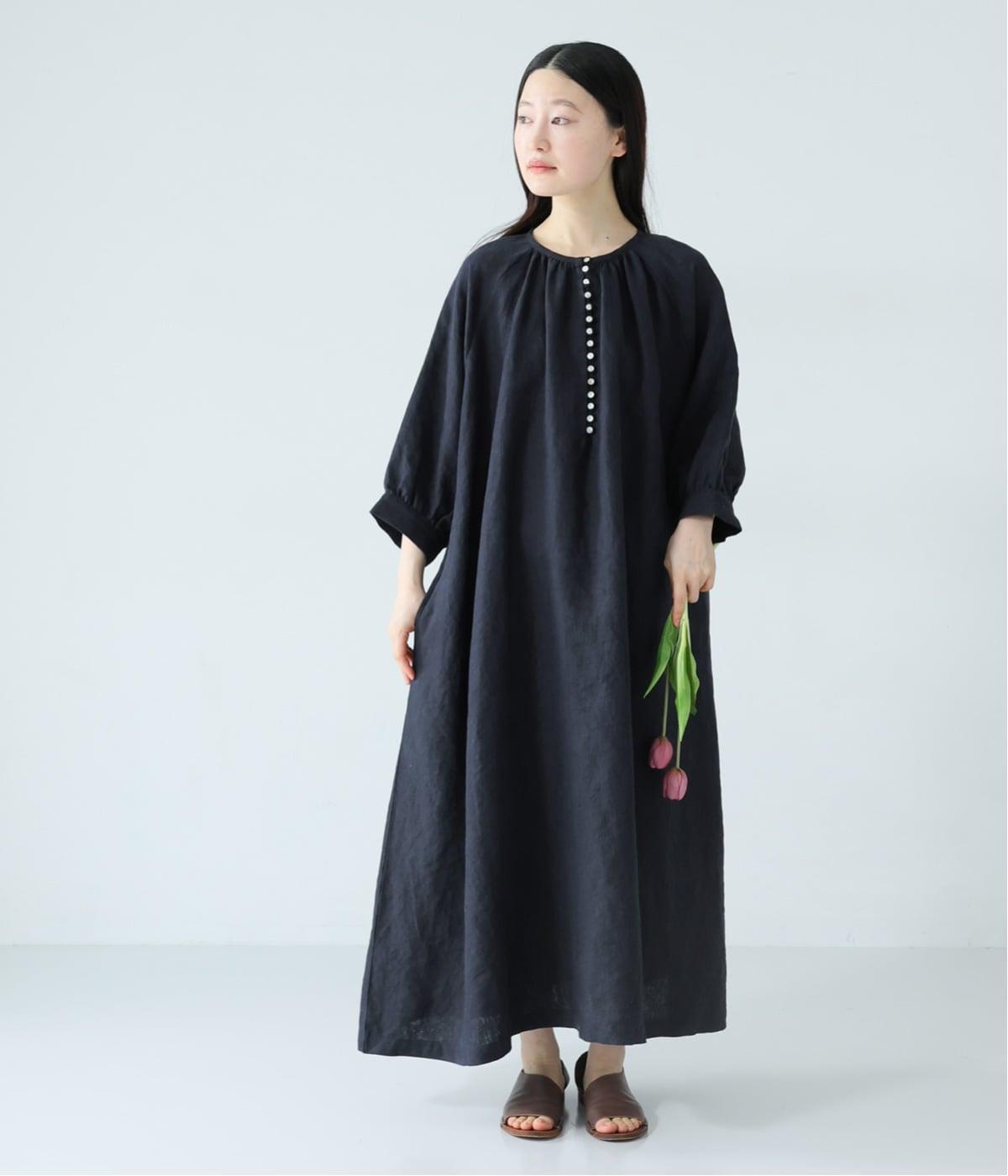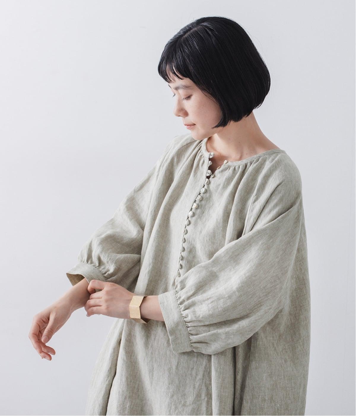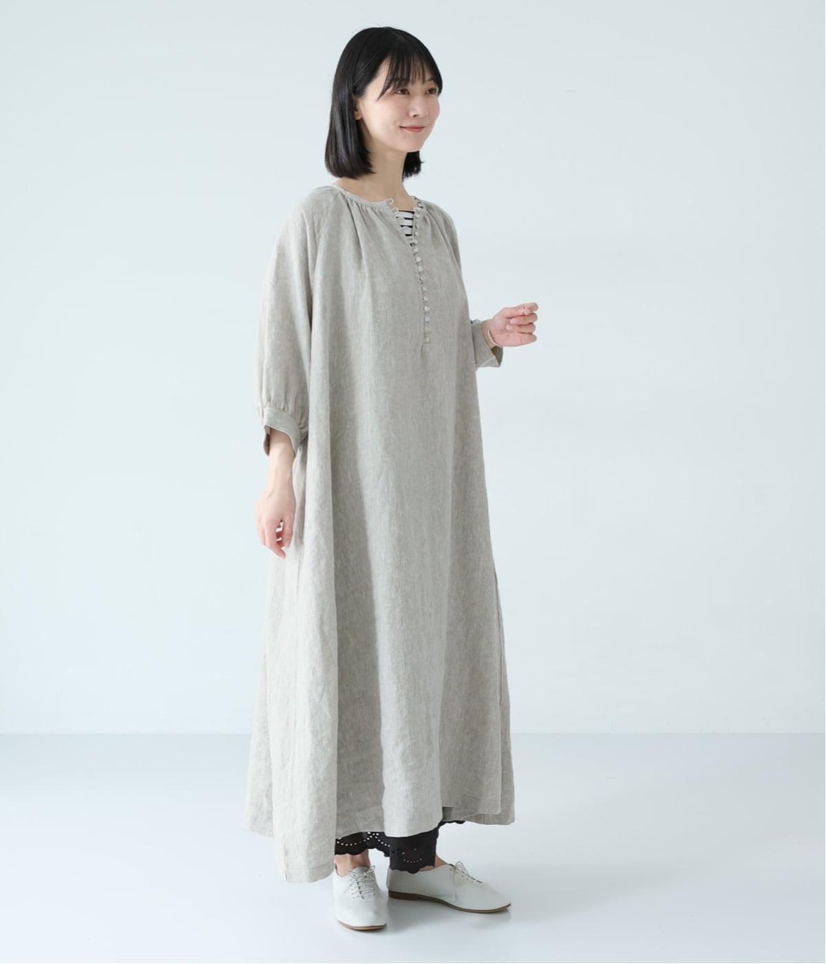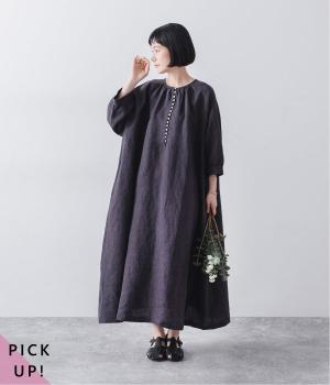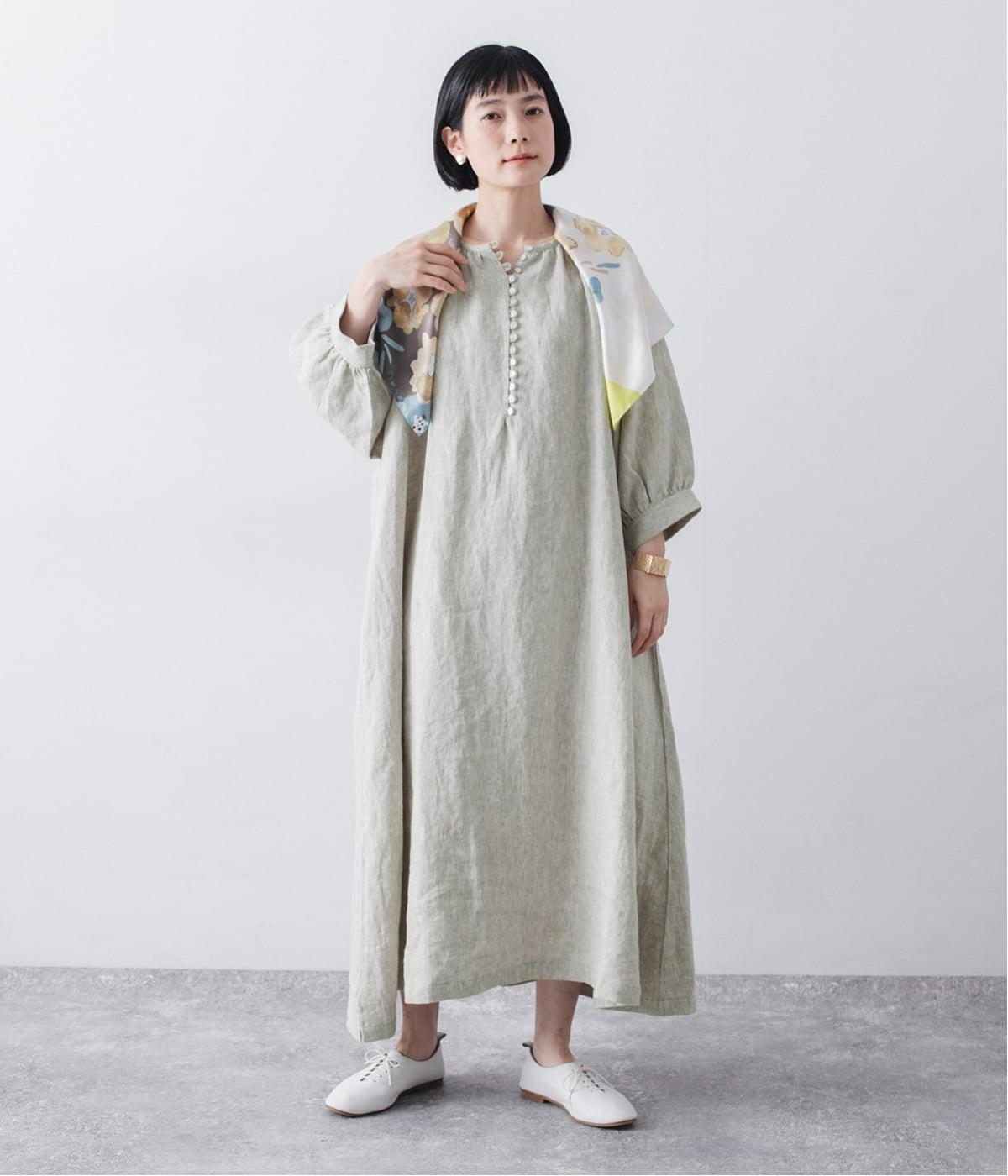 涼やかな着心地のリネンで仕立てた、多ボタンデザインが目を引くワンピース。生地を贅沢に使ったゆとりのあるシルエットで、肩の力を抜いた、自然体の着こなしが楽しめます。