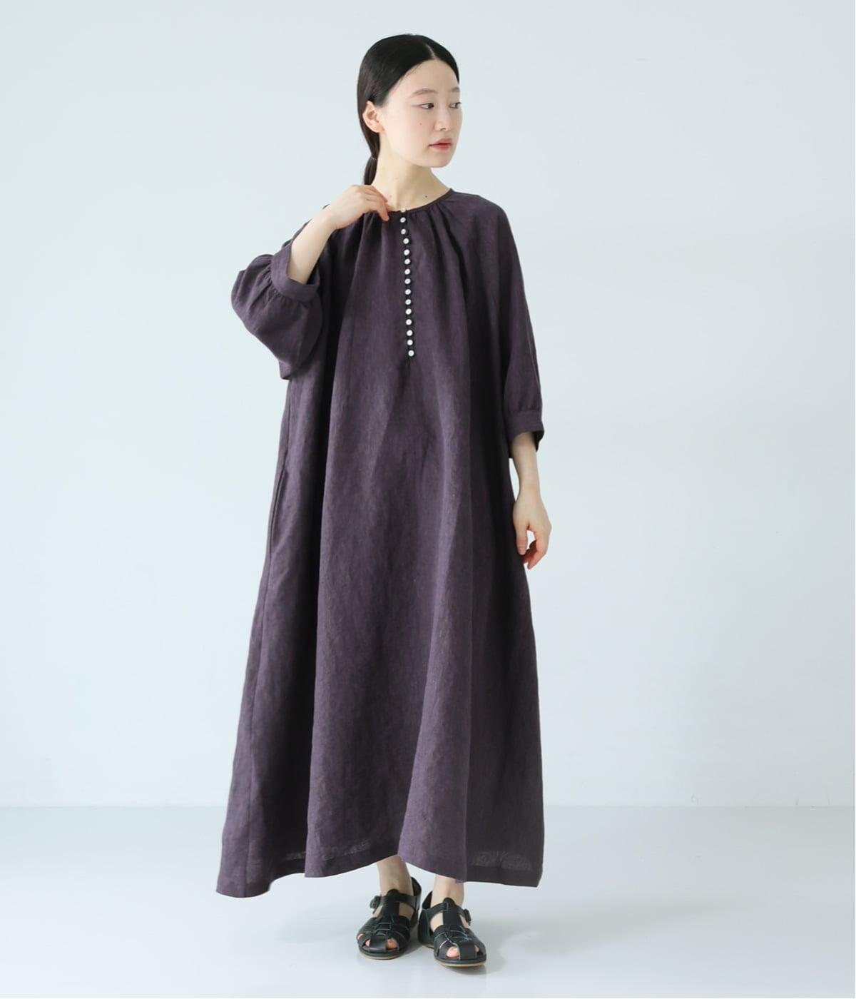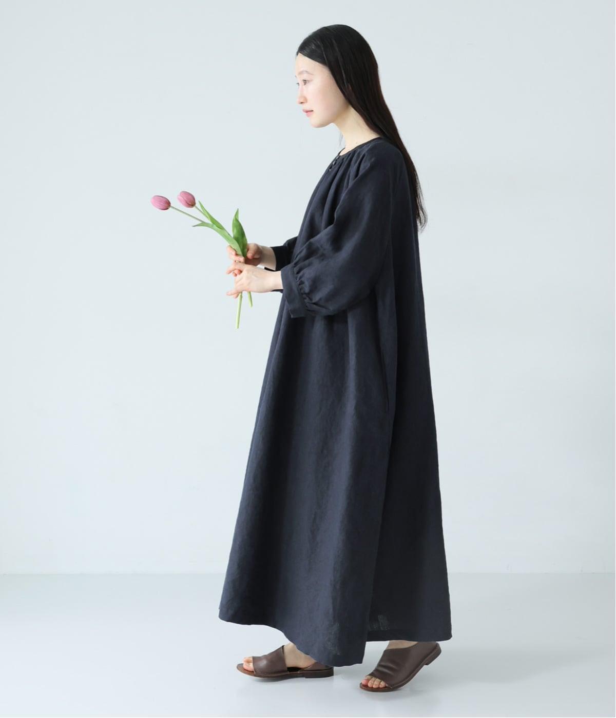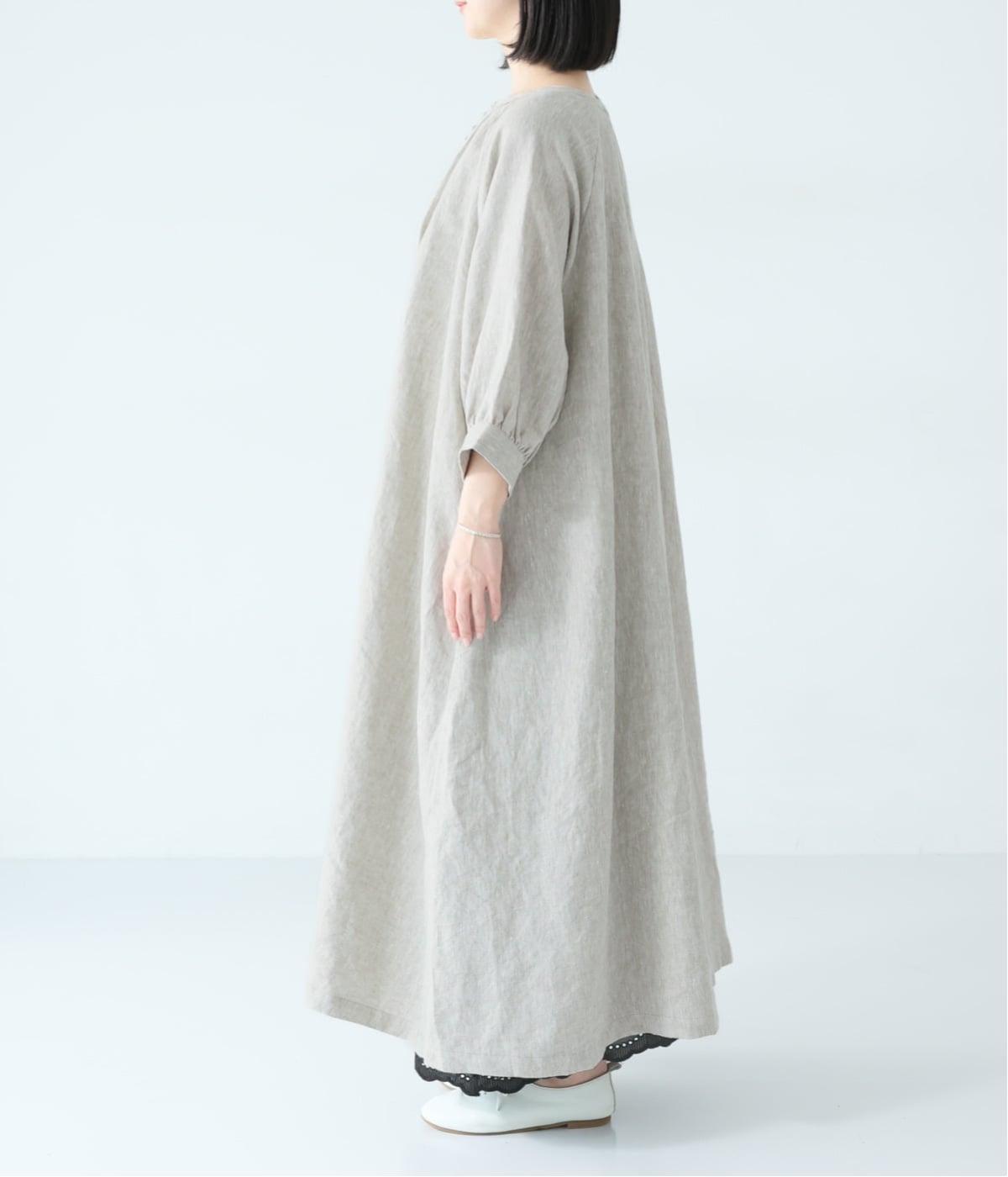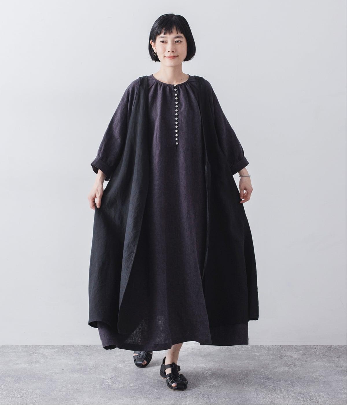 涼やかな着心地のリネンで仕立てた、多ボタンデザインが目を引くワンピース。生地を贅沢に使ったゆとりのあるシルエットで、肩の力を抜いた、自然体の着こなしが楽しめます。
