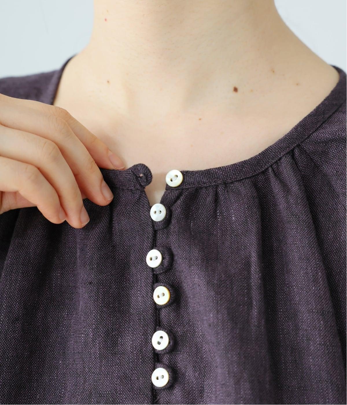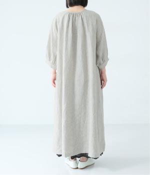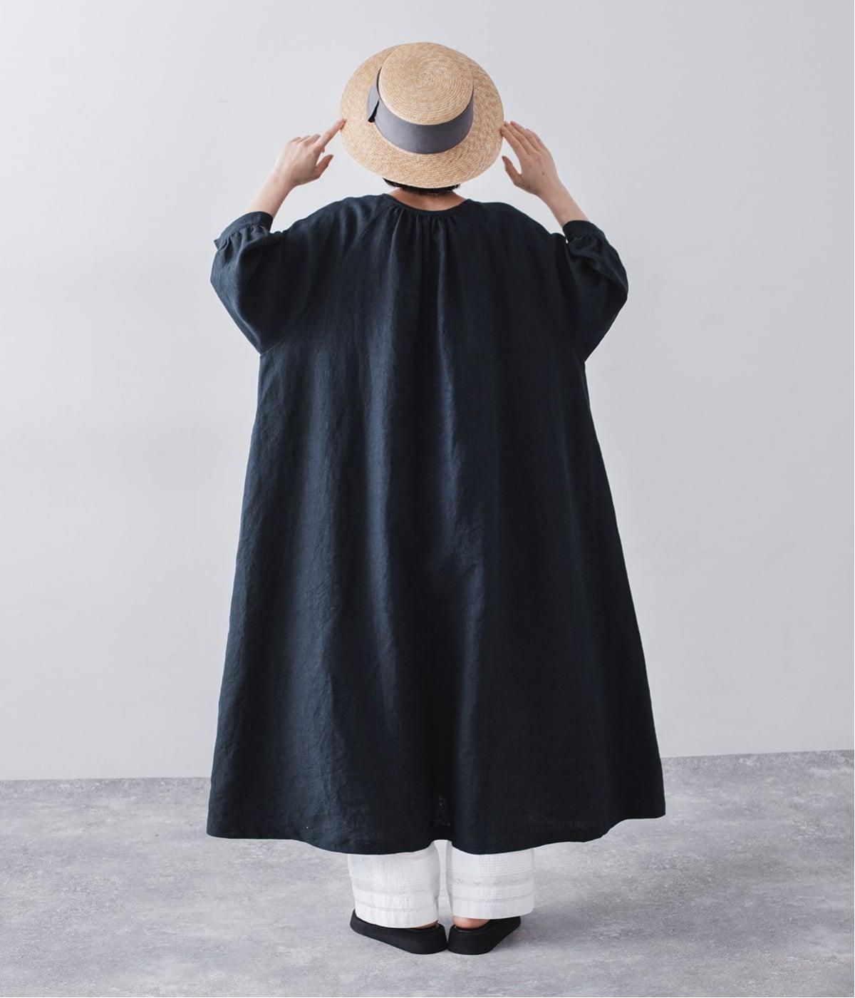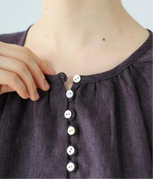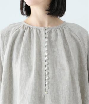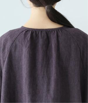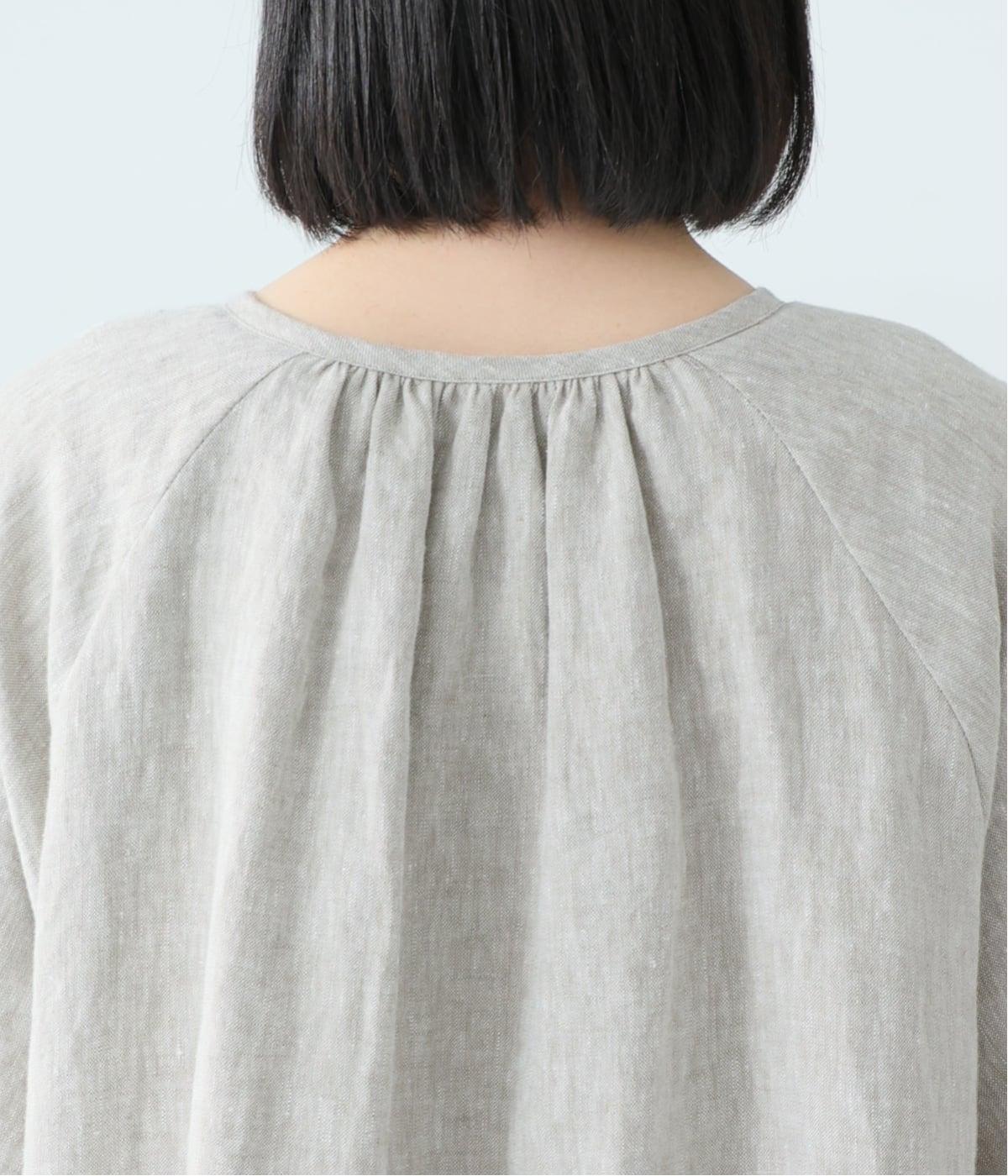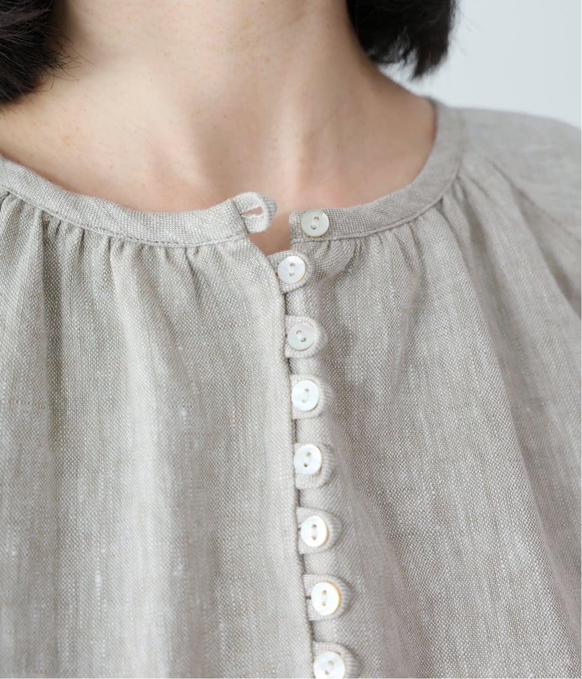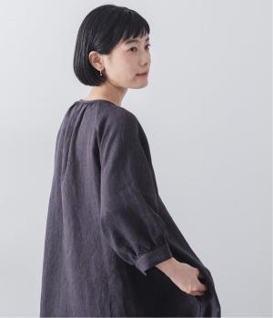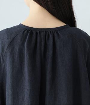 落ち感のあるリネン生地で、ゆとりがありながらもすっきりとした印象に。バックネックのギャザーが、後ろ姿にやさしい華やぎを添えます。