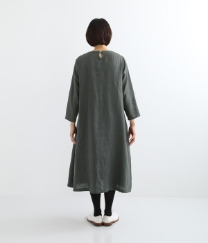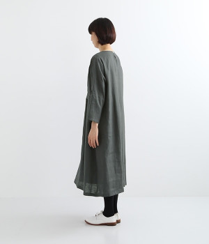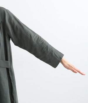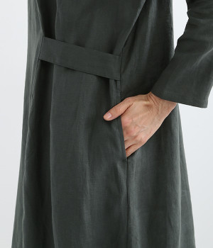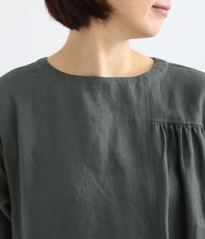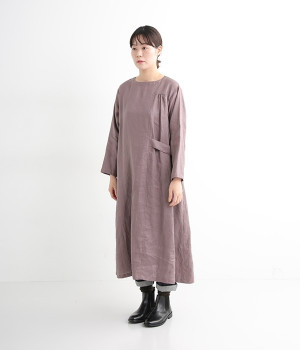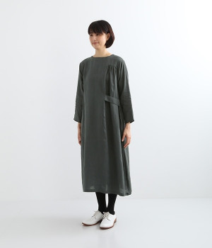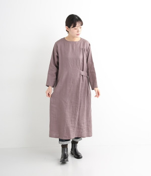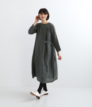 しなやかでやわらかい、上質なリネンで仕立てたワンピースです。アシンメトリーな切り替えギャザーと、ウエストのベルトデザインがアクセント。シンプルながらもニュアンスのあるコーディネートが完成するアイテムです。一枚でもサマになり、ハイネックのインナーやボトムをのぞかせたレイヤードスタイルにも重宝。通気性・吸湿性のある素材なので、季節の変わり目から長く活躍してくれます。