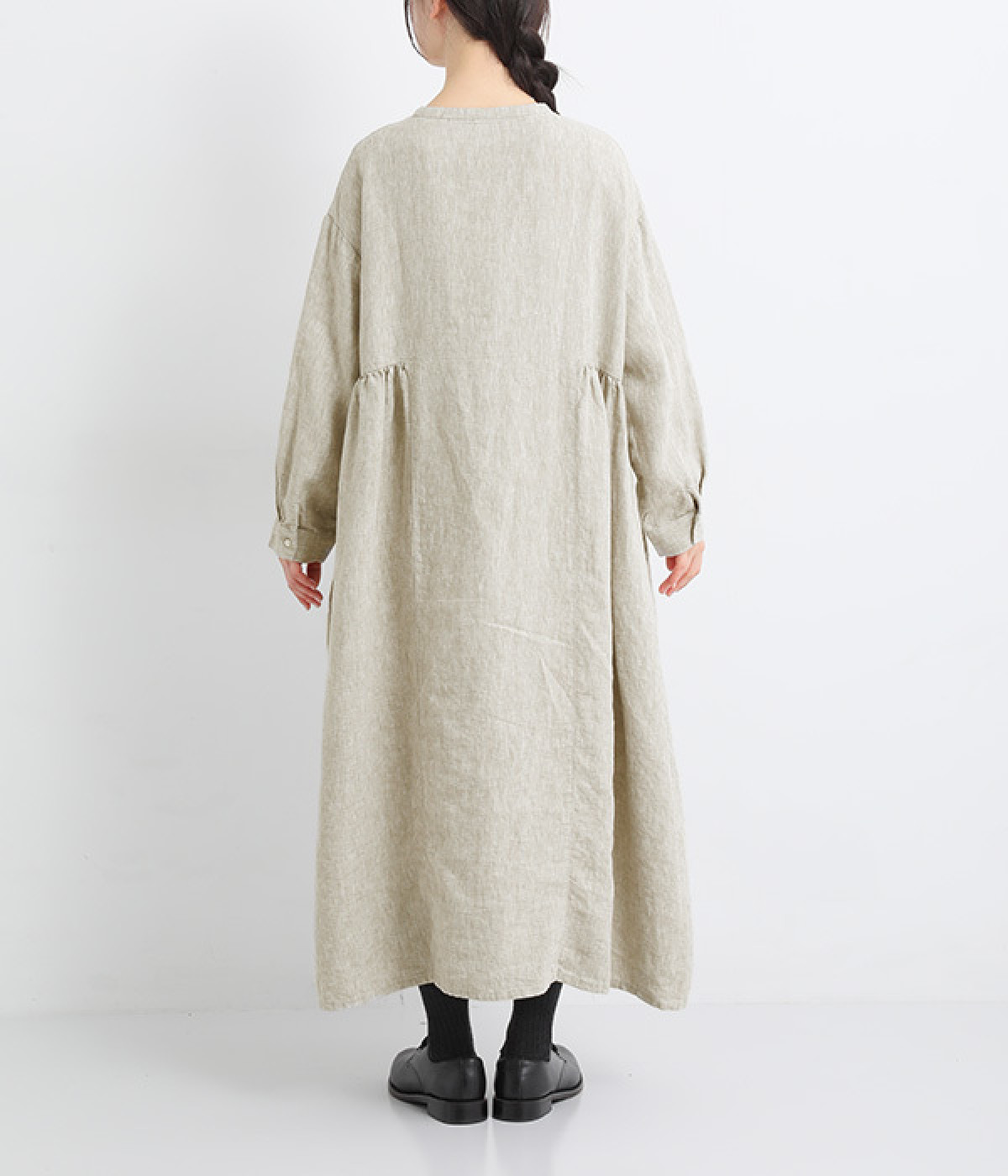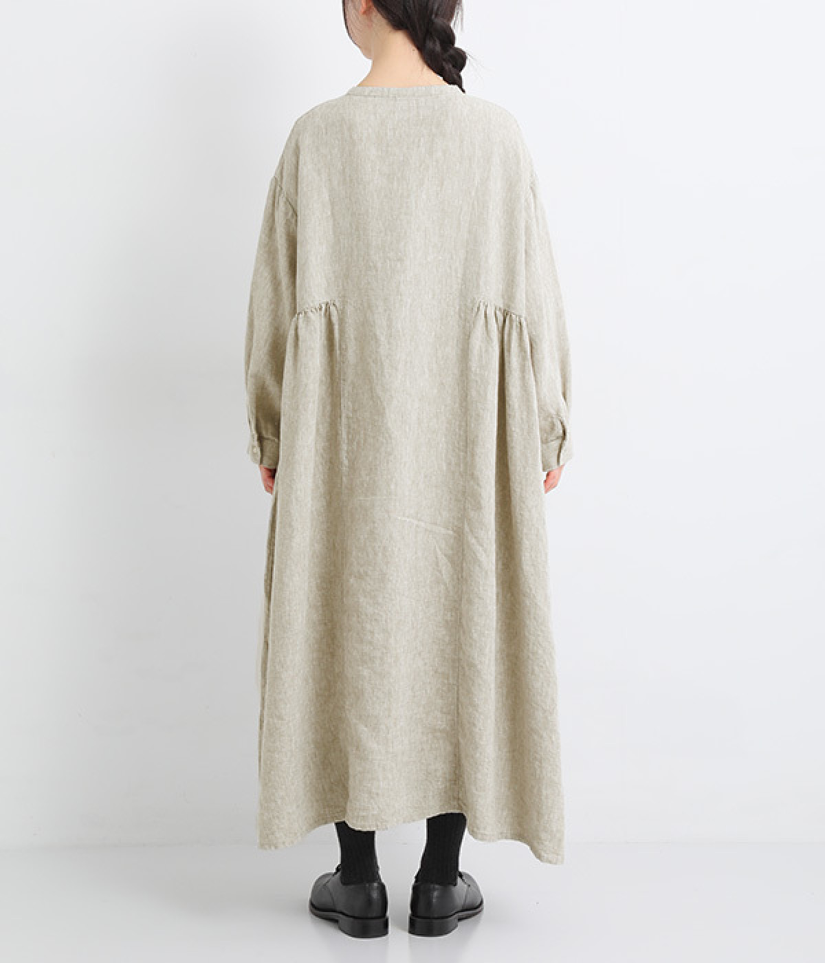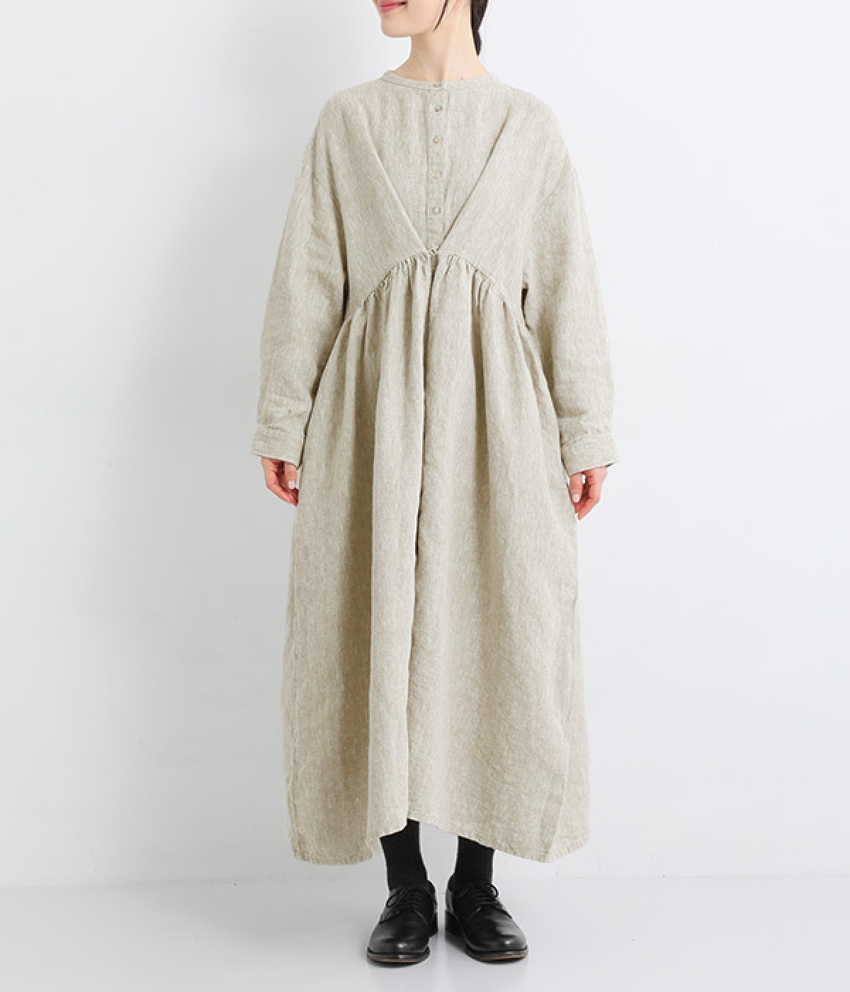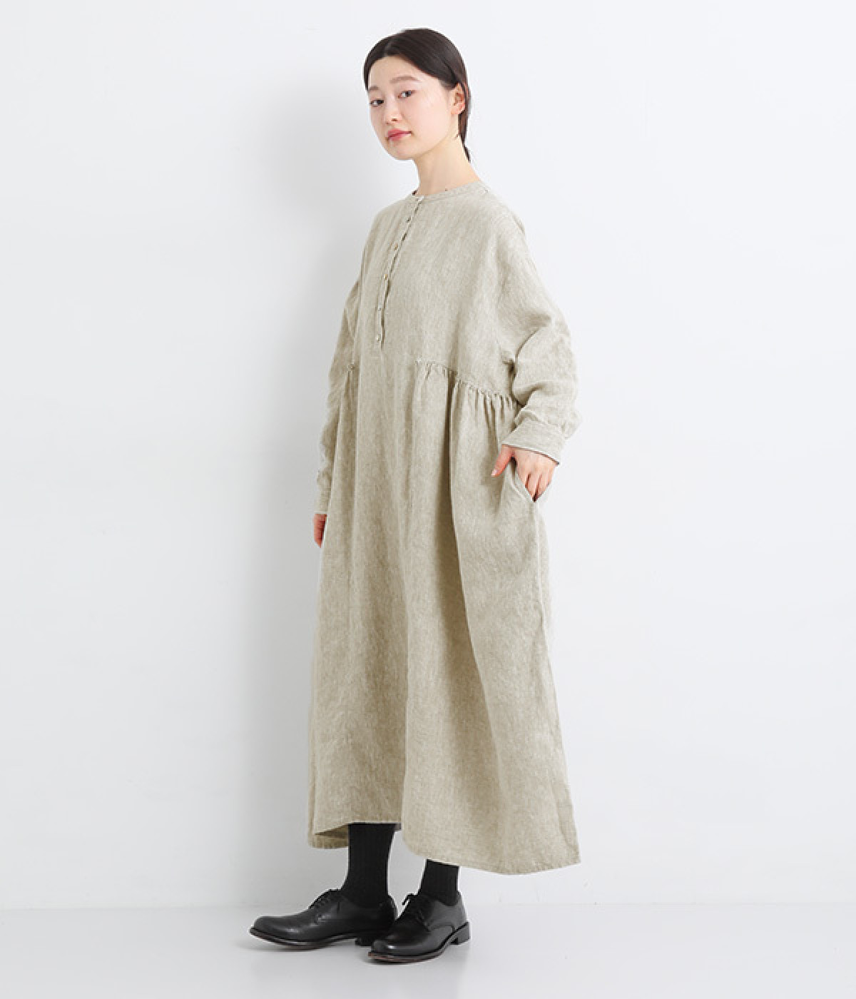 ウエスト脇のギャザーで分量をとった、ふんわり大きめのシルエットは着映え力抜群。腰のボタンを留めると、Vネック風のラインが浮き出て雰囲気が様変わりします。フロントはボタンが途中までついたヘンリー開きで、インナーをのぞかせる着こなしをしても◎。