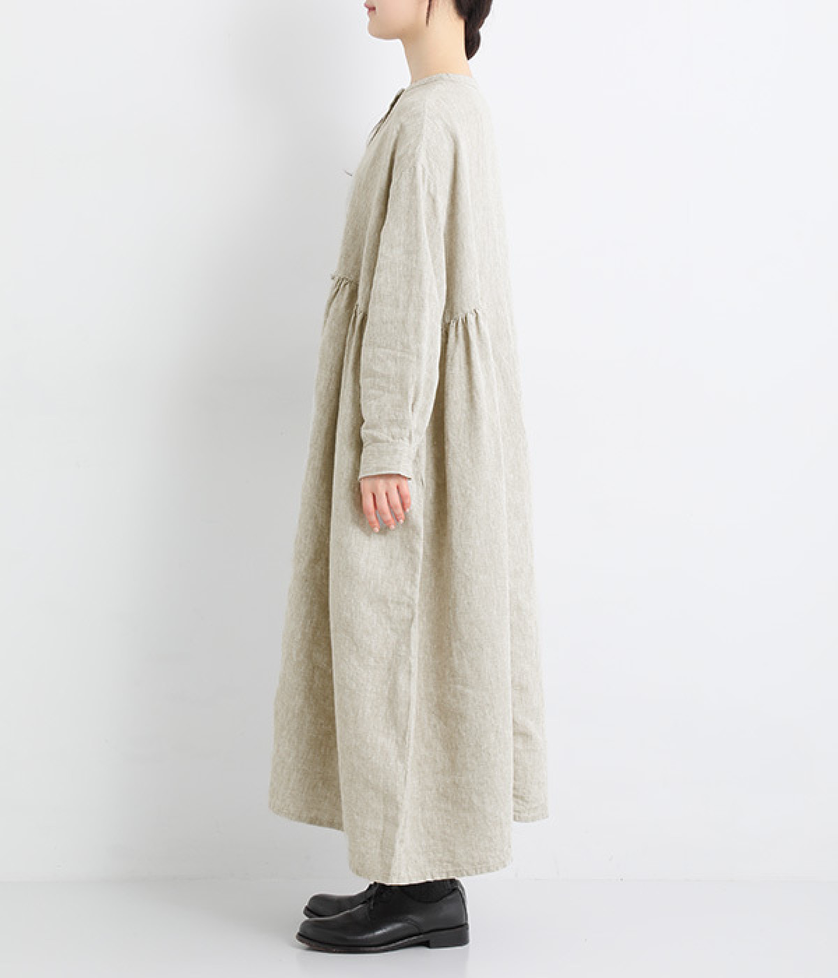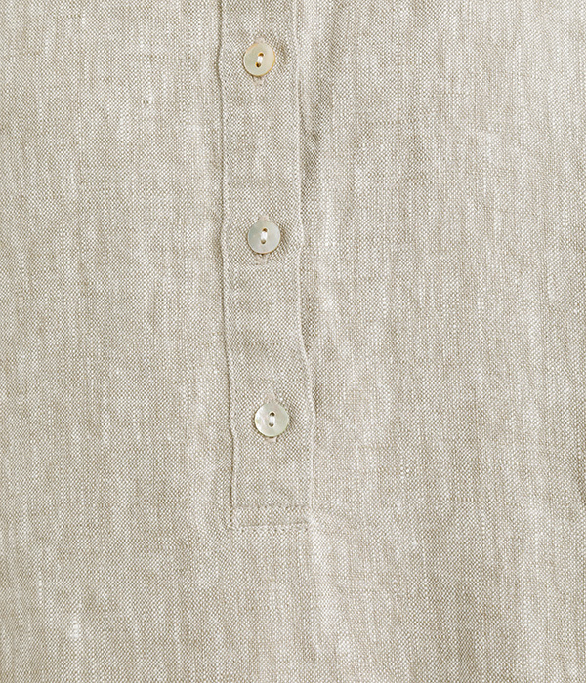 ほどよいシャリ感のあるリネンは、くったりと肌なじみの良い柔らかな仕上がり。自然に浮かぶ細かなシワも味わいを感じさせ、洗いざらしでサッと着られるのも魅力です。