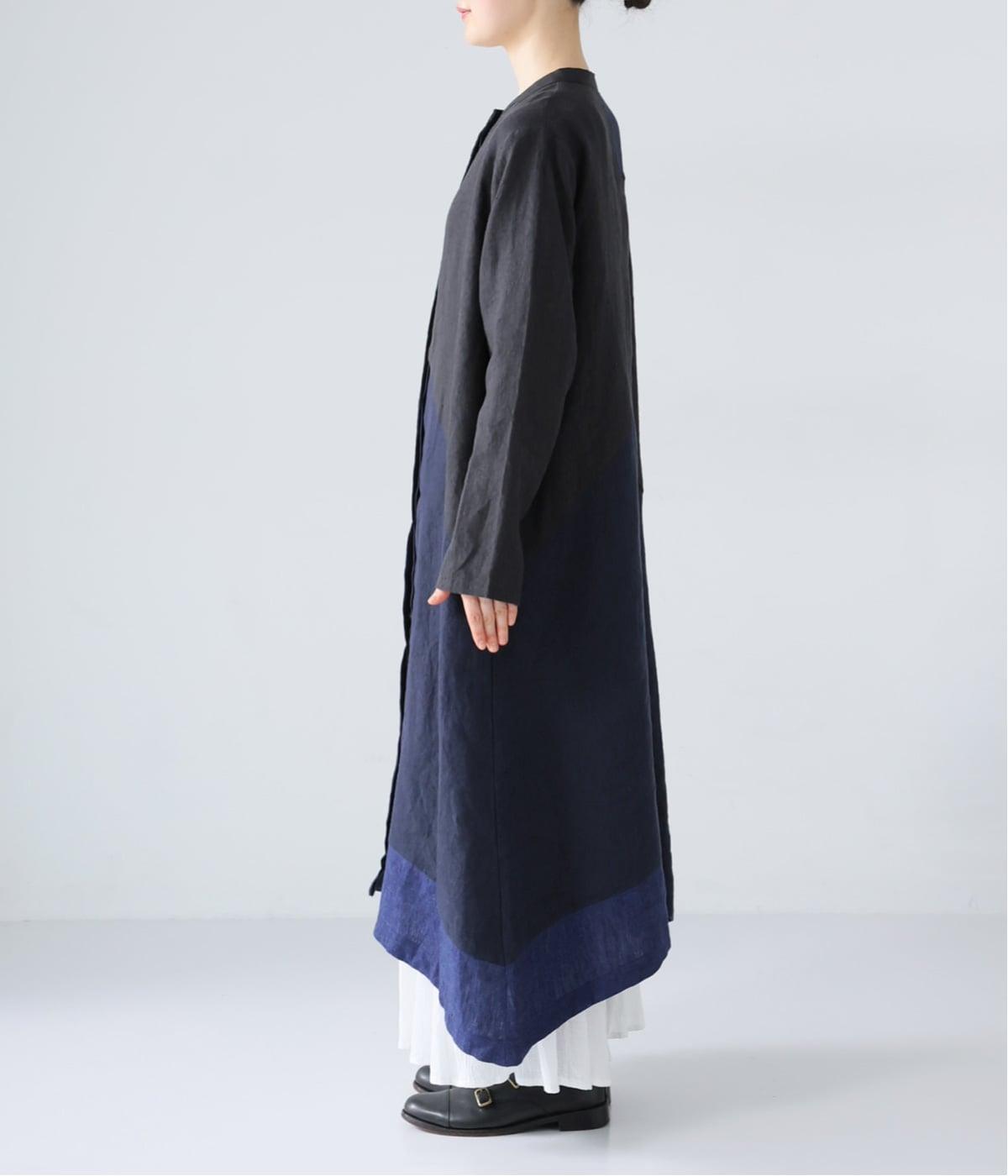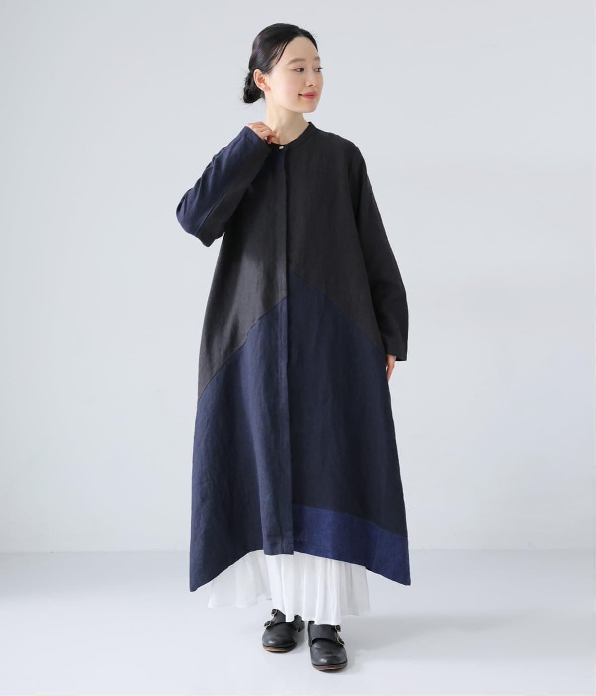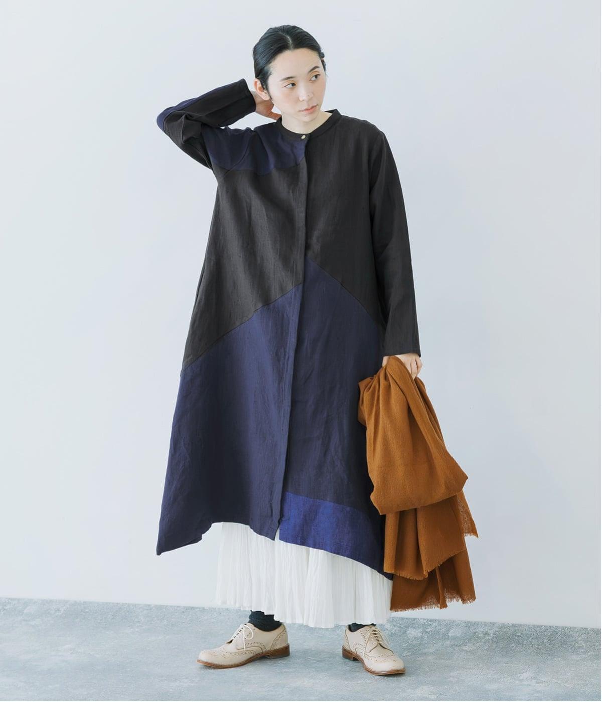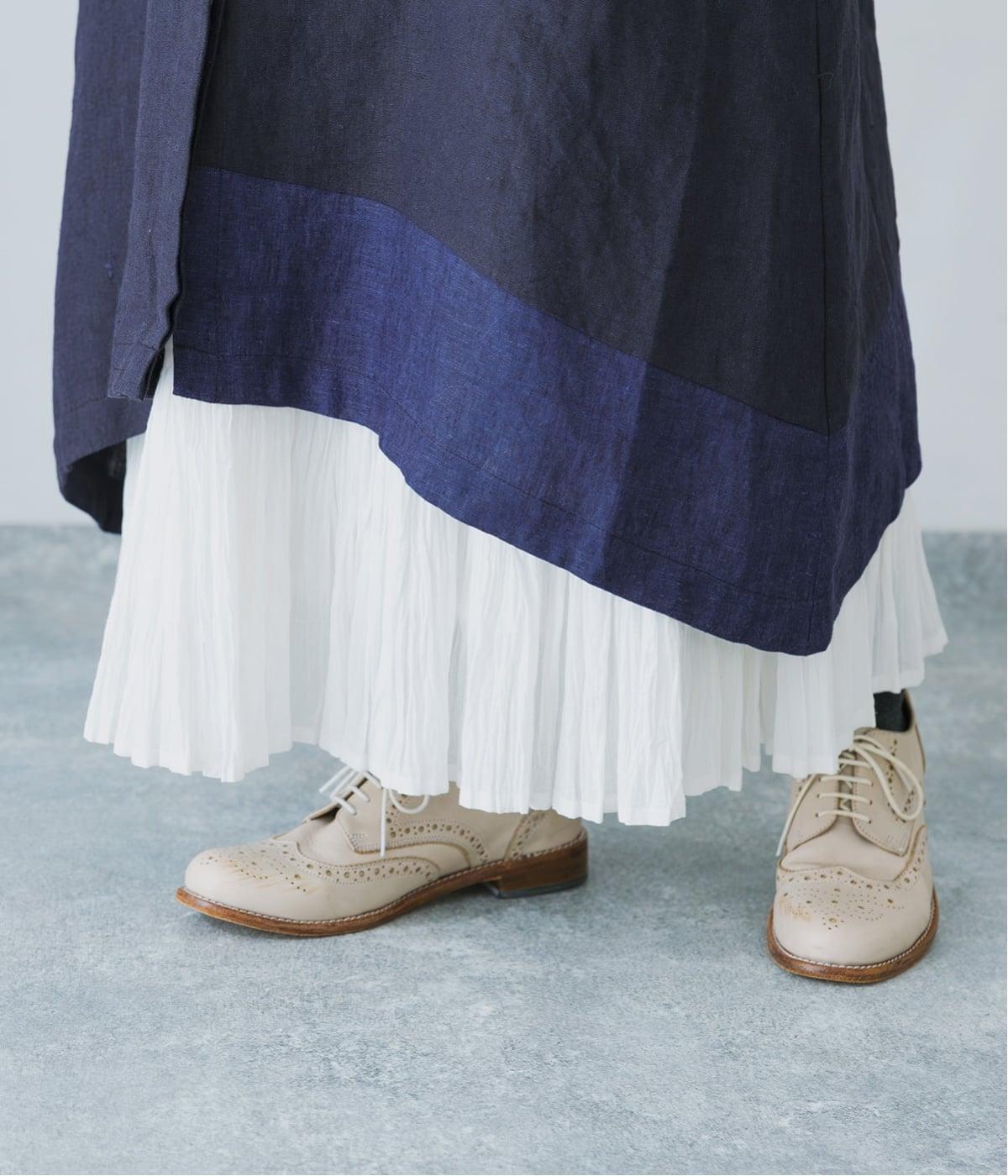 裾の片側に配したインディゴカラーが、動きのあるシルエットにさりげない彩りをプラス。
