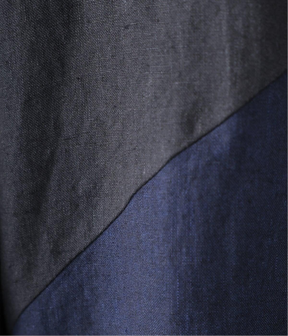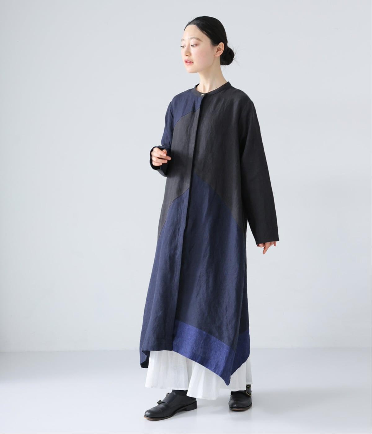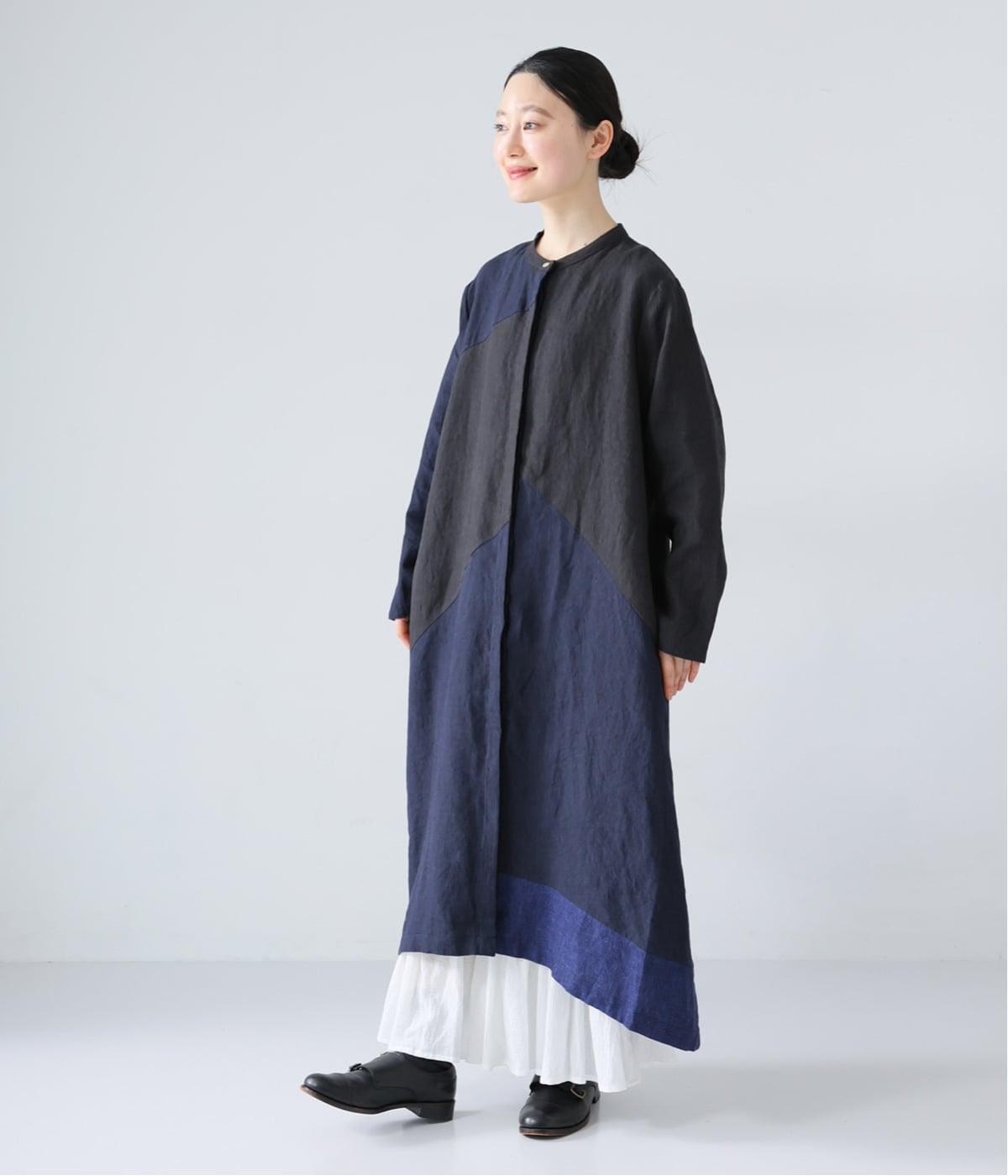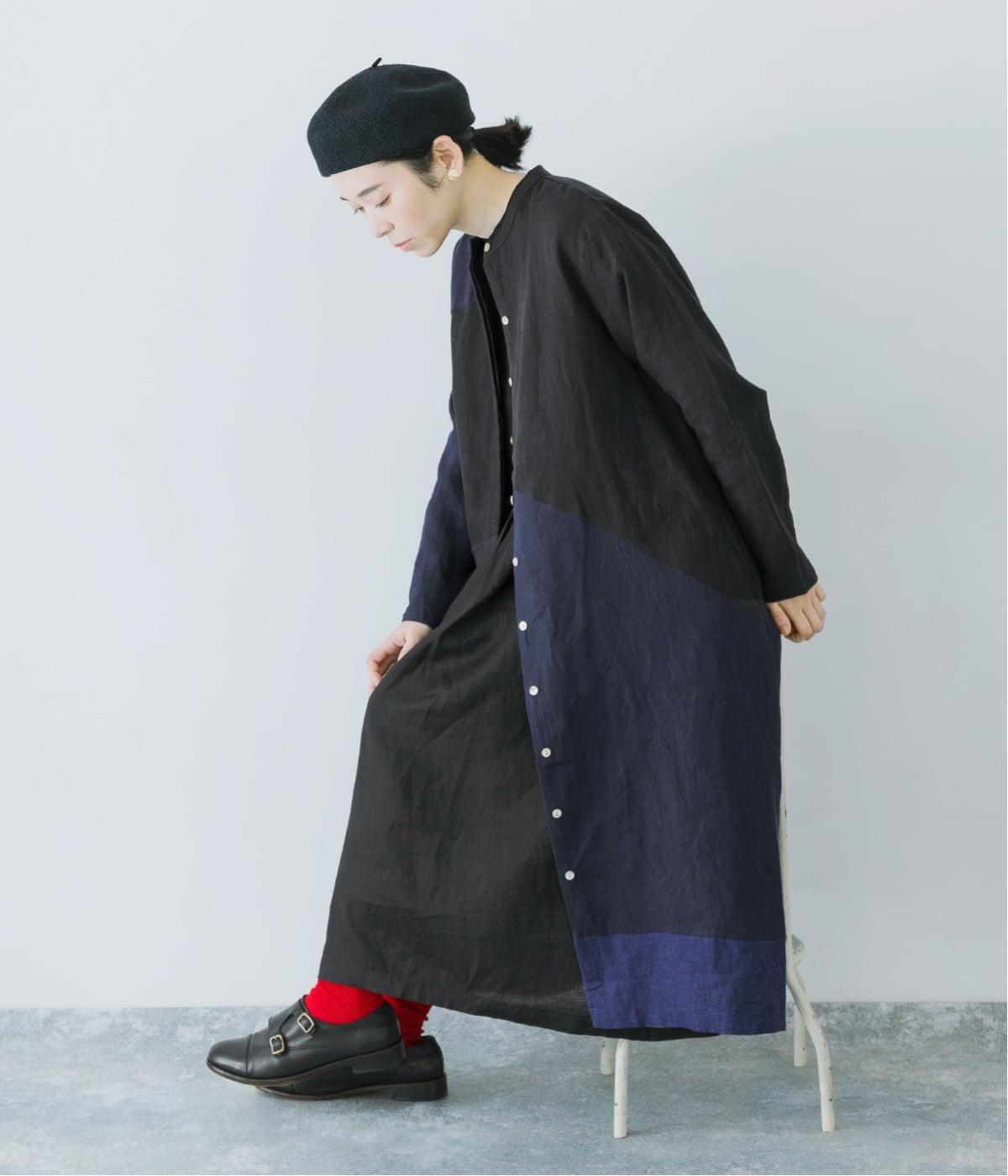 裾の片側に配したインディゴカラーが、動きのあるシルエットにさりげない彩りをプラス。