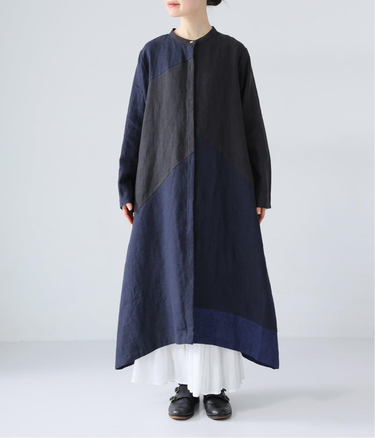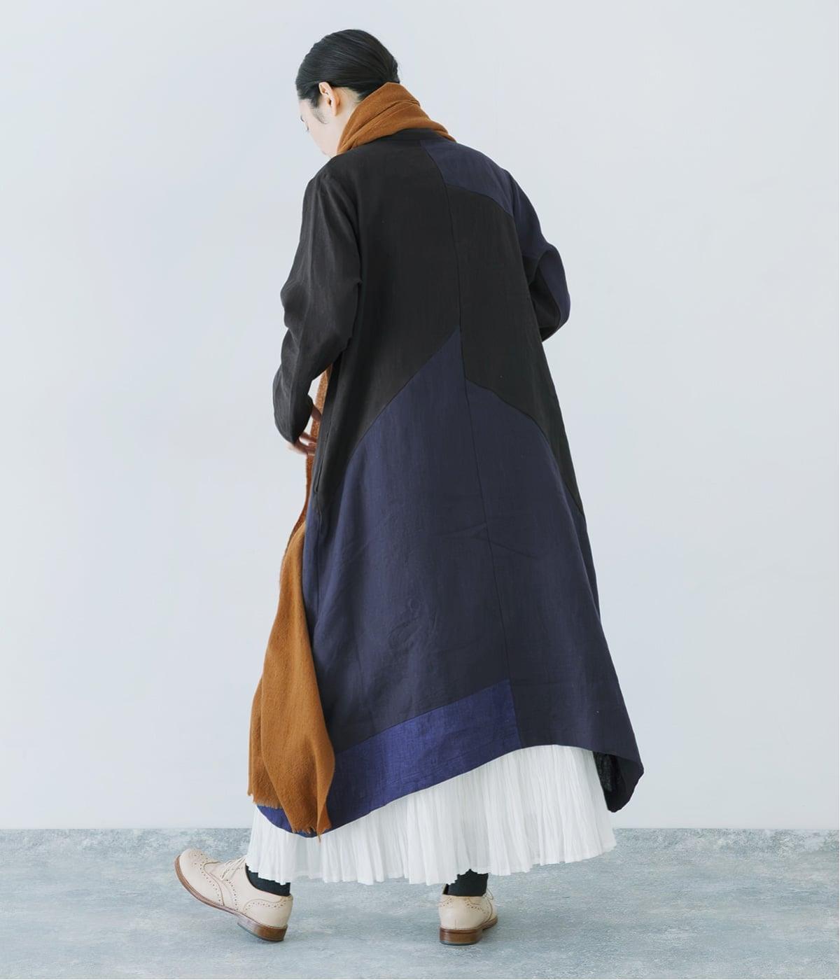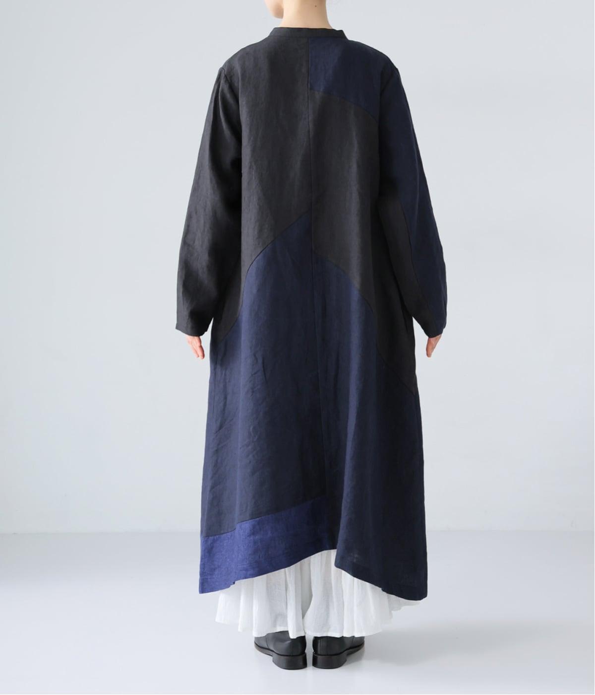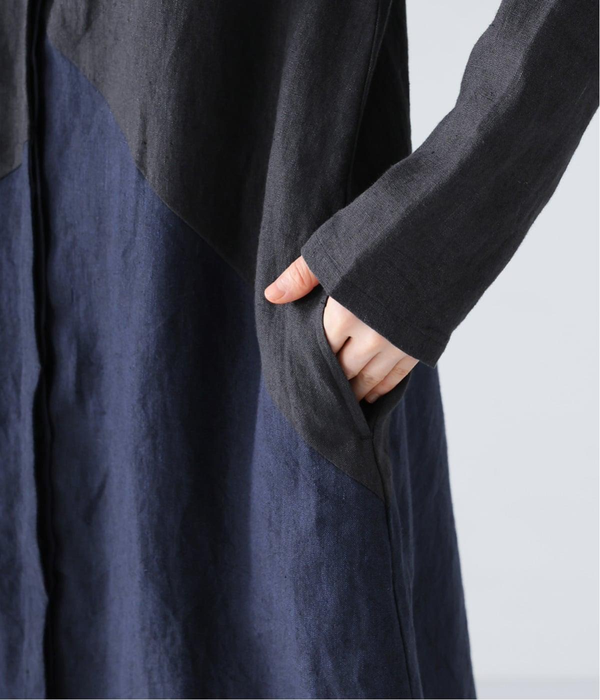 裾の片側に配したインディゴカラーが、動きのあるシルエットにさりげない彩りをプラス。