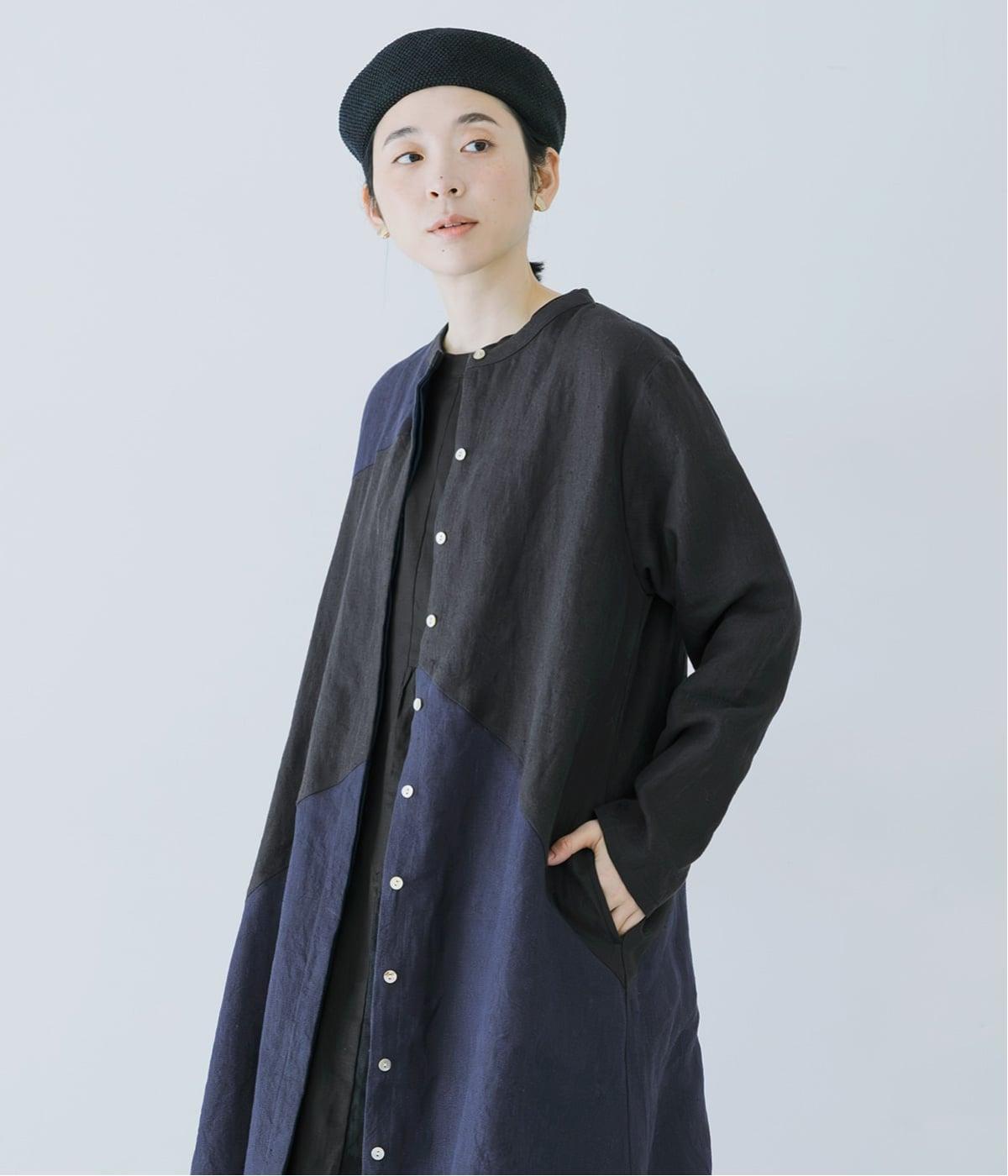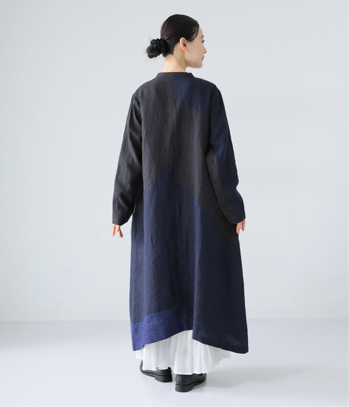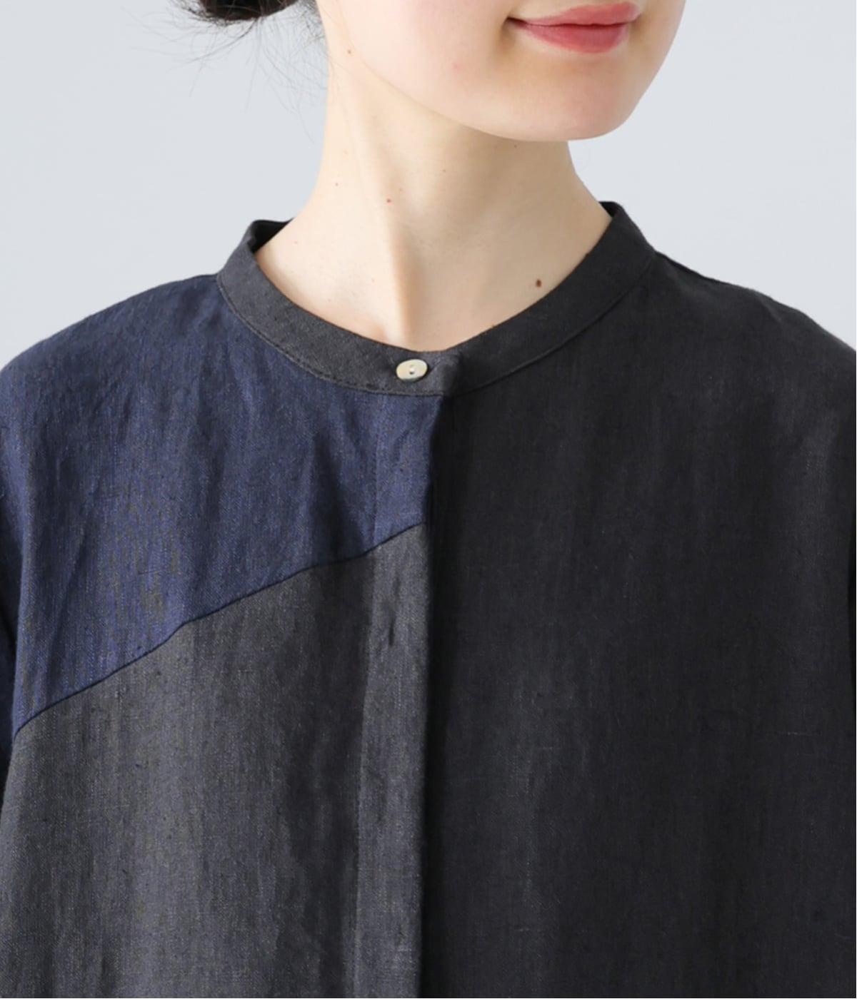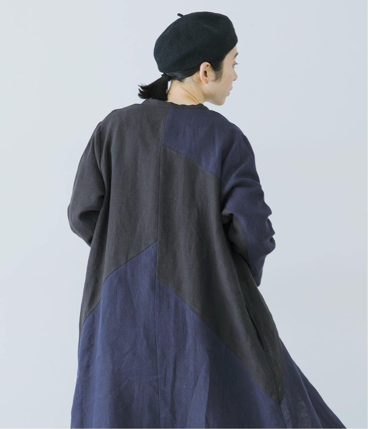 裾の片側に配したインディゴカラーが、動きのあるシルエットにさりげない彩りをプラス。
