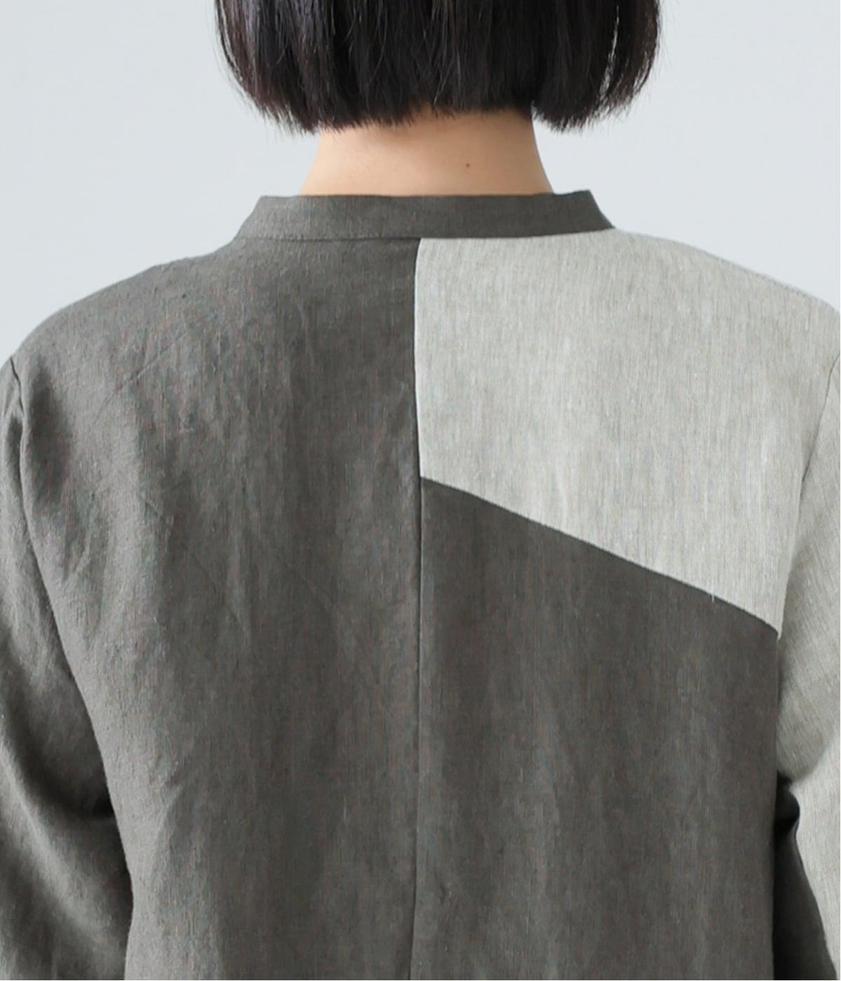 3色のリネン生地を組み合わせることで、シンプルながら奥行きのある表情を生み出しています。