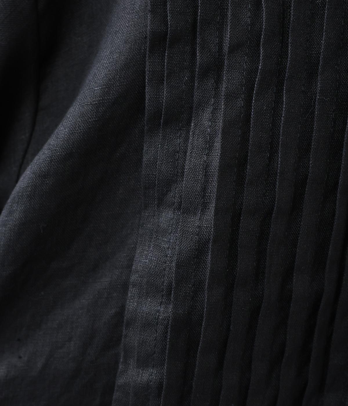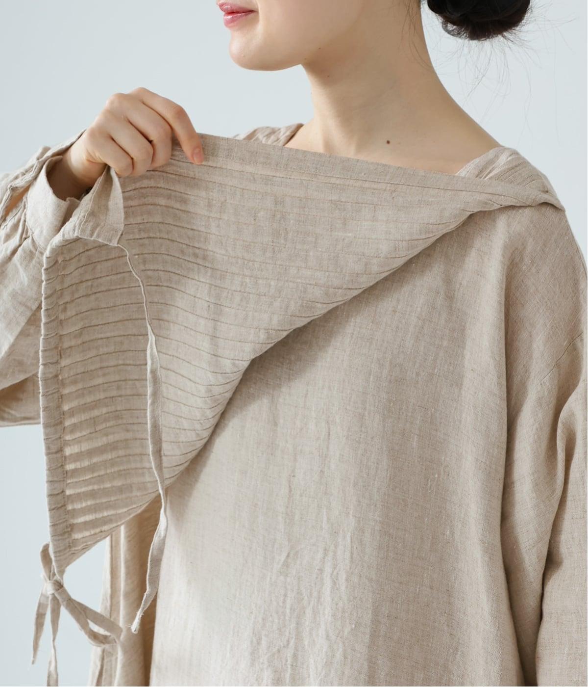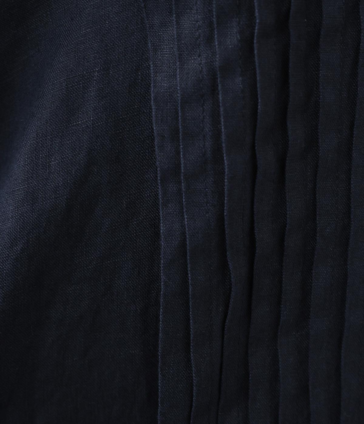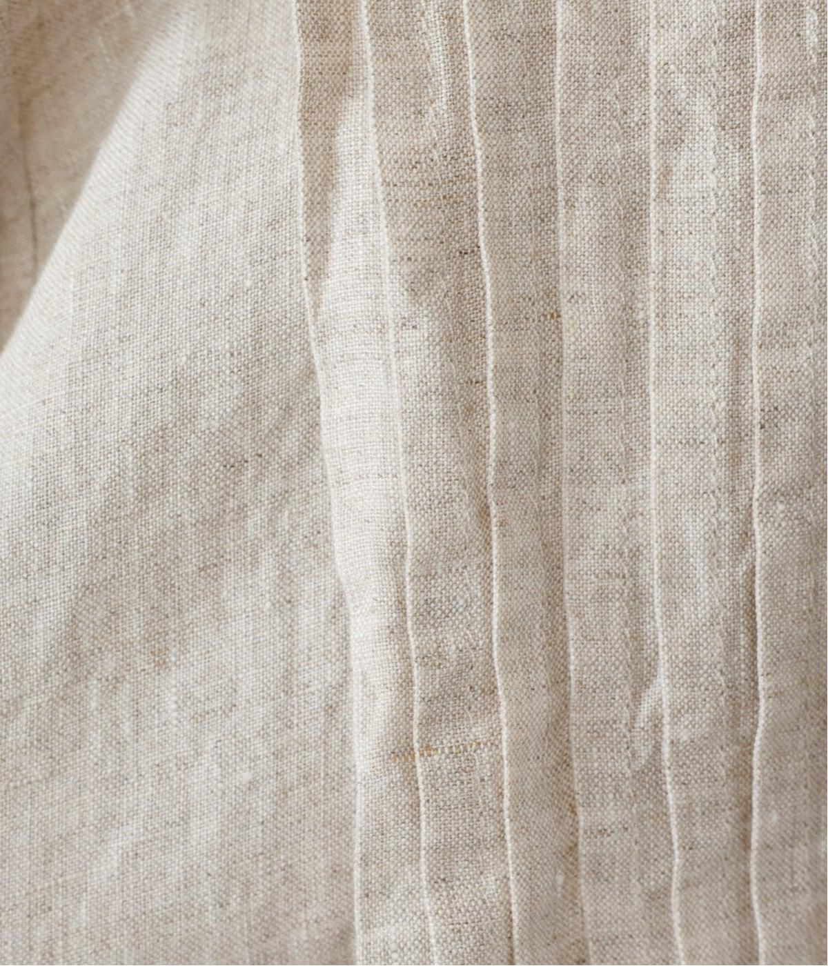 肌にまとわりつかないさらりとした質感のリネン生地です。ハリと落ち感のバランスが丁度よく、自然なシルエットを演出。着込むほどにやわらかく、肌なじみよく着ていただけます。