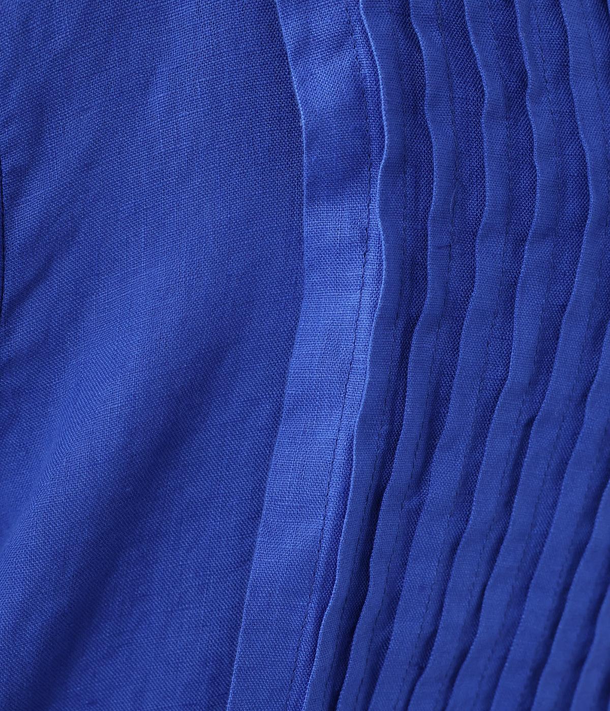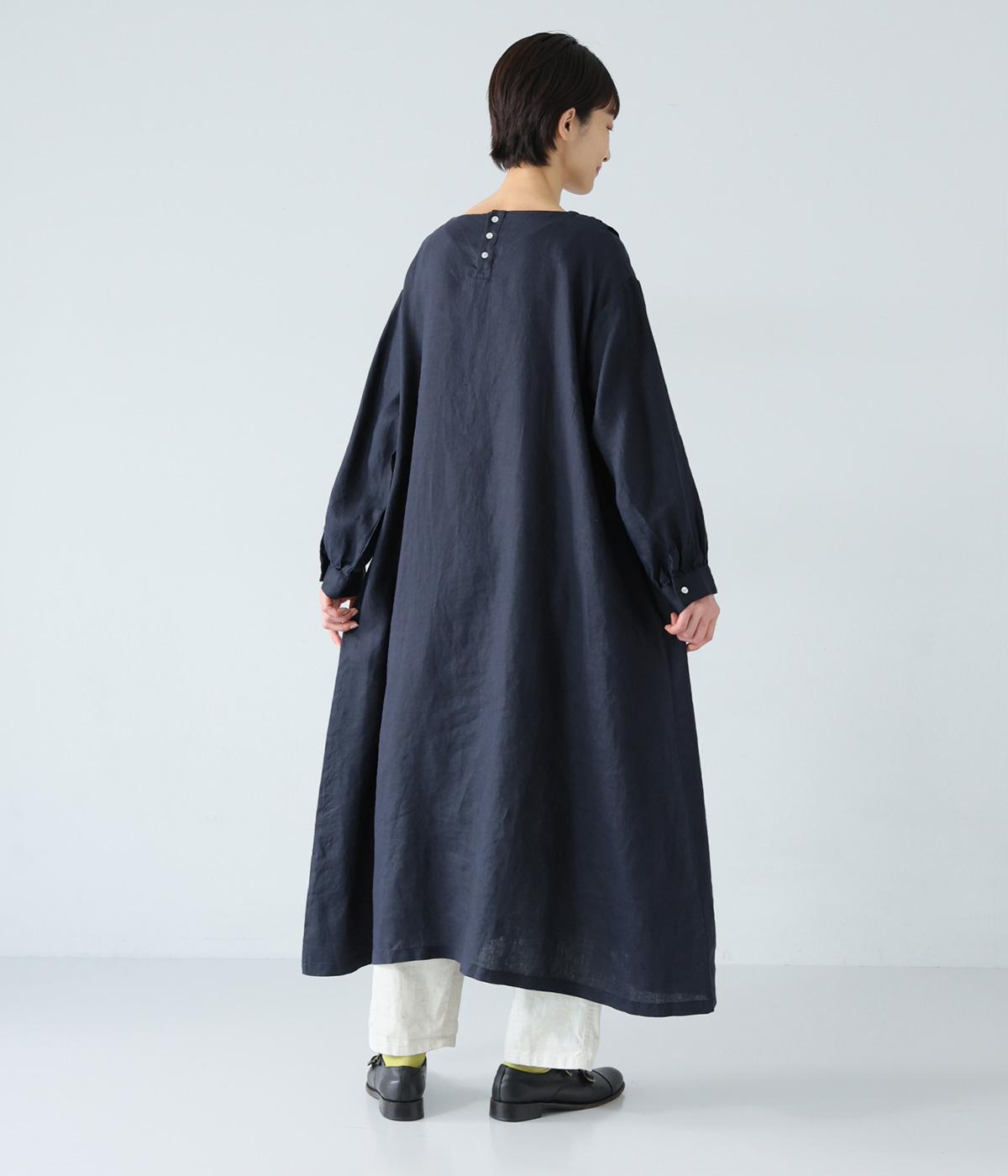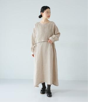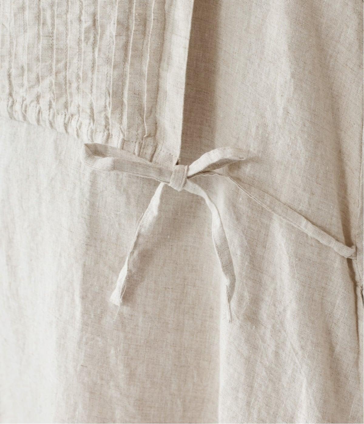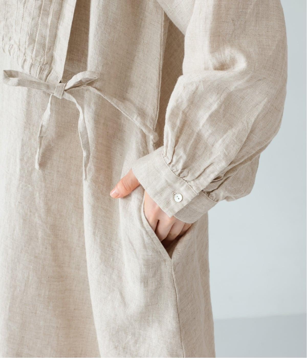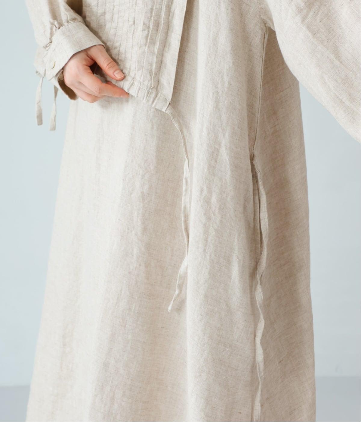 肌にまとわりつかないさらりとした質感のリネン生地です。ハリと落ち感のバランスが丁度よく、自然なシルエットを演出。着込むほどにやわらかく、肌なじみよく着ていただけます。