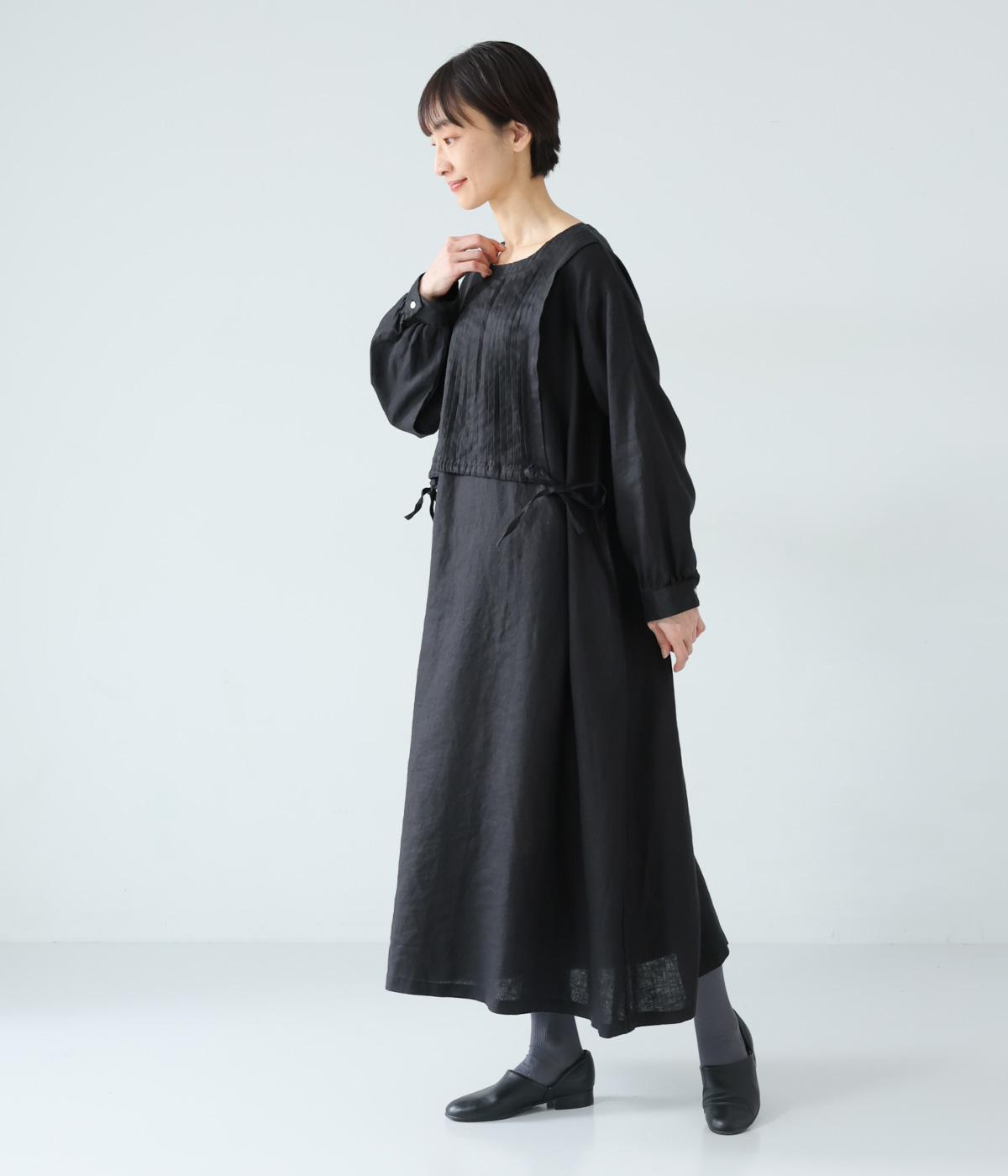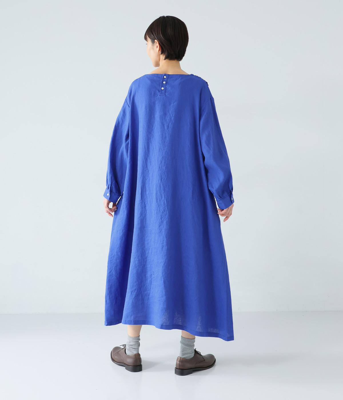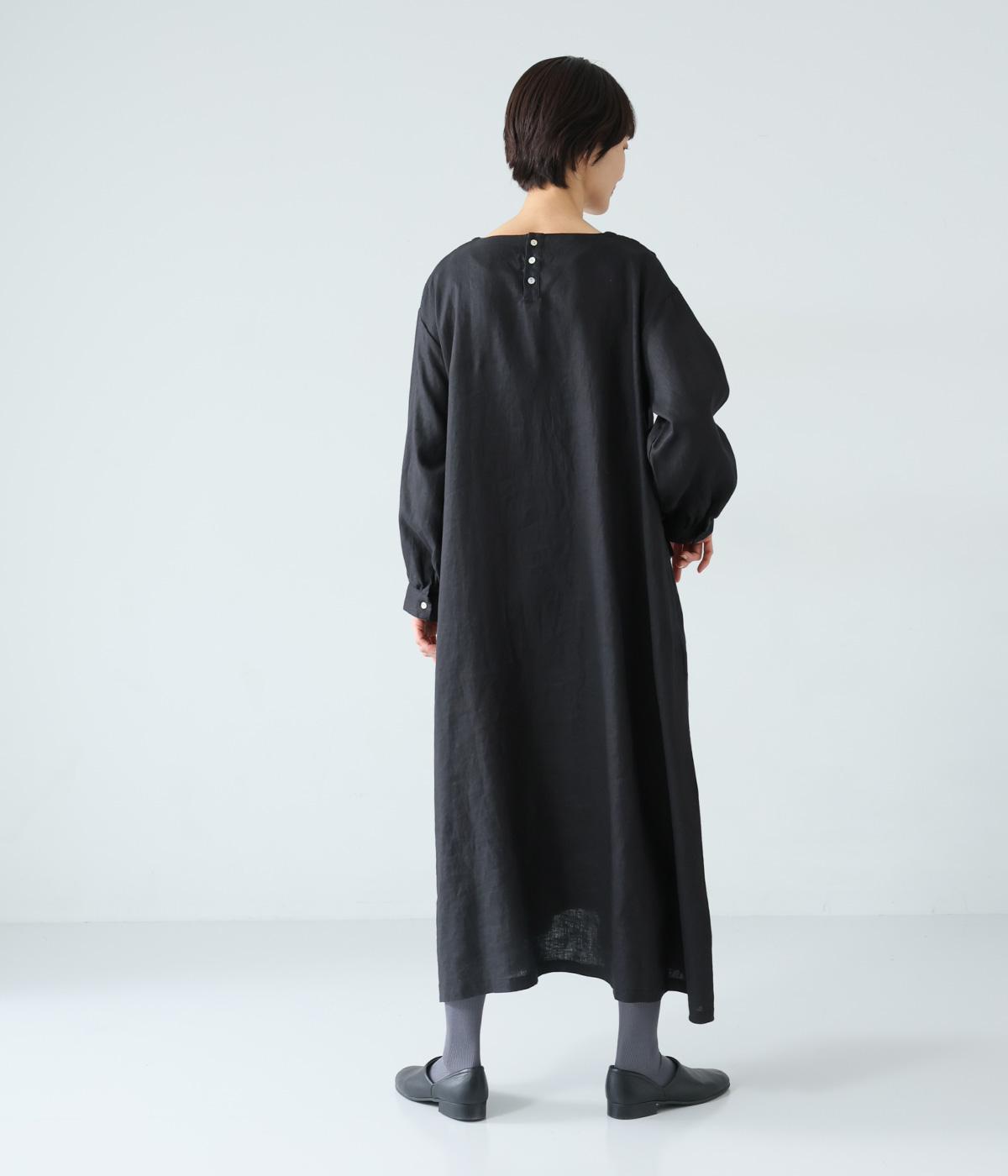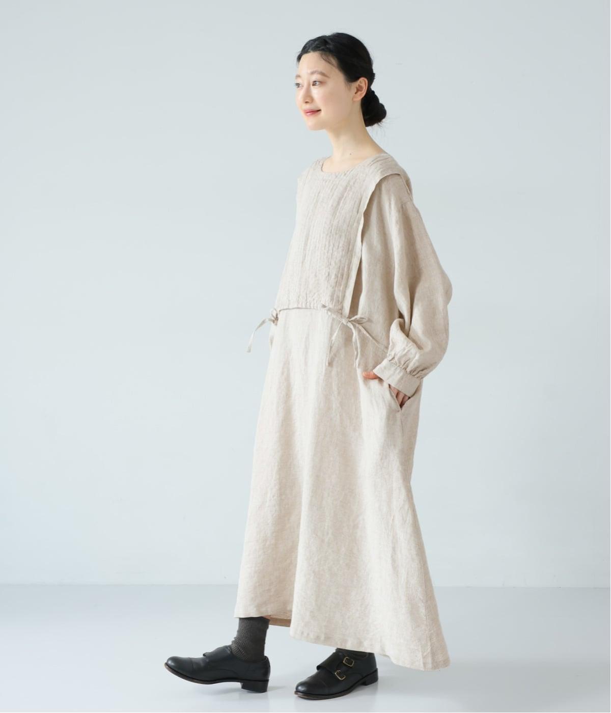 肌にまとわりつかないさらりとした質感のリネン生地です。ハリと落ち感のバランスが丁度よく、自然なシルエットを演出。着込むほどにやわらかく、肌なじみよく着ていただけます。