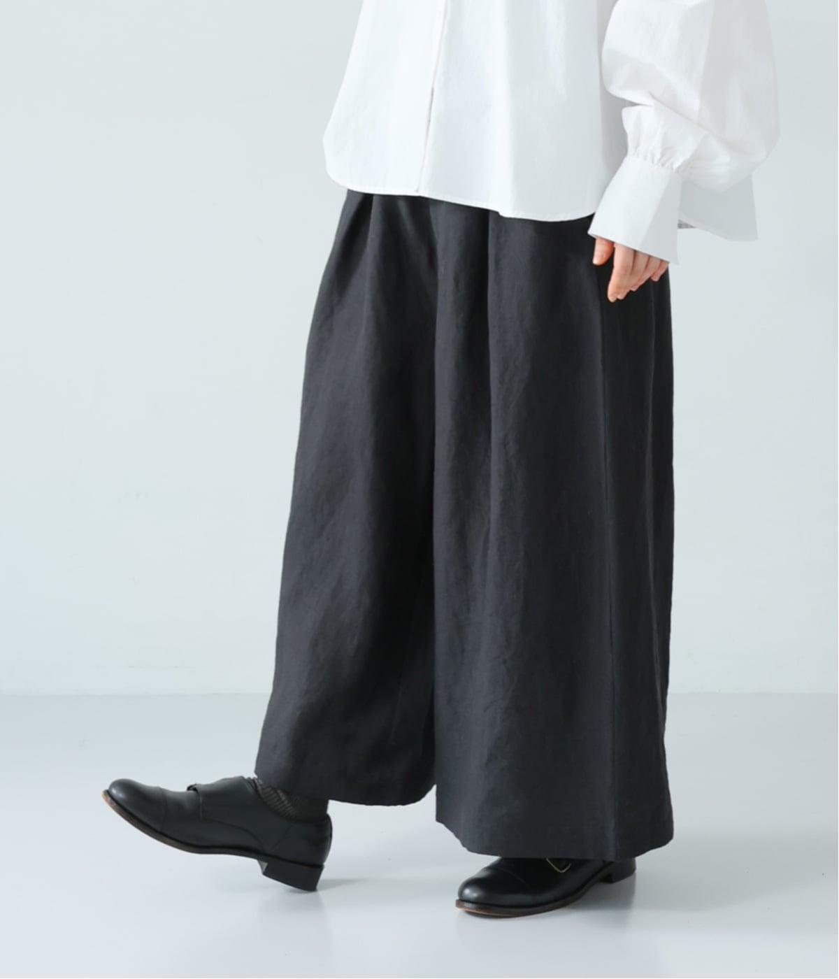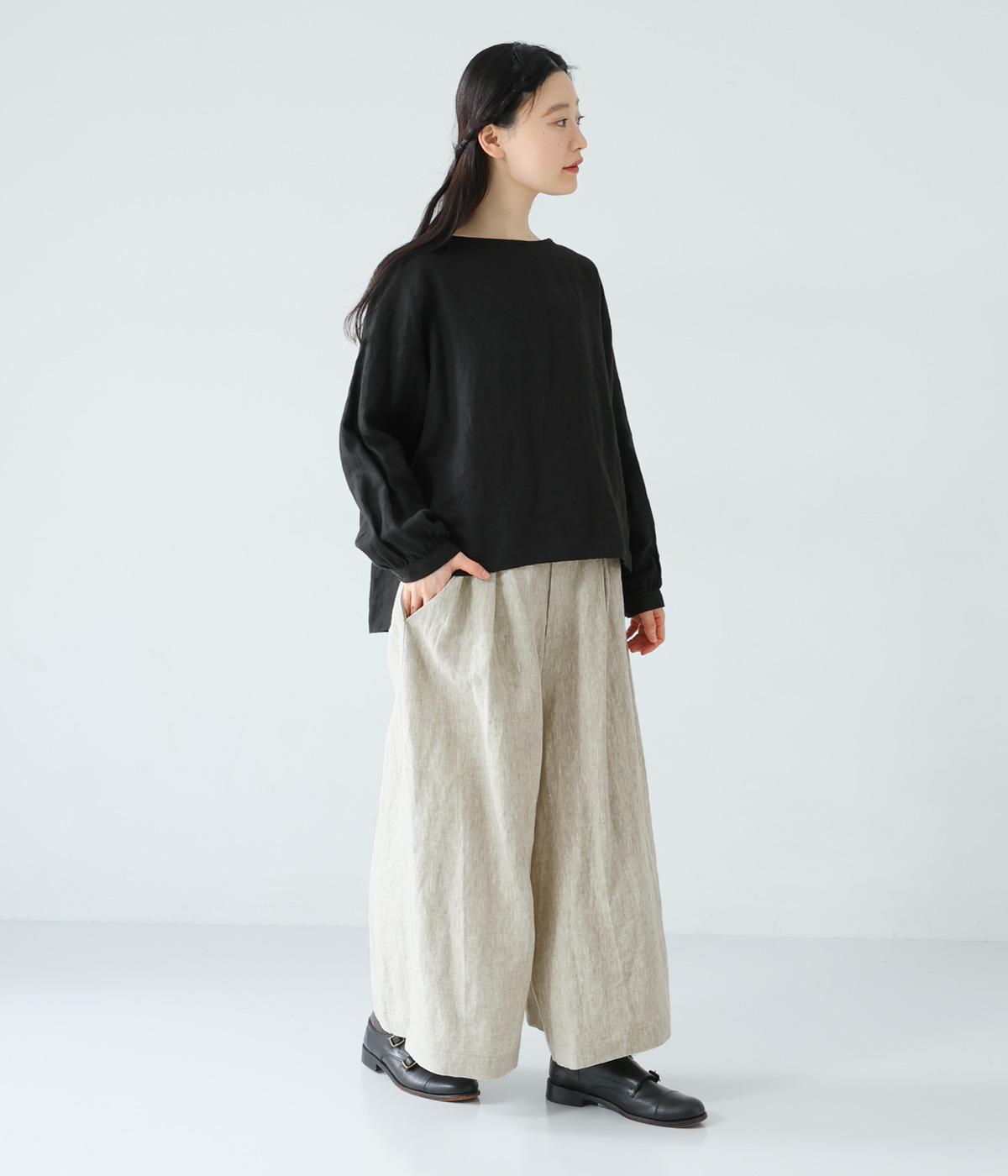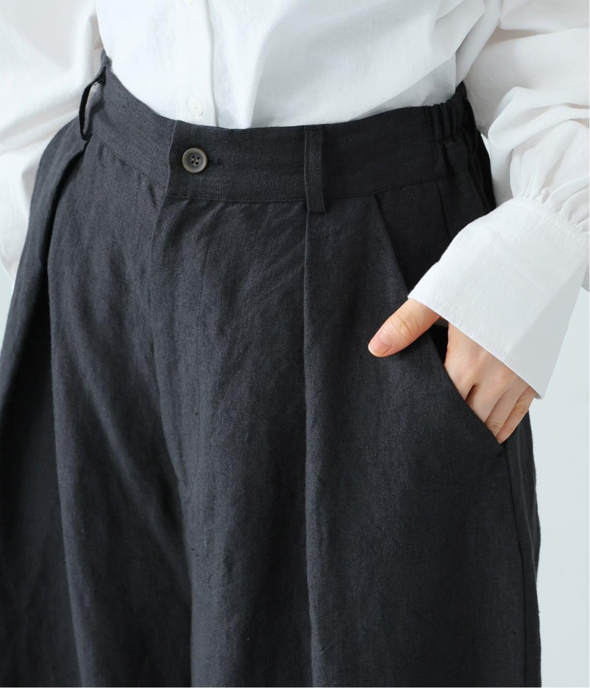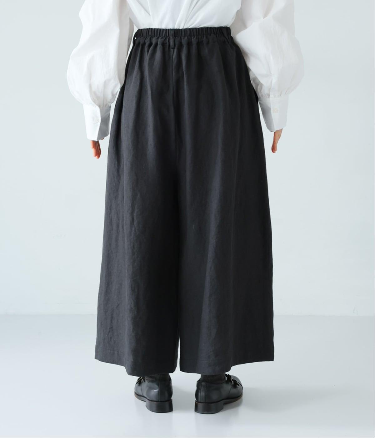 自然な佇まいのリネン生地をたっぷりと使用したワイドパンツ。スカート見えするボリューム感が着こなしのバランスを整え、上半身をすっきりと見せてくれます。両脇には便利なポケットつき。後ろウエストはゴム仕様で、快適なはき心地です。